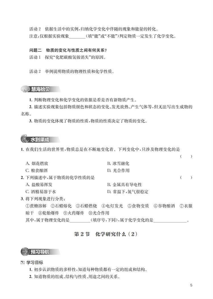 2024秋 初中化学素养同步测评 上教版 九年级上册 中学教辅 同步教辅 9上 学生用书 同步练习 江苏凤凰教育出版社