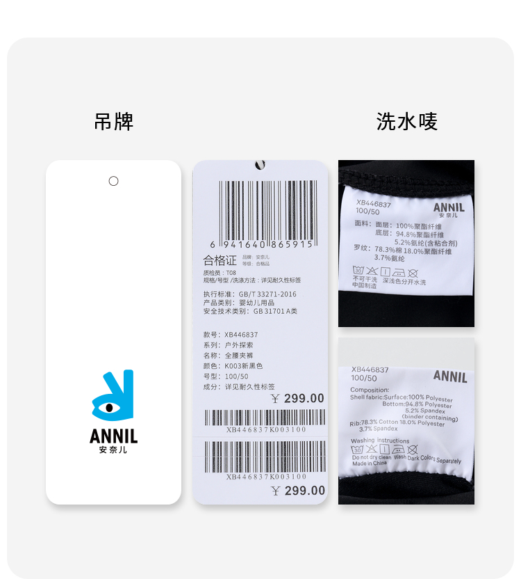 男童复合绒软壳裤冬季新款安奈儿童装实体店同款XB446837