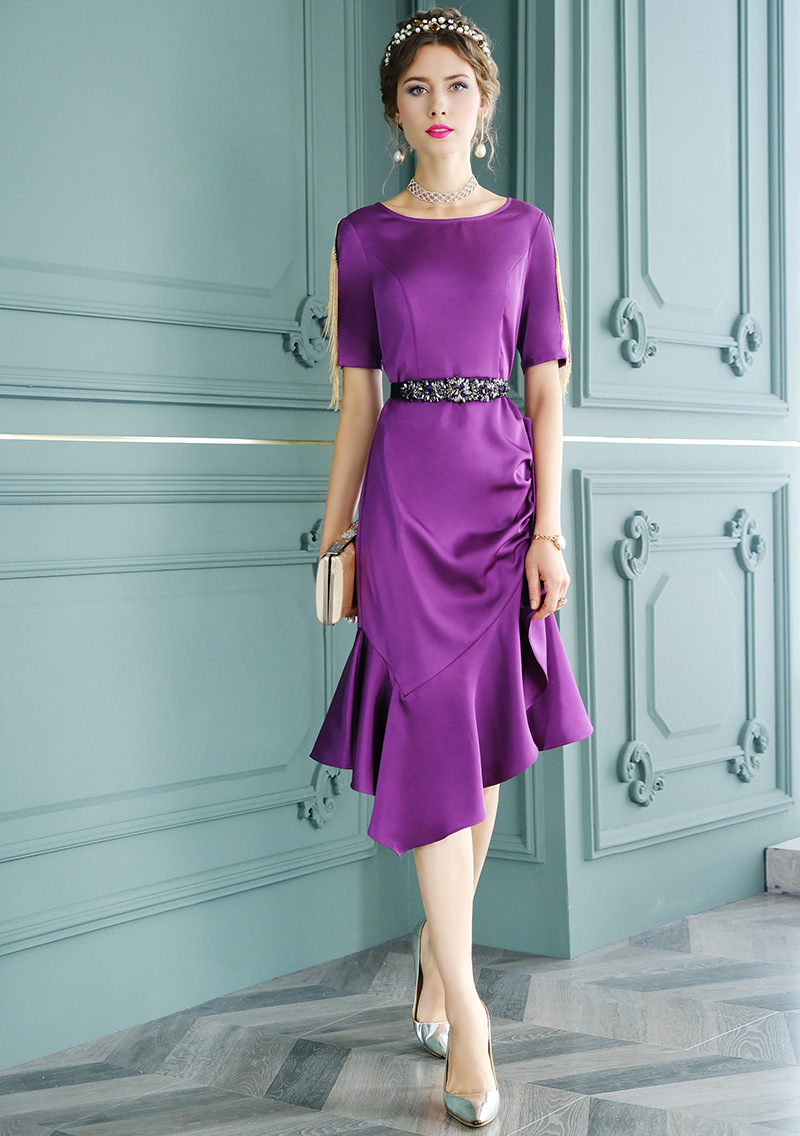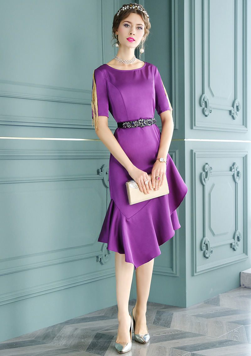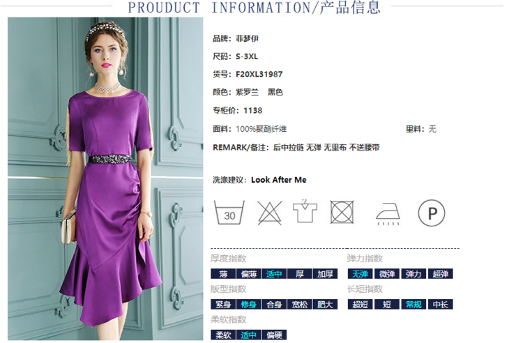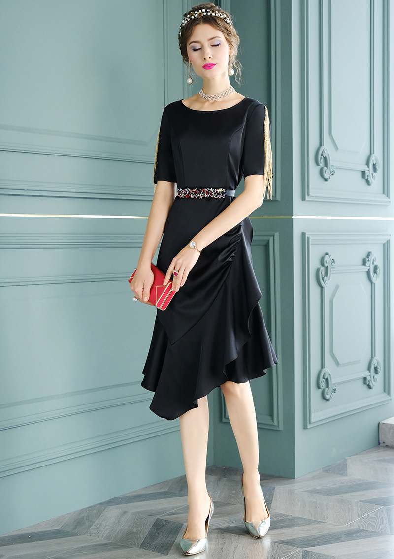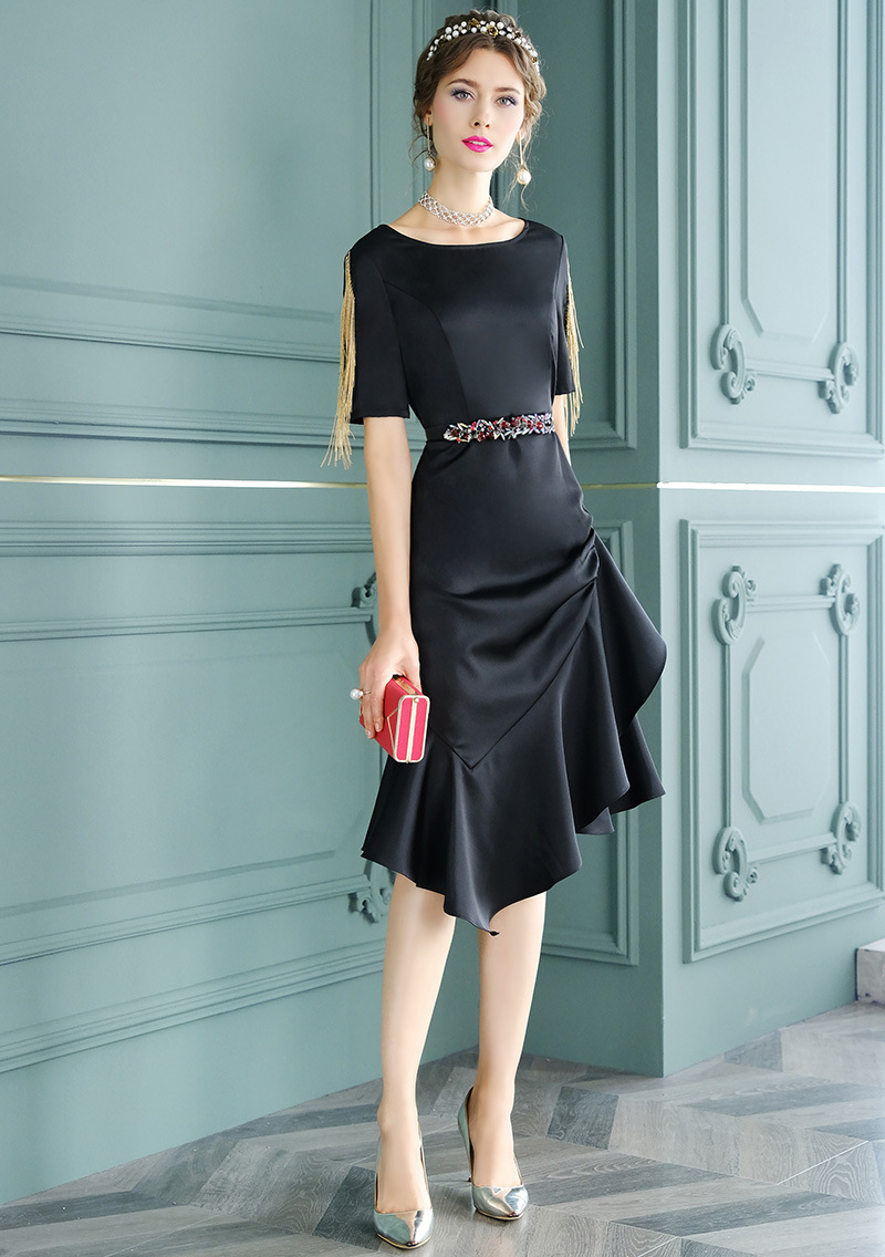 FMY-F20XL31987设计感小众流苏褶皱修身不规则鱼尾裙连衣裙