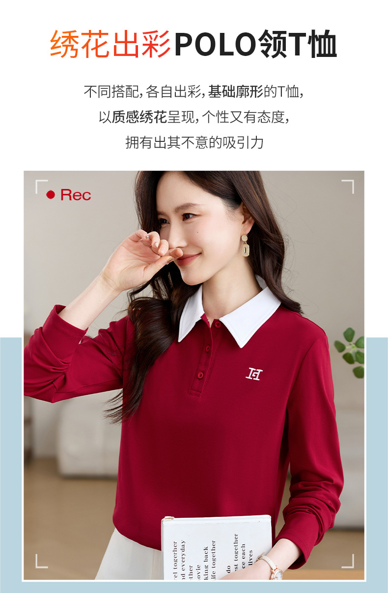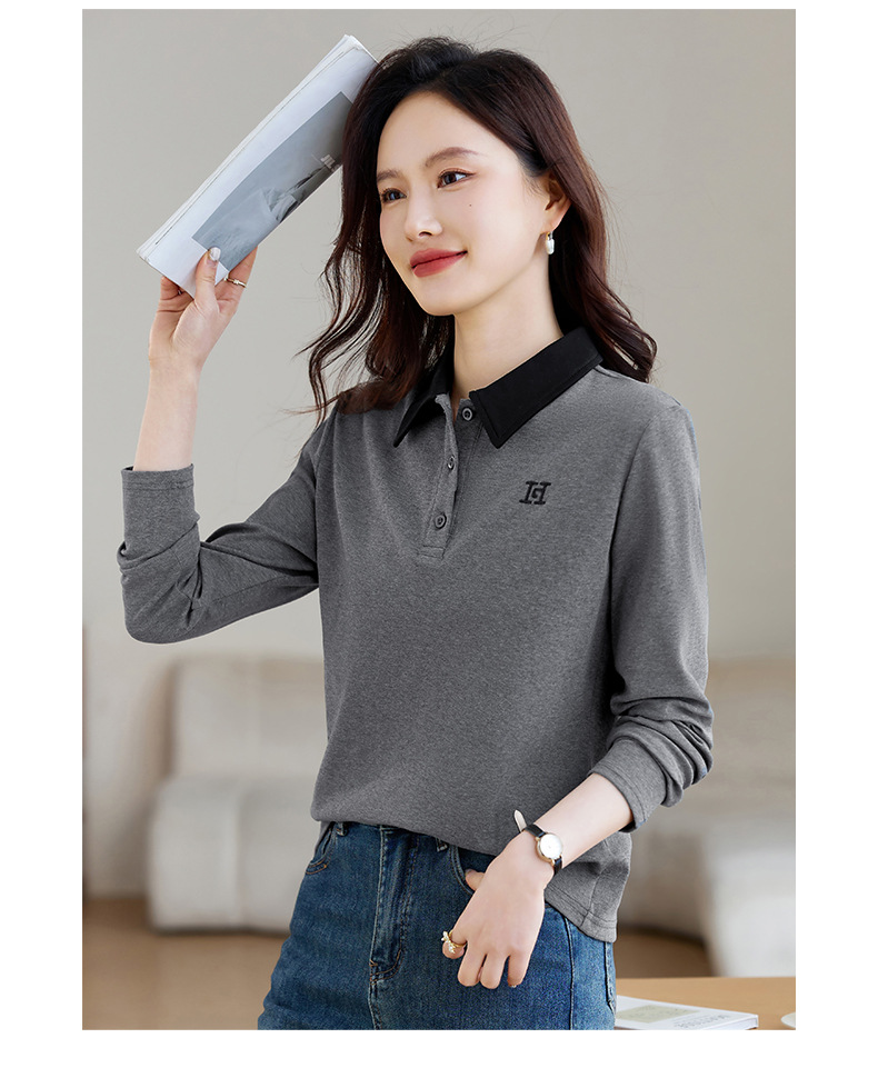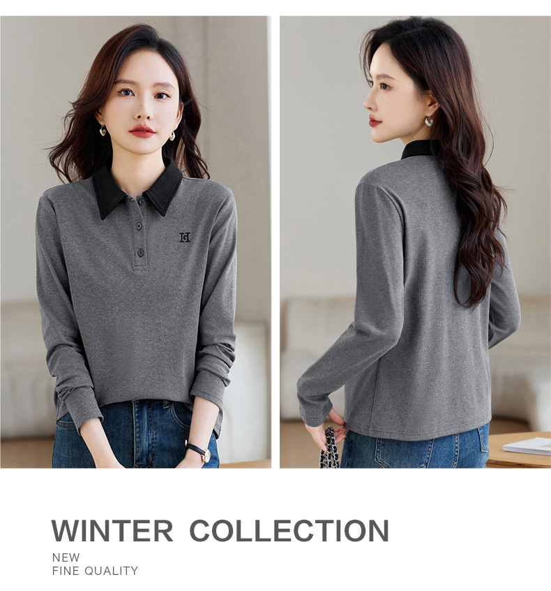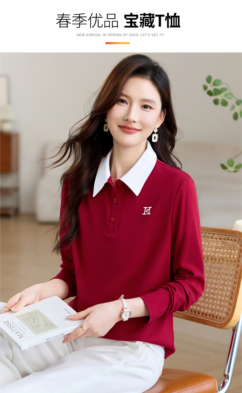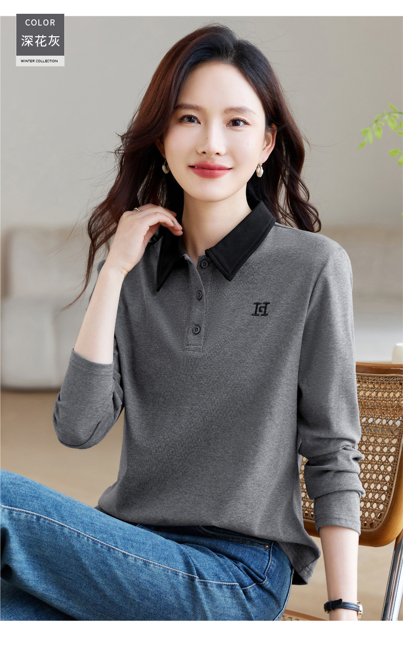 雀说高端长袖t恤女打底衫爆款洋气女装宽松翻领上衣AL10010