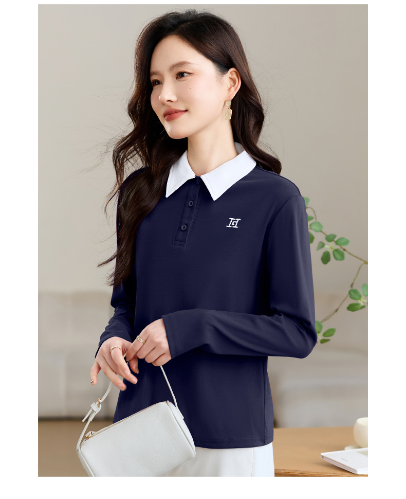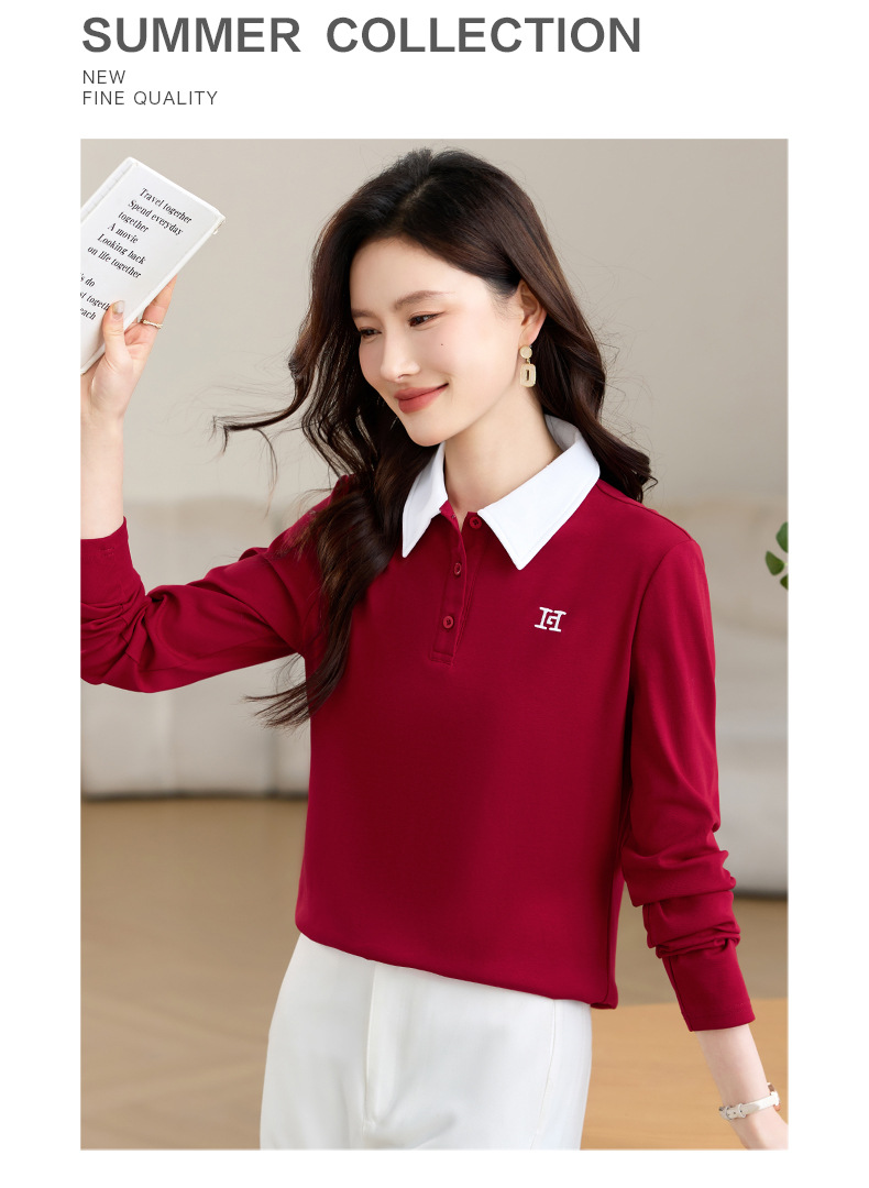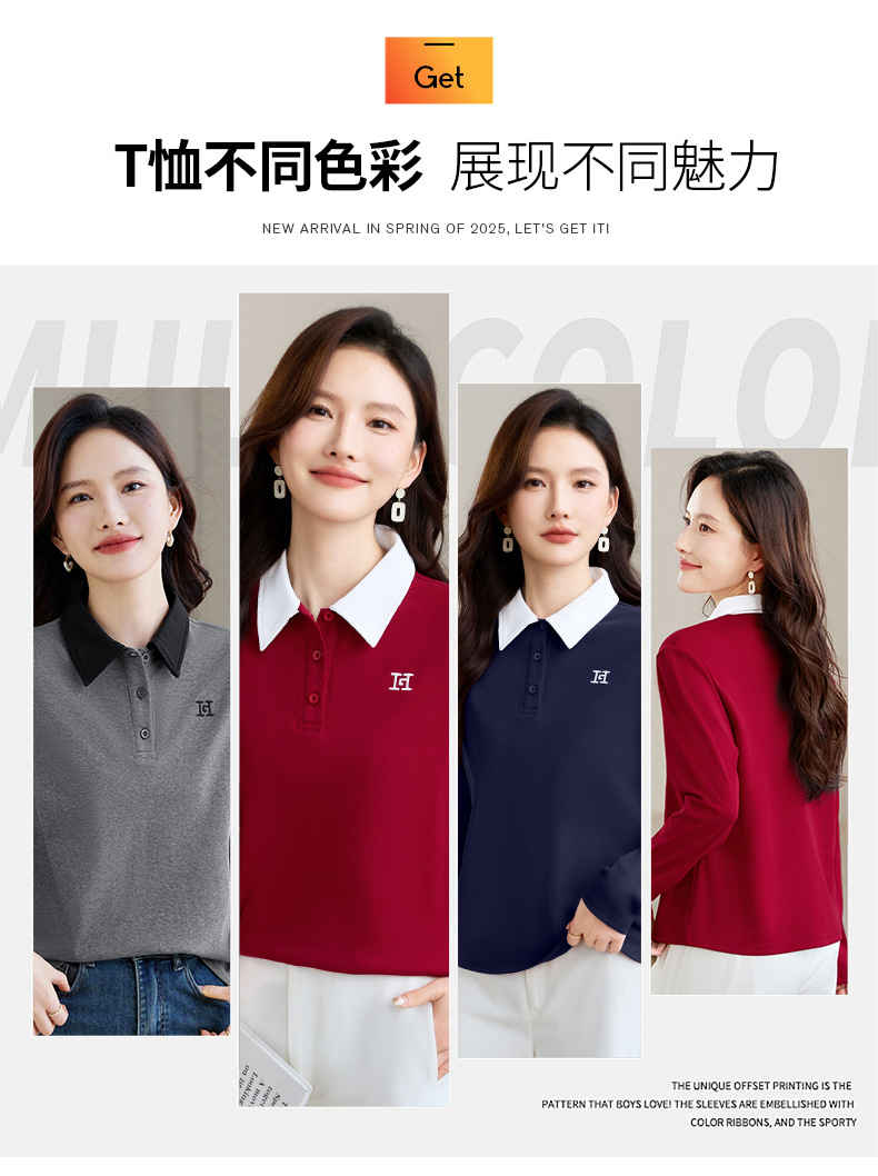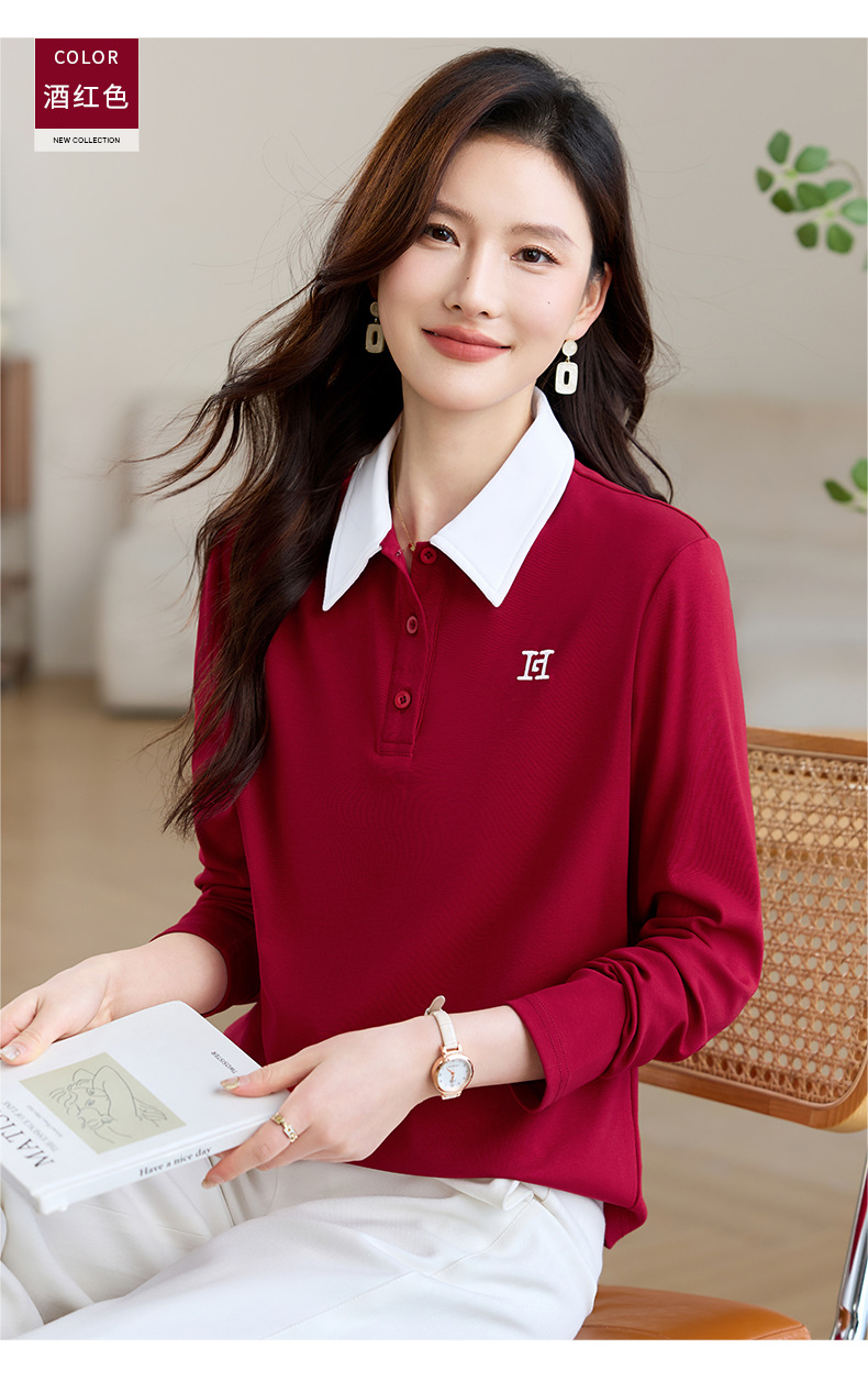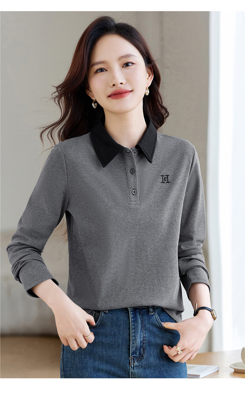 雀说高端长袖t恤女打底衫爆款洋气女装宽松翻领上衣AL10010