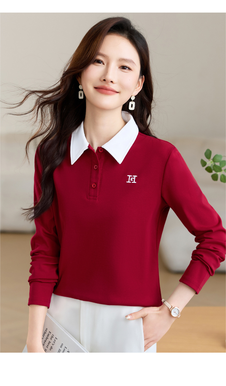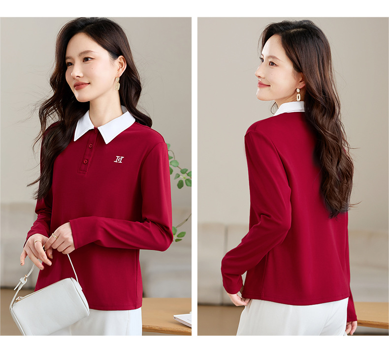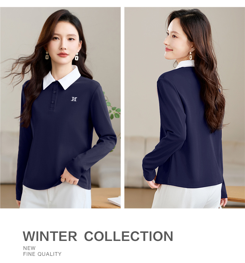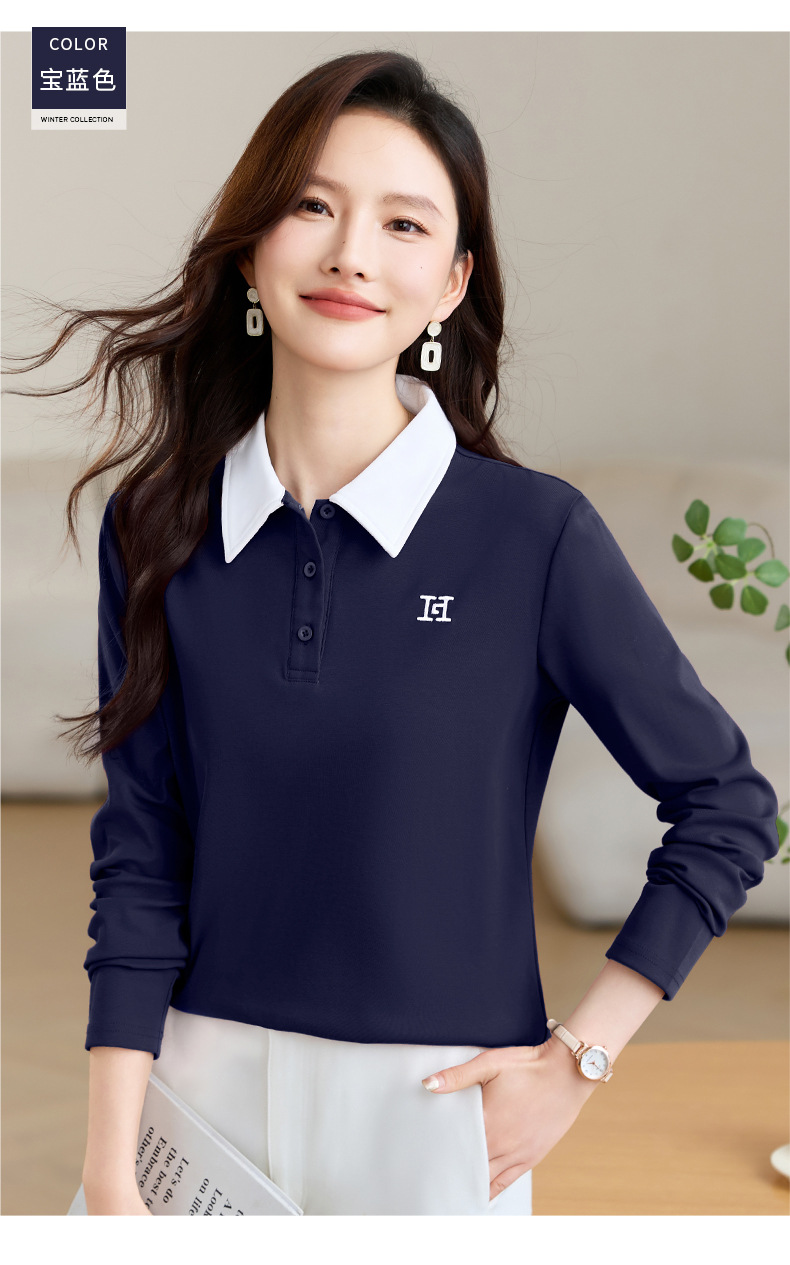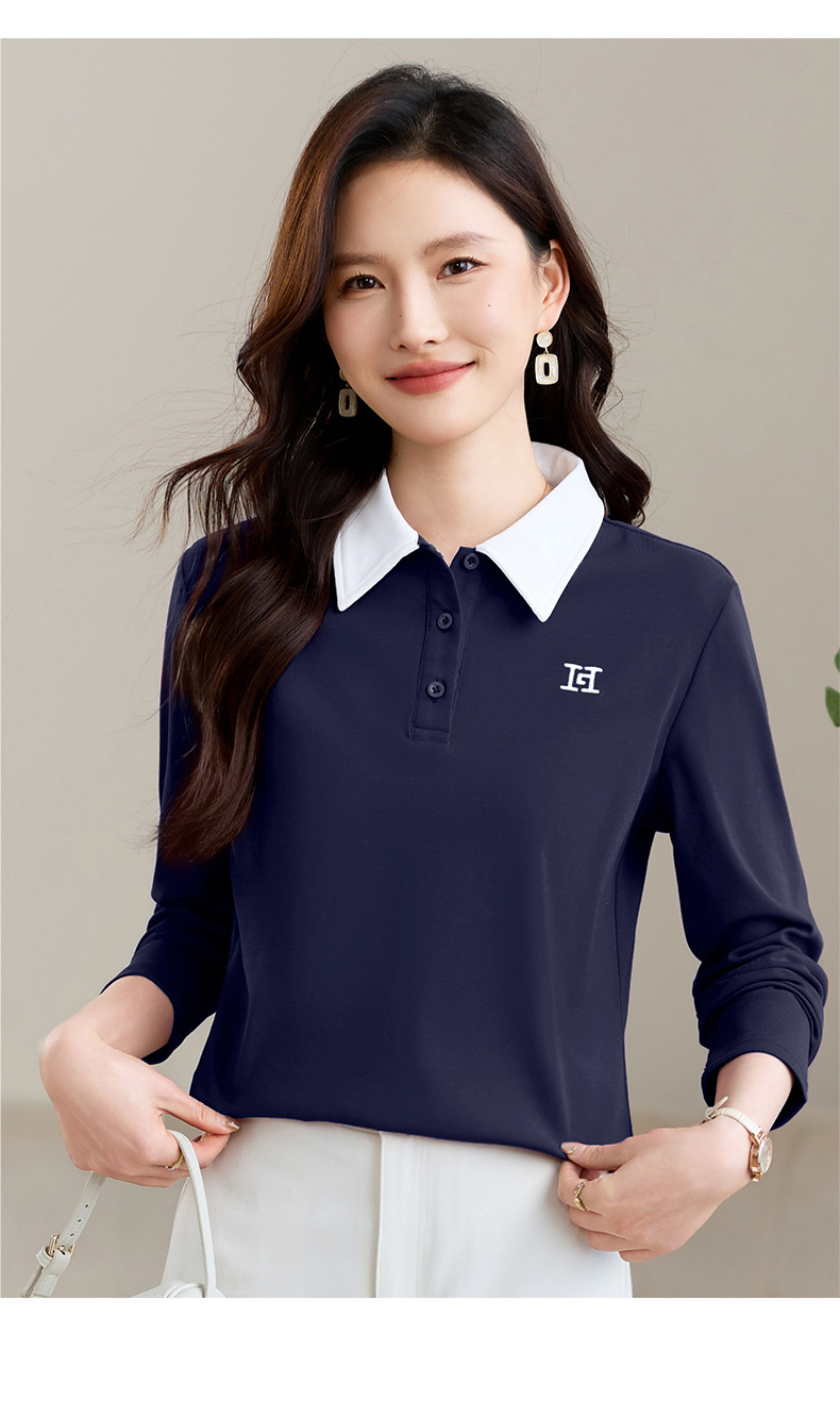 雀说高端长袖t恤女打底衫爆款洋气女装宽松翻领上衣AL10010