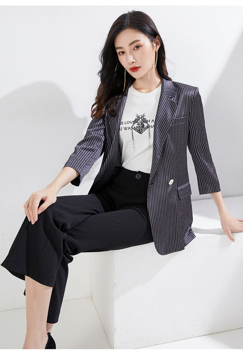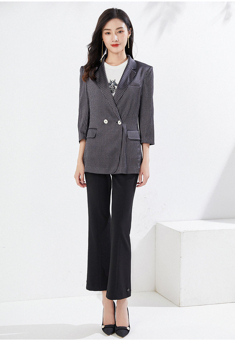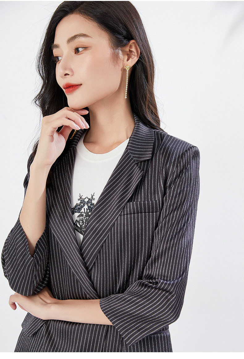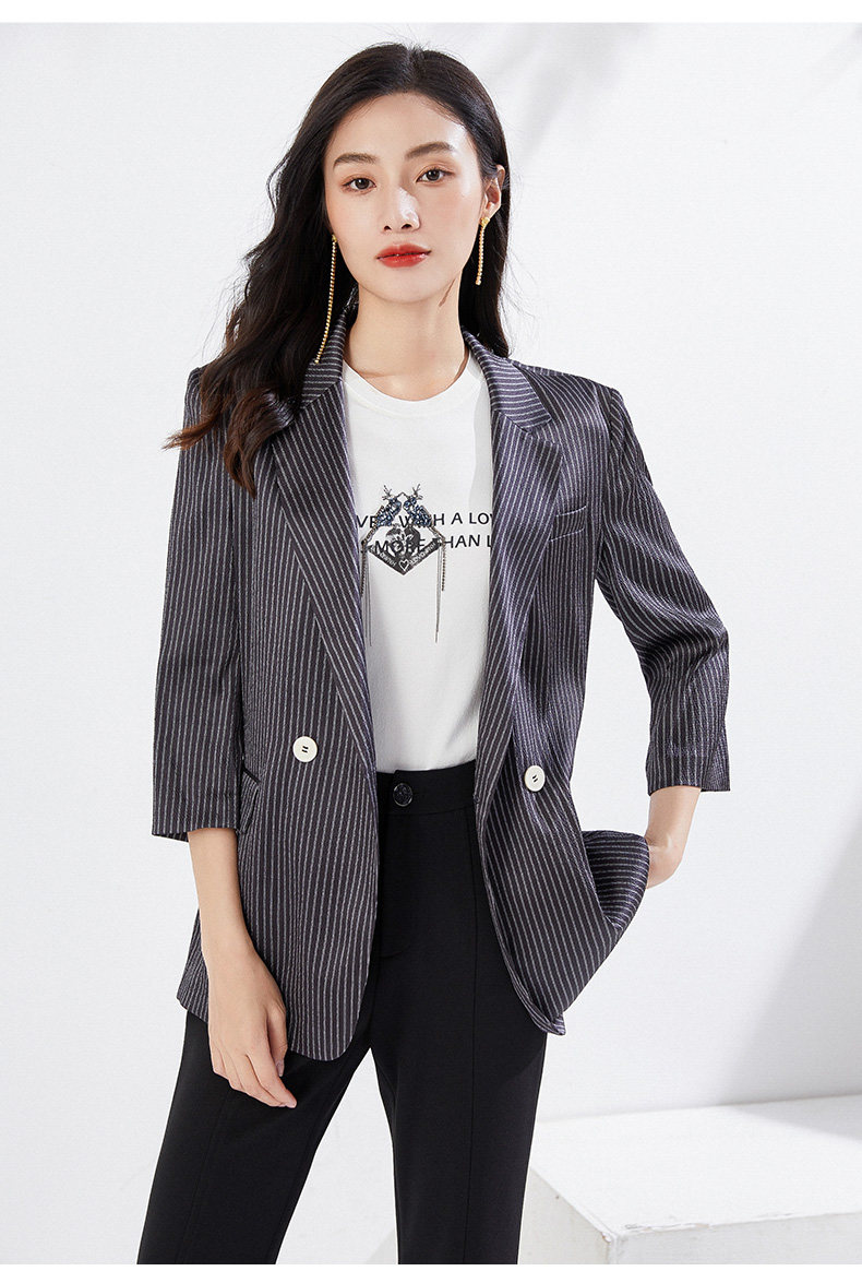 乔万尼早春新品西装重磅真丝气质条纹EI3B139