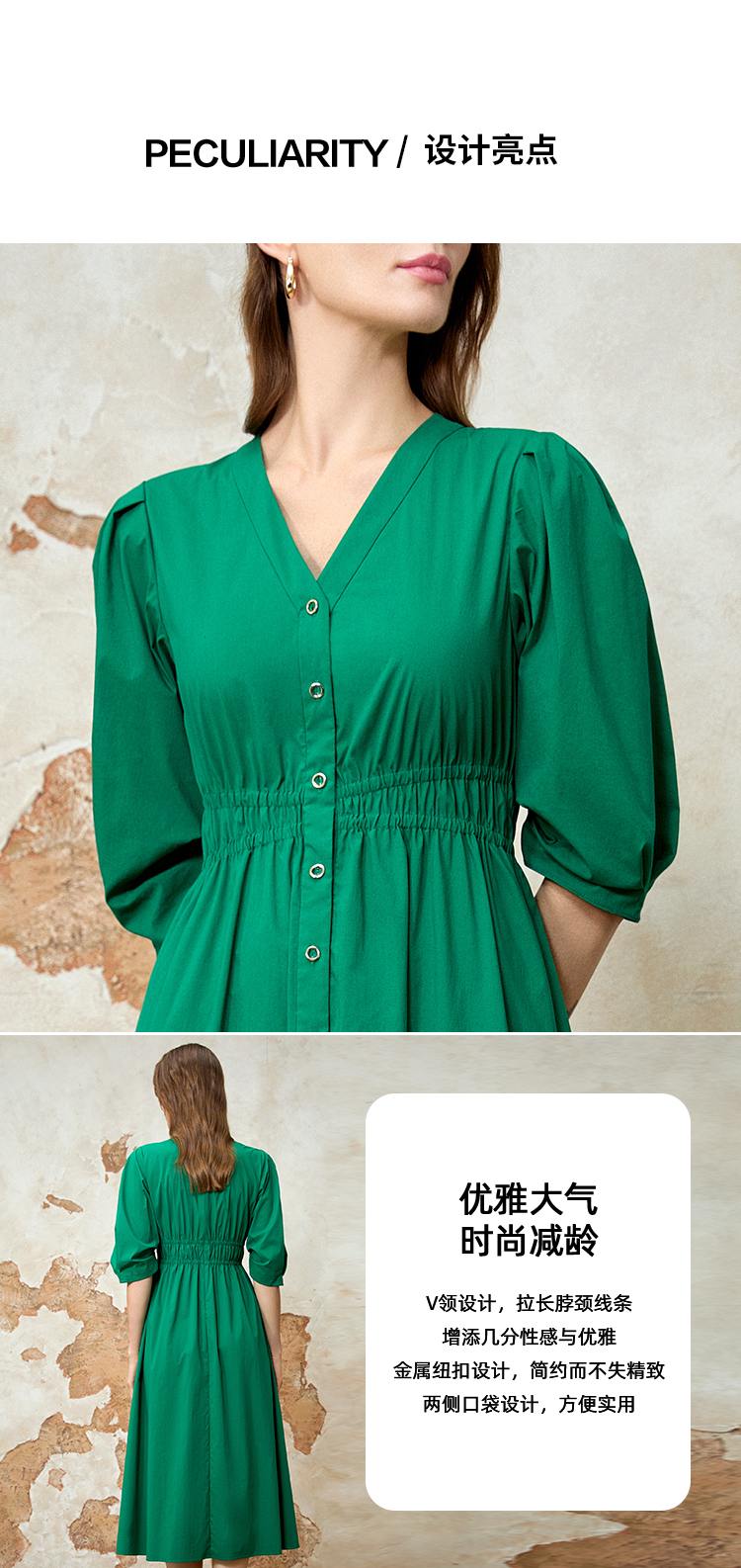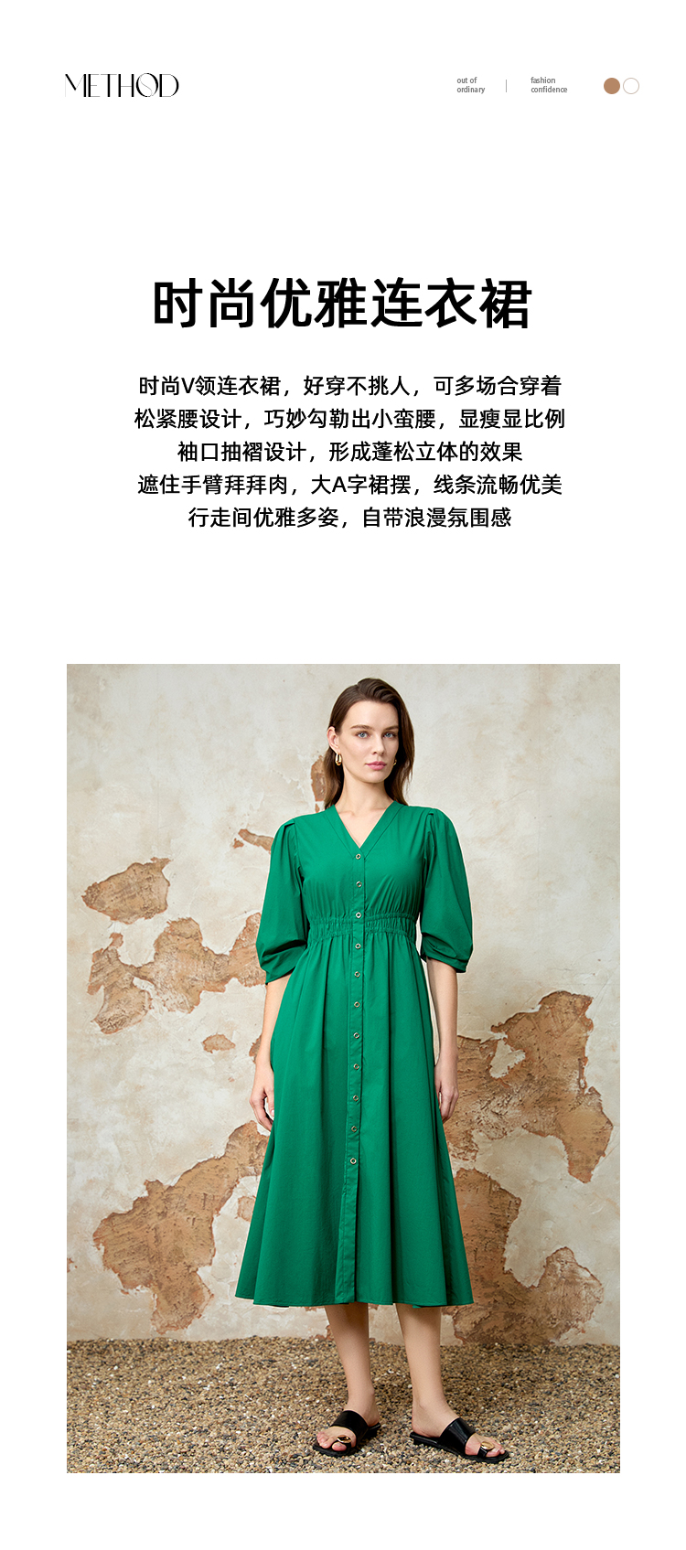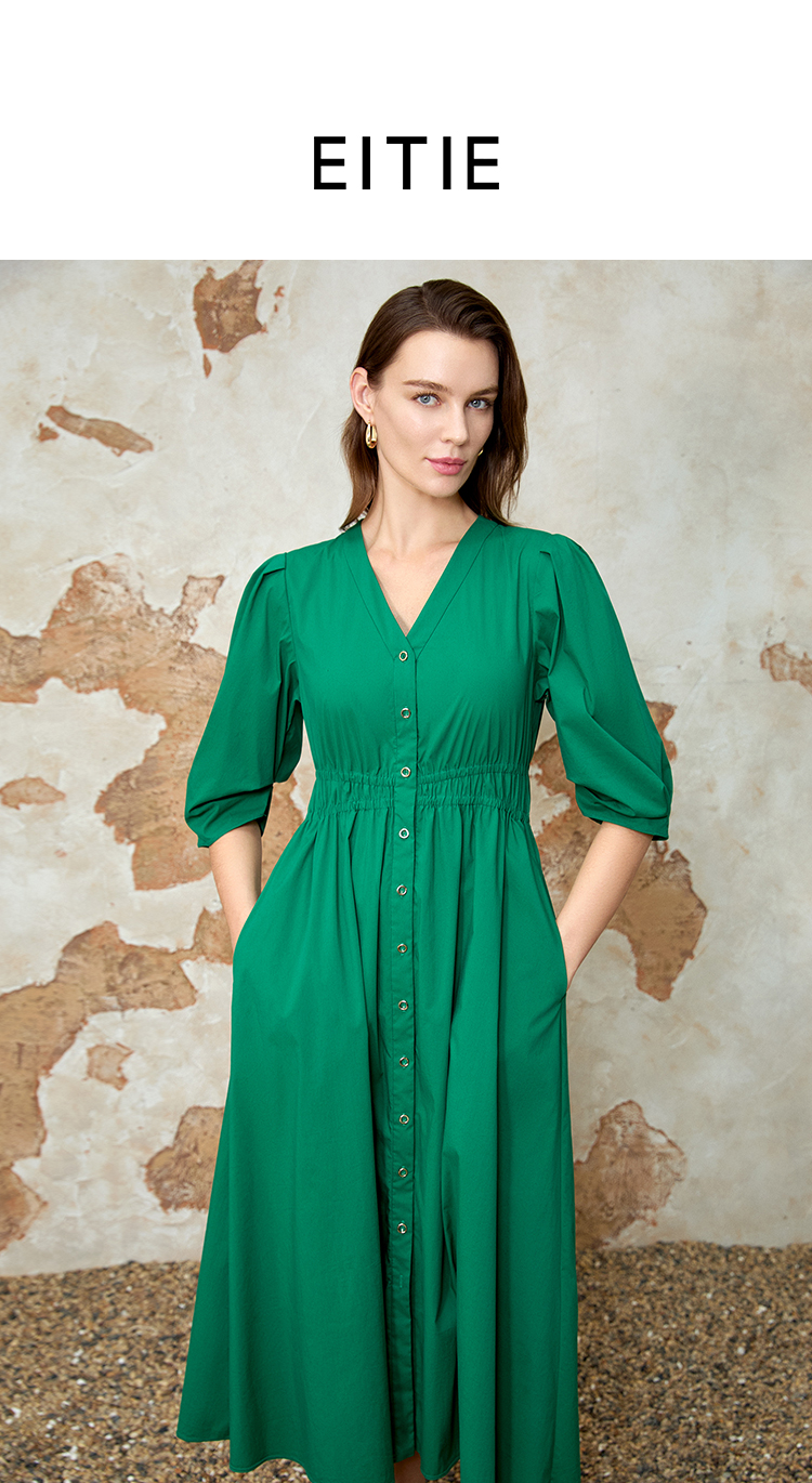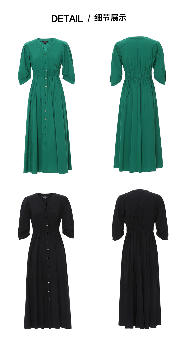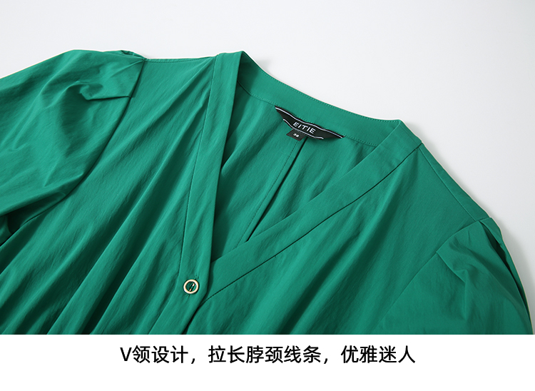 EITIE爱特爱法式时尚收腰气质V领显瘦高腰连衣裙夏季新款8207916