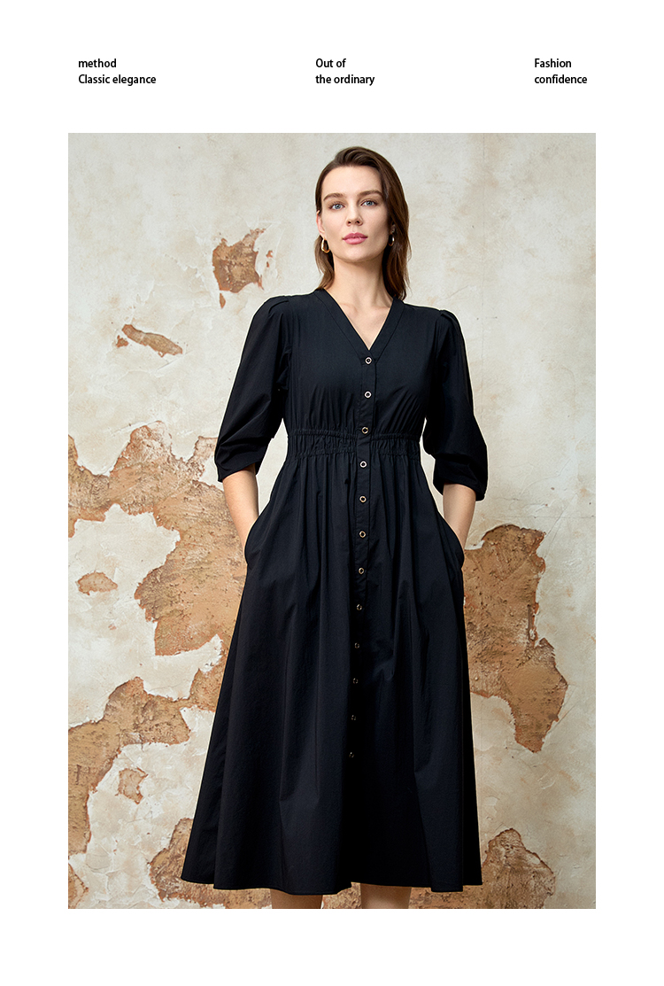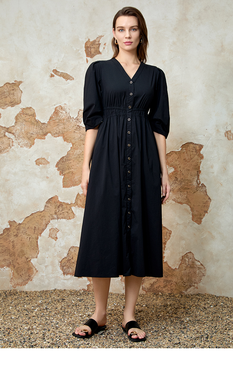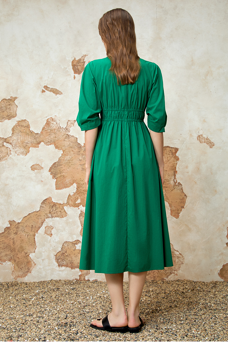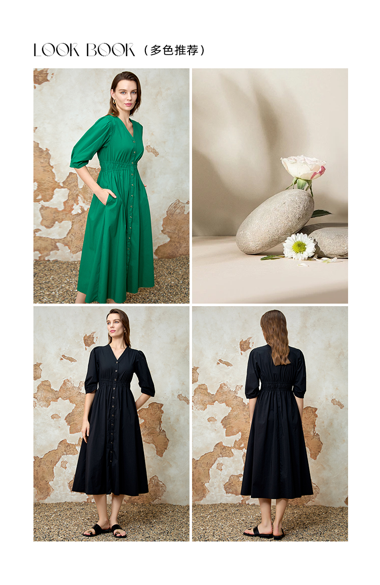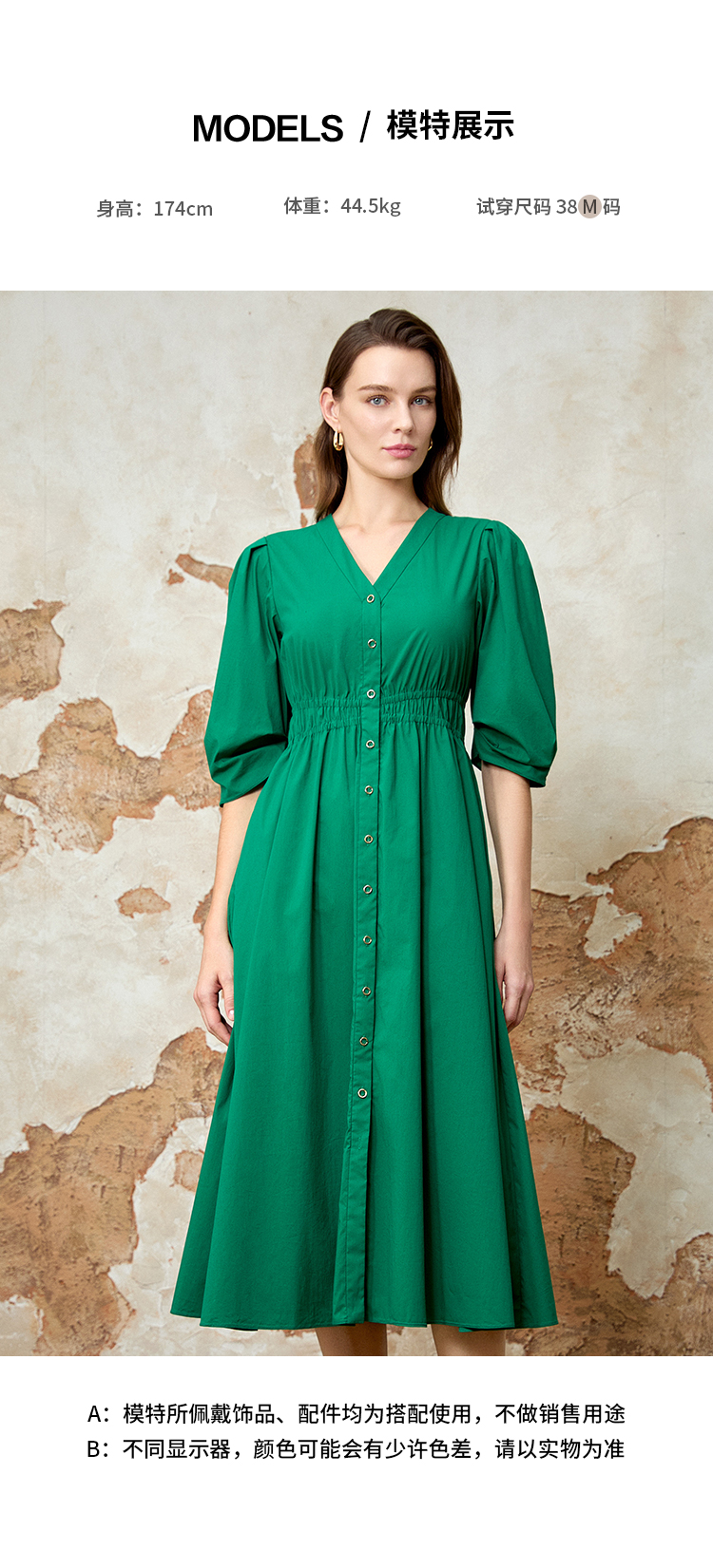 EITIE爱特爱法式时尚收腰气质V领显瘦高腰连衣裙夏季新款8207916
