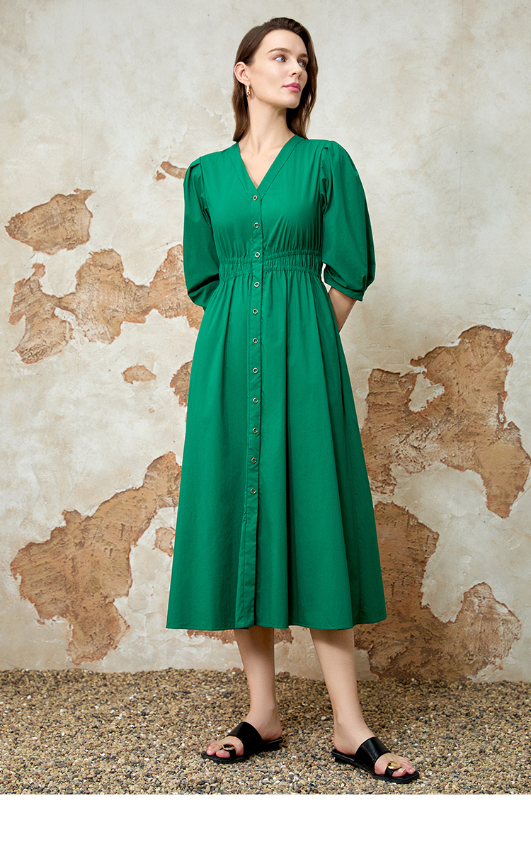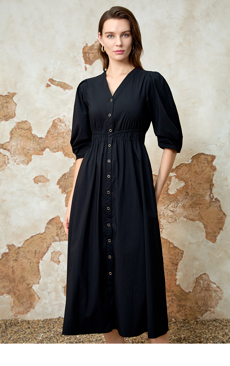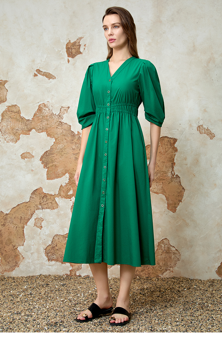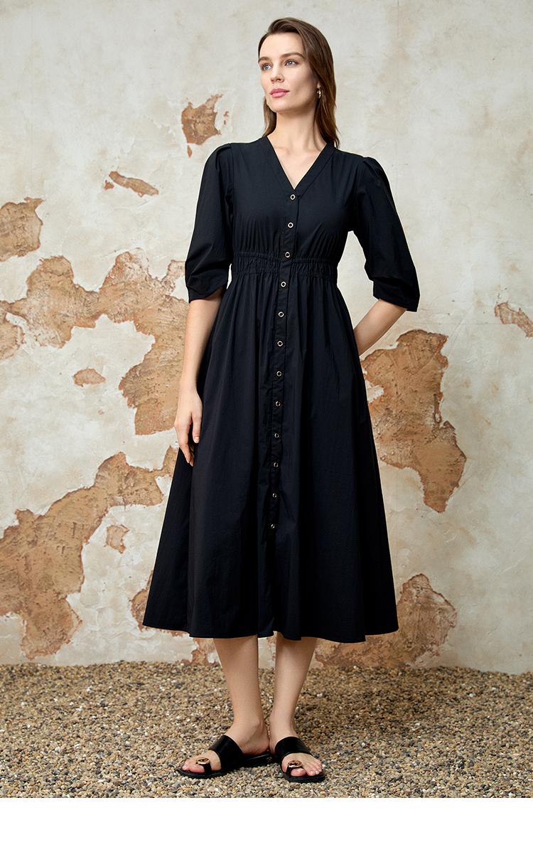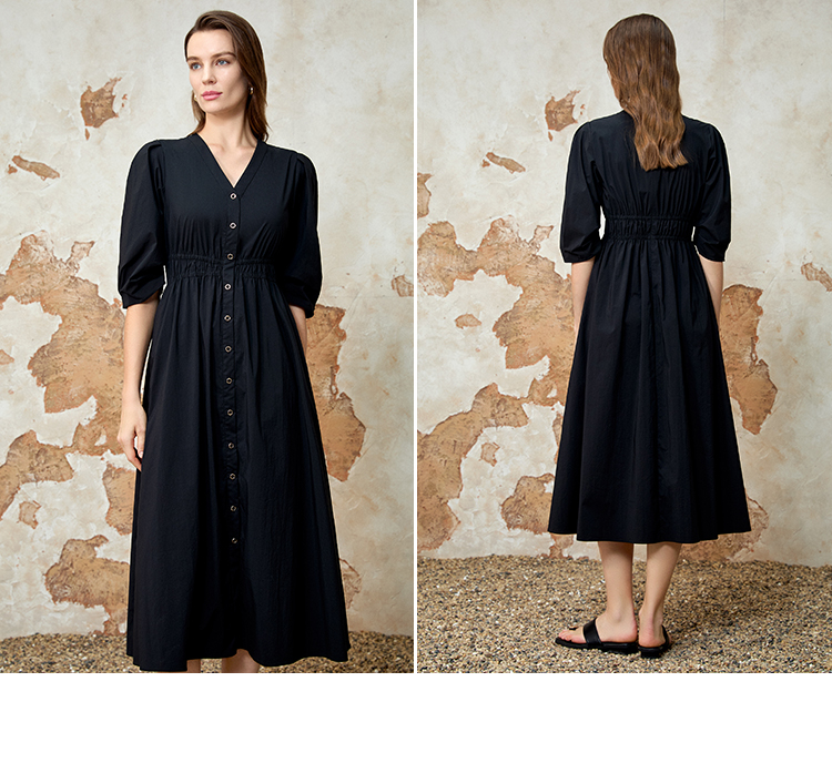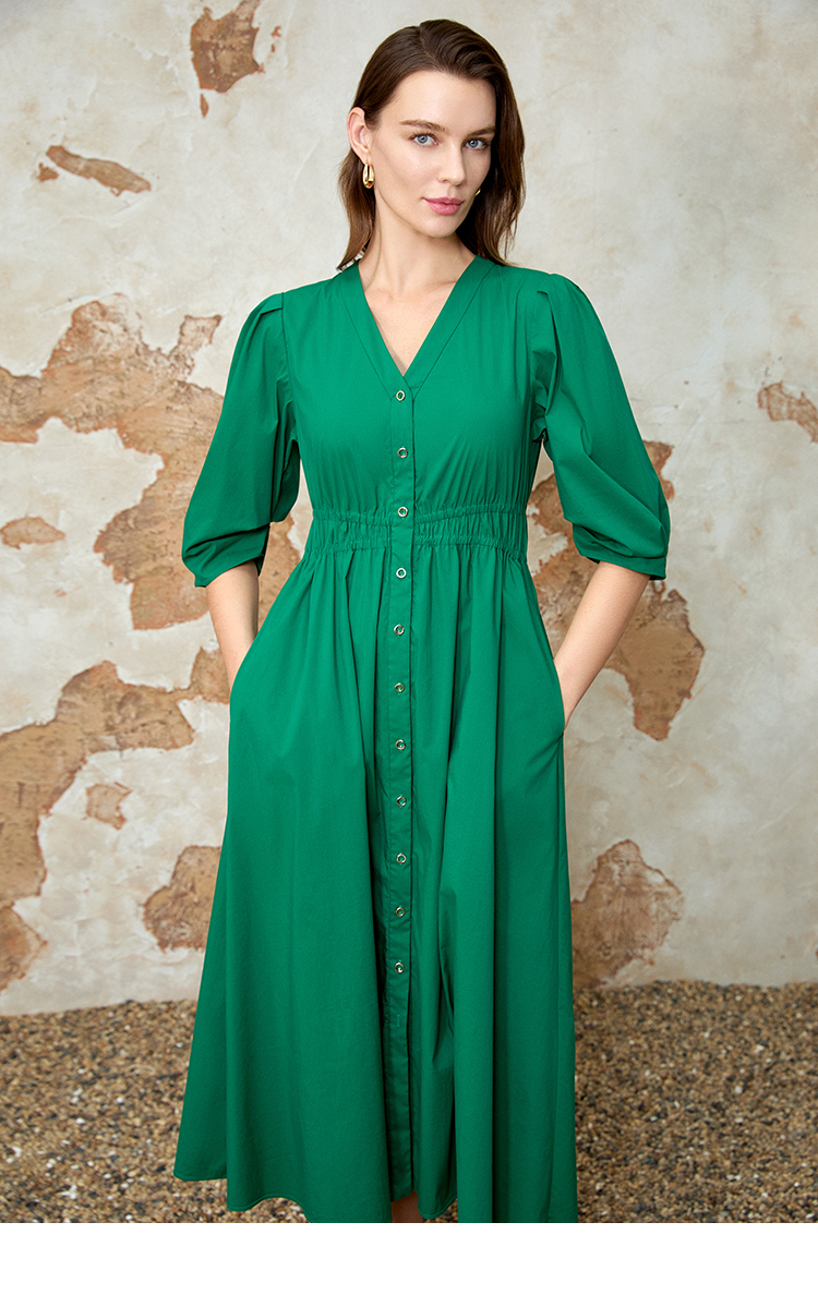 EITIE爱特爱法式时尚收腰气质V领显瘦高腰连衣裙夏季新款8207916