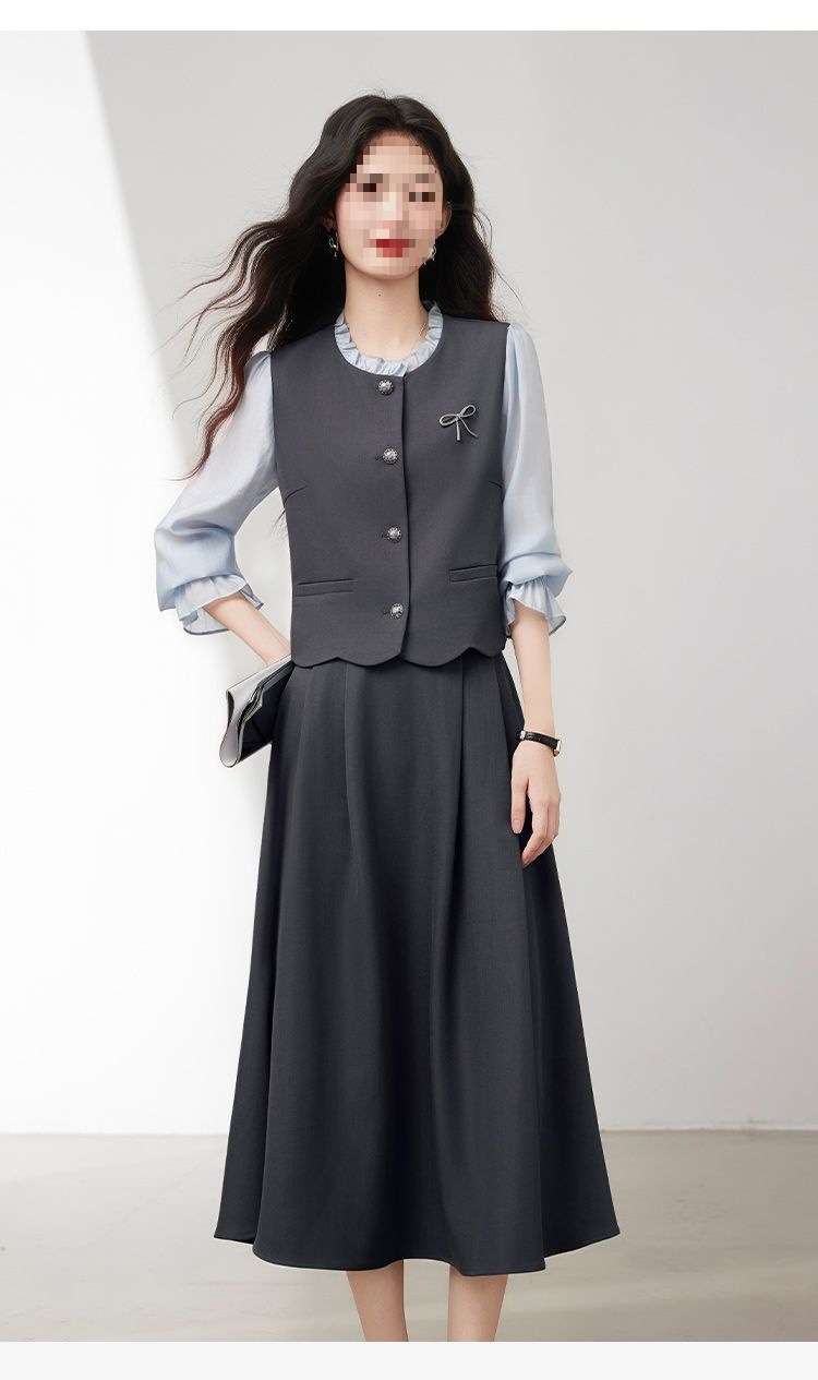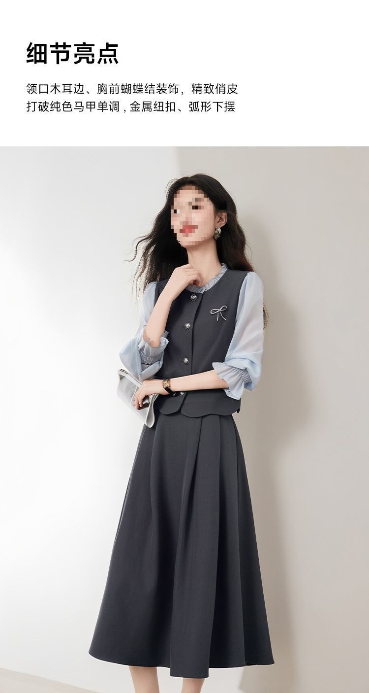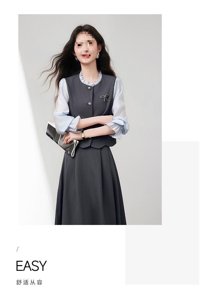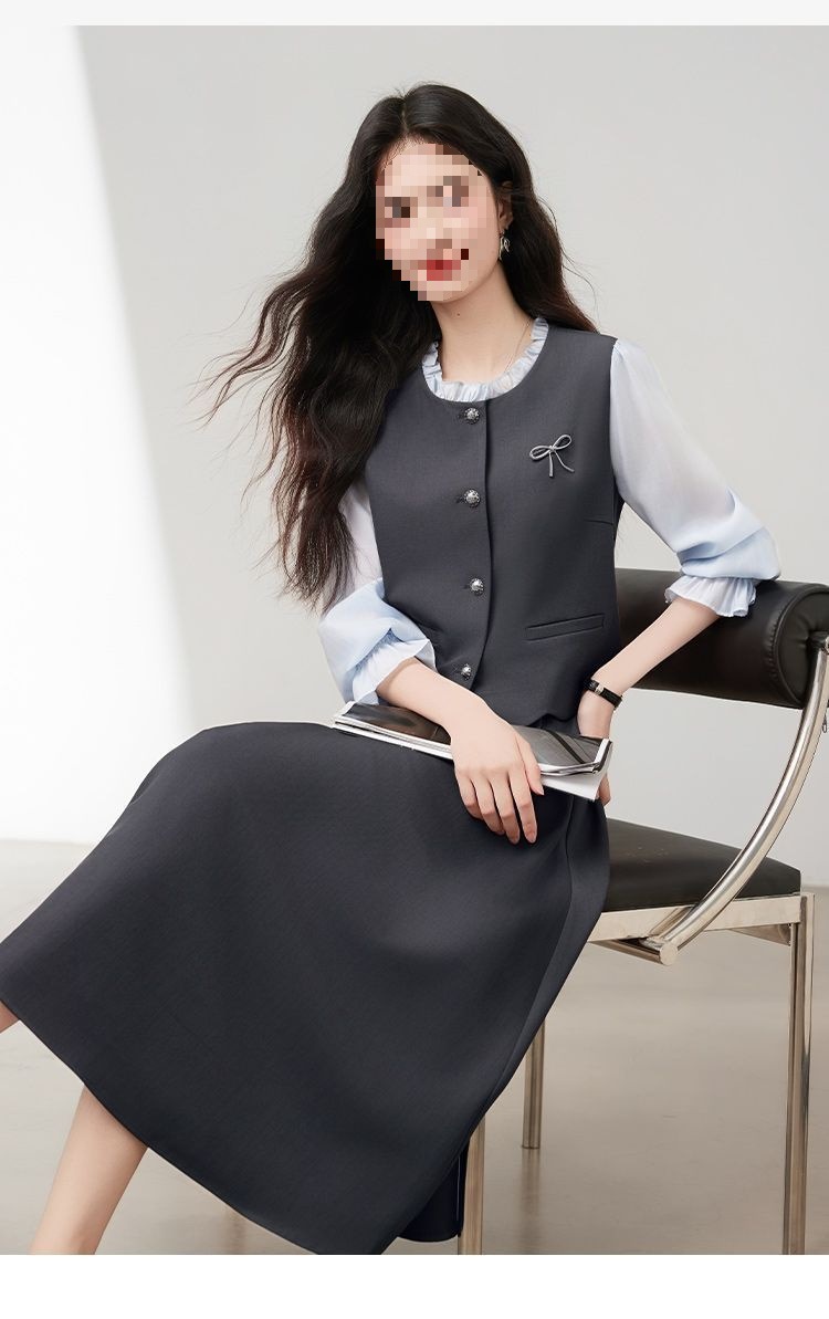 法式假两件上衣套装,拼接外套搭半身裙两件套LJX-857