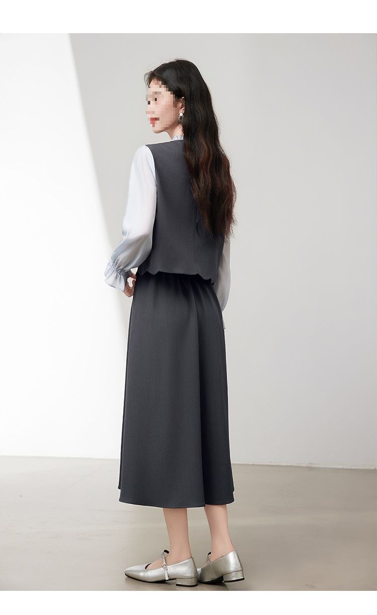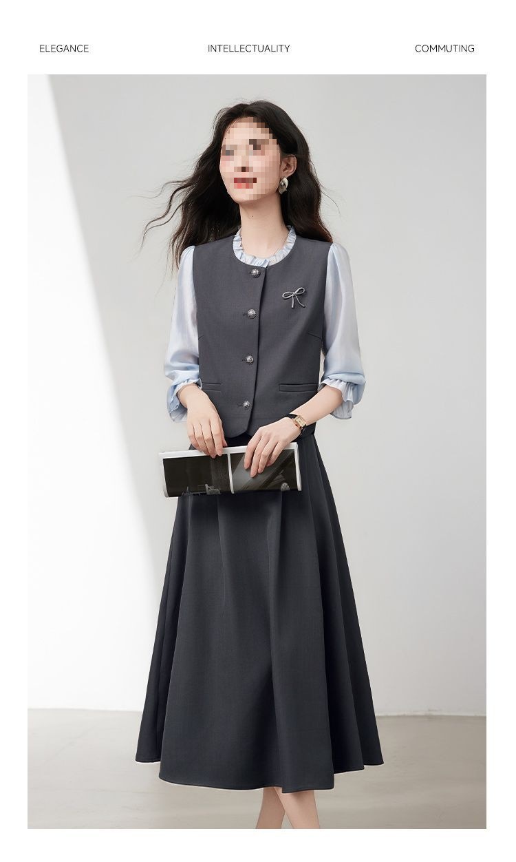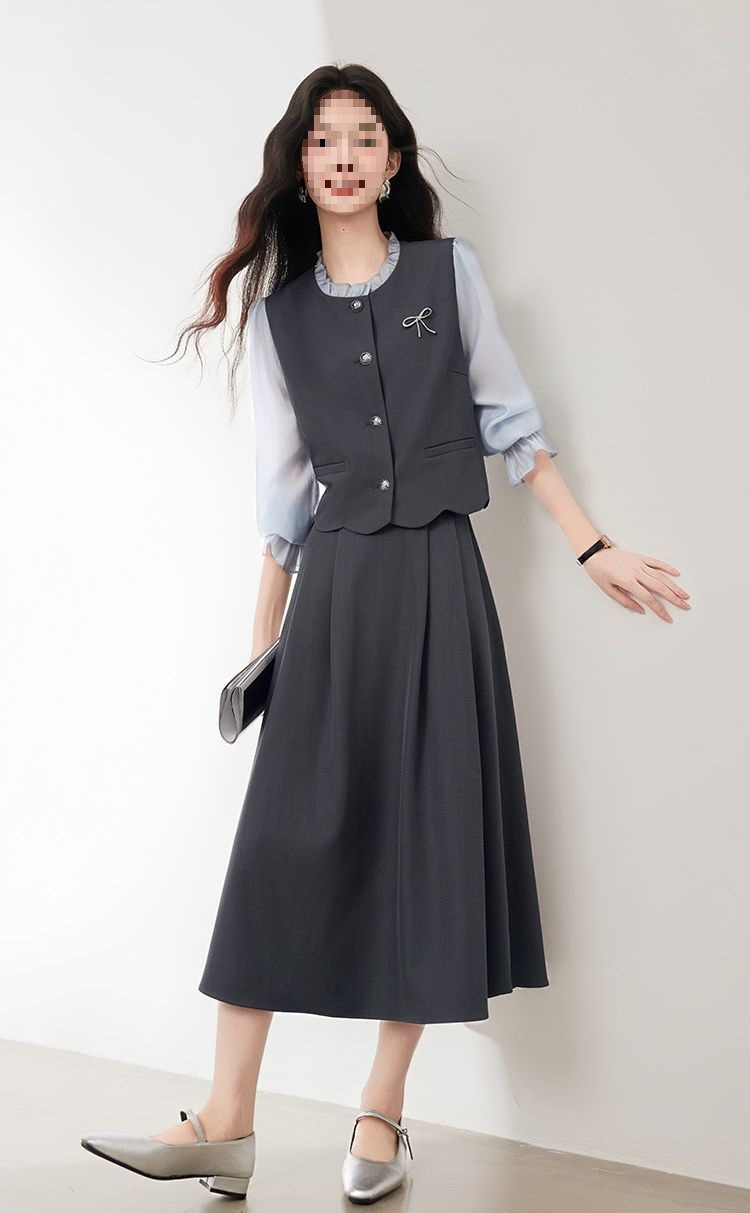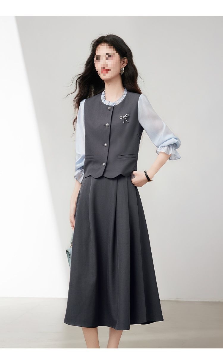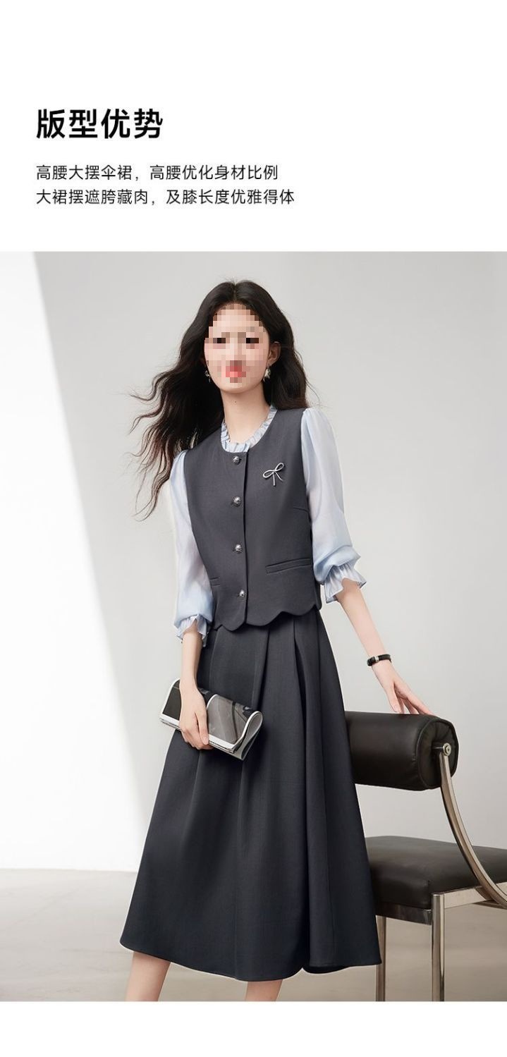 法式假两件上衣套装,拼接外套搭半身裙两件套LJX-857