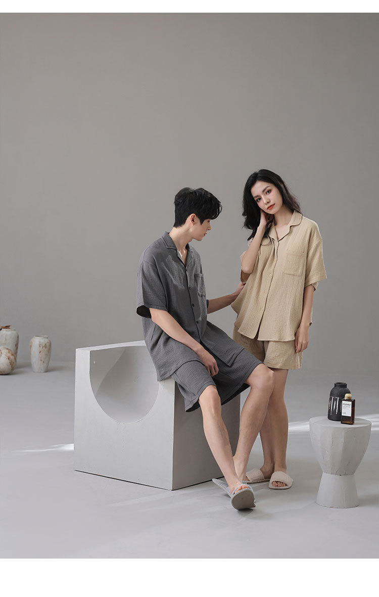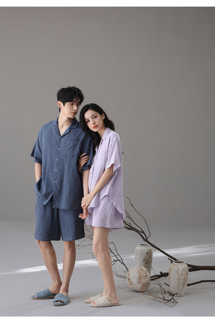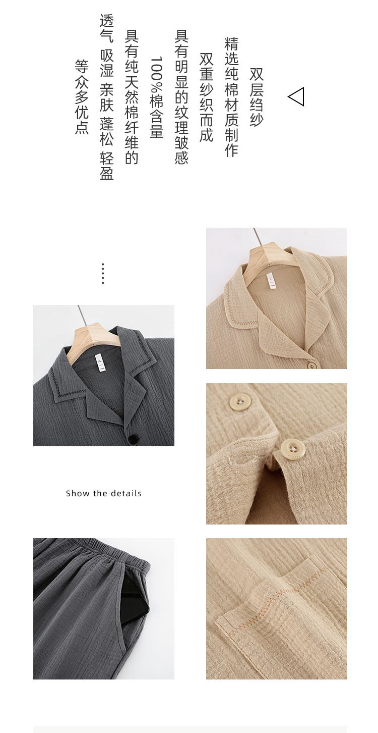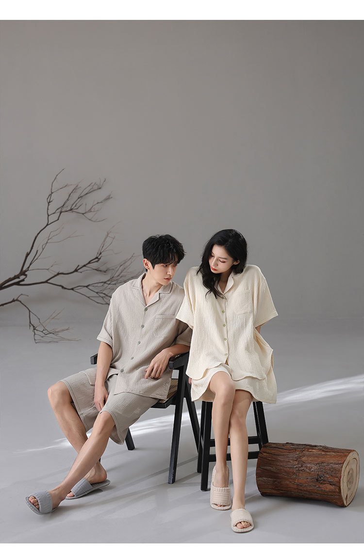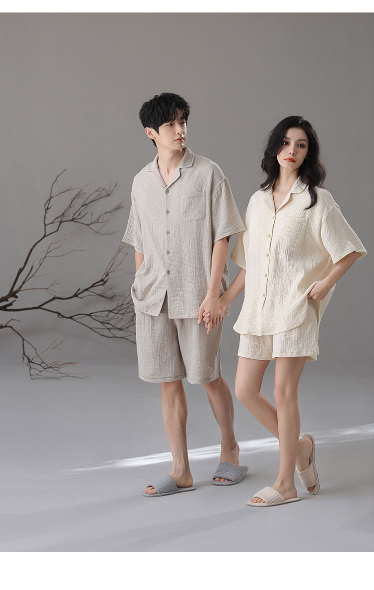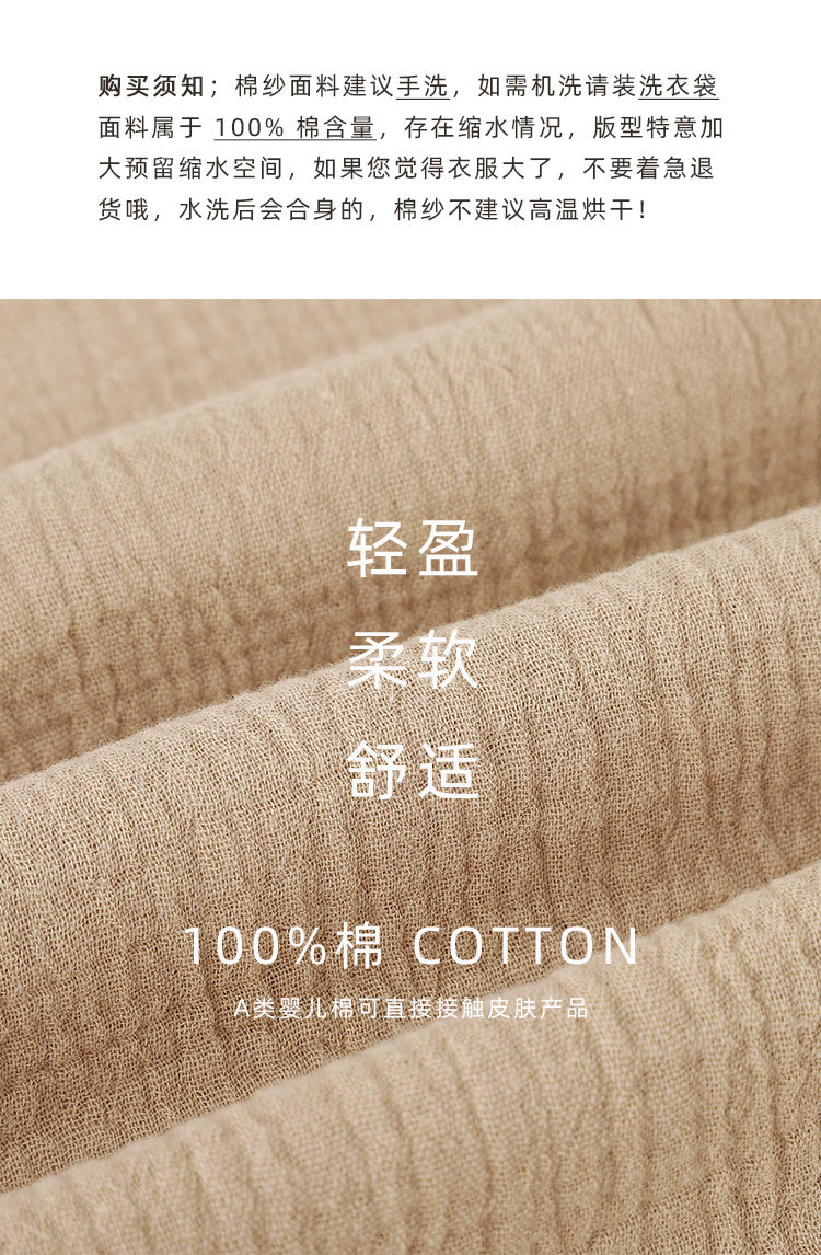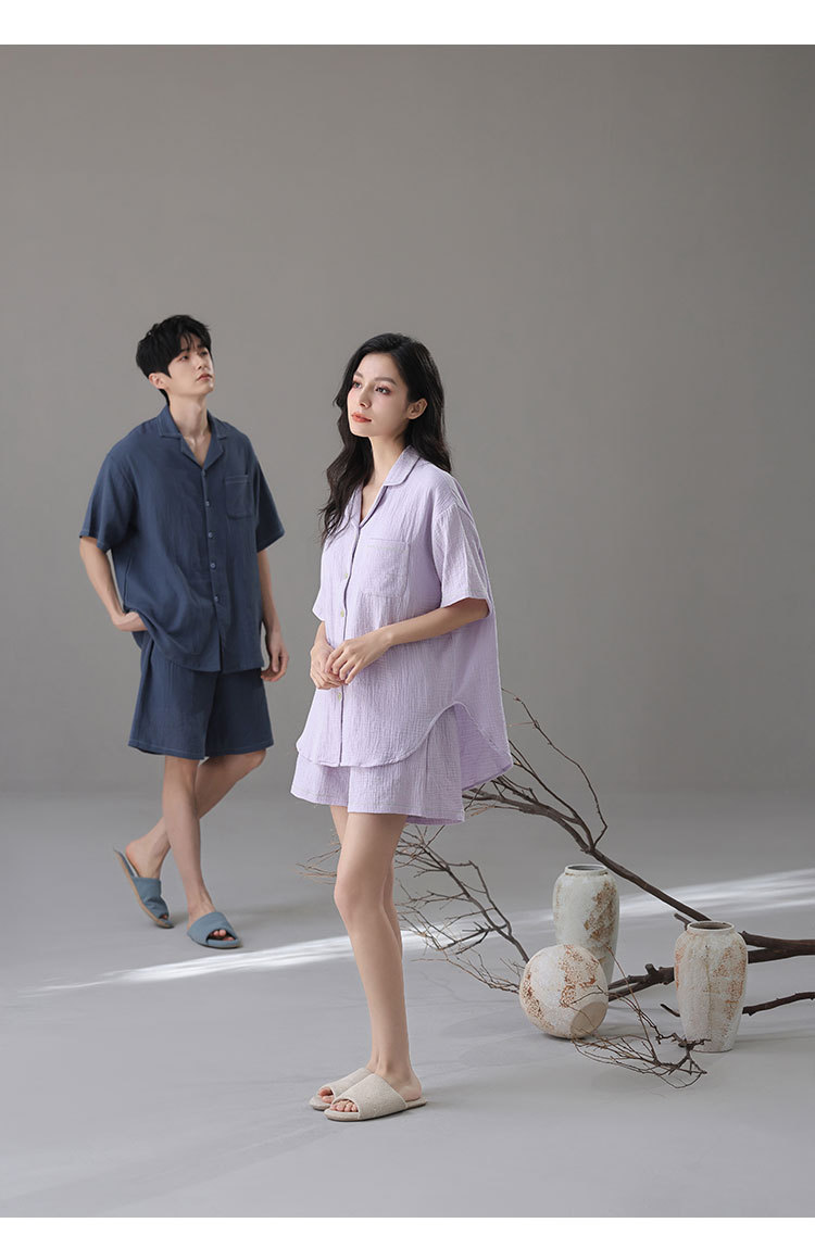 雀说【A类双层纱】婴儿棉春夏情侣睡衣棉纱短袖宽松款女胸垫家居服AL6300