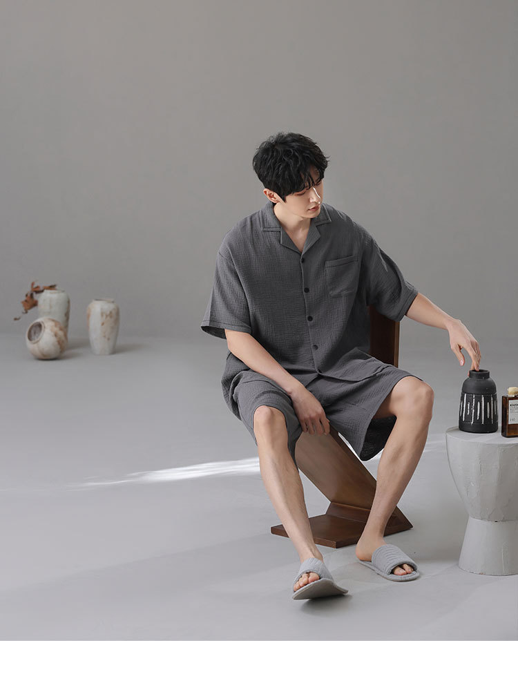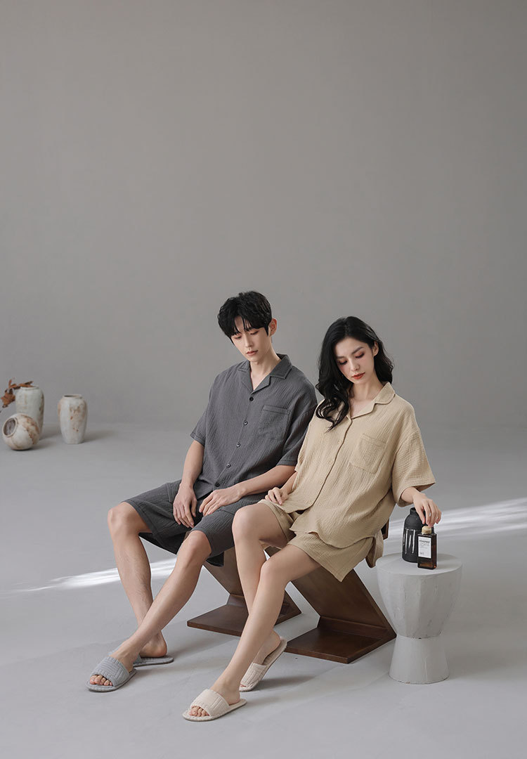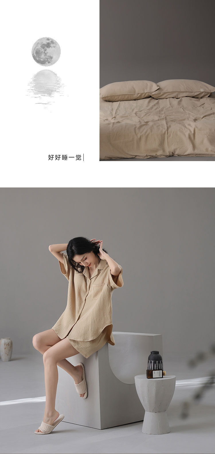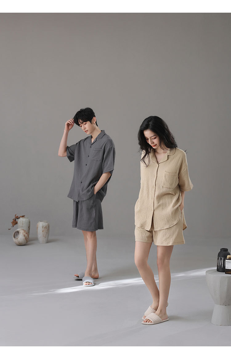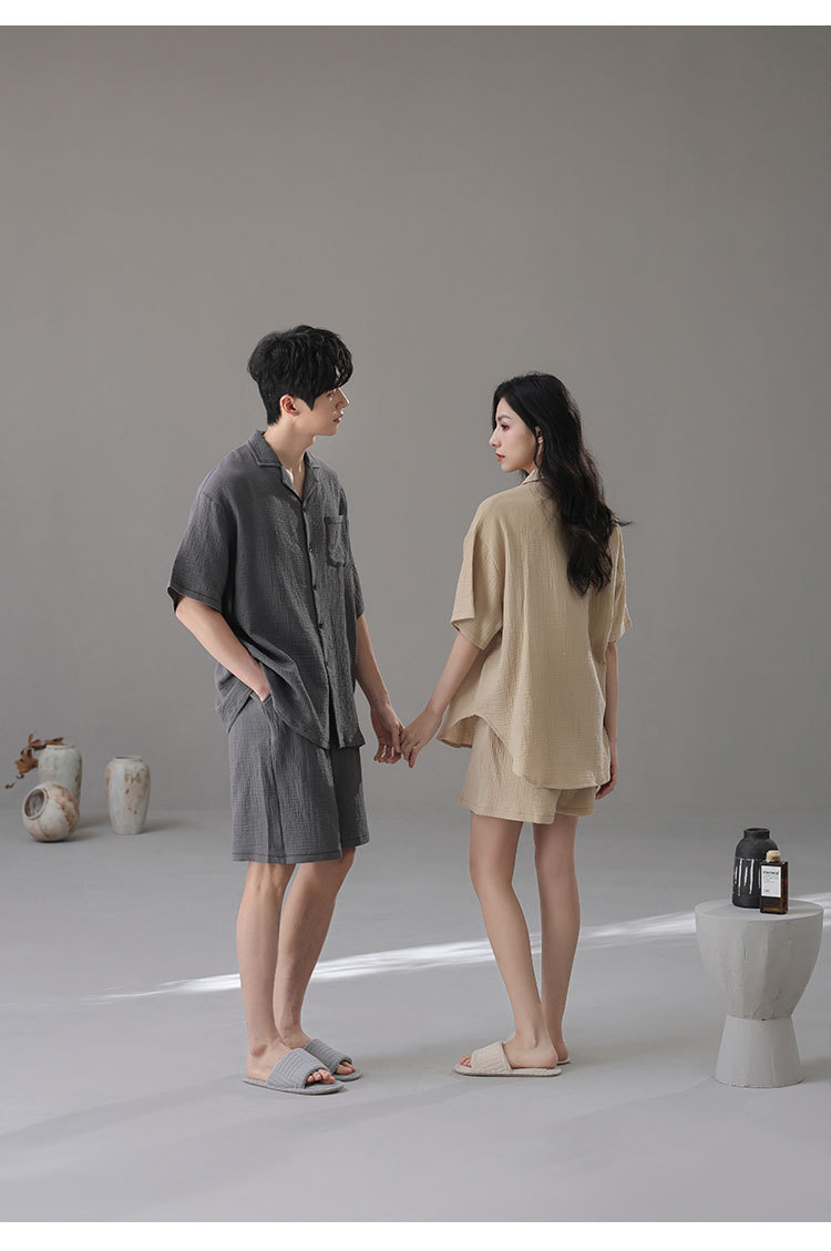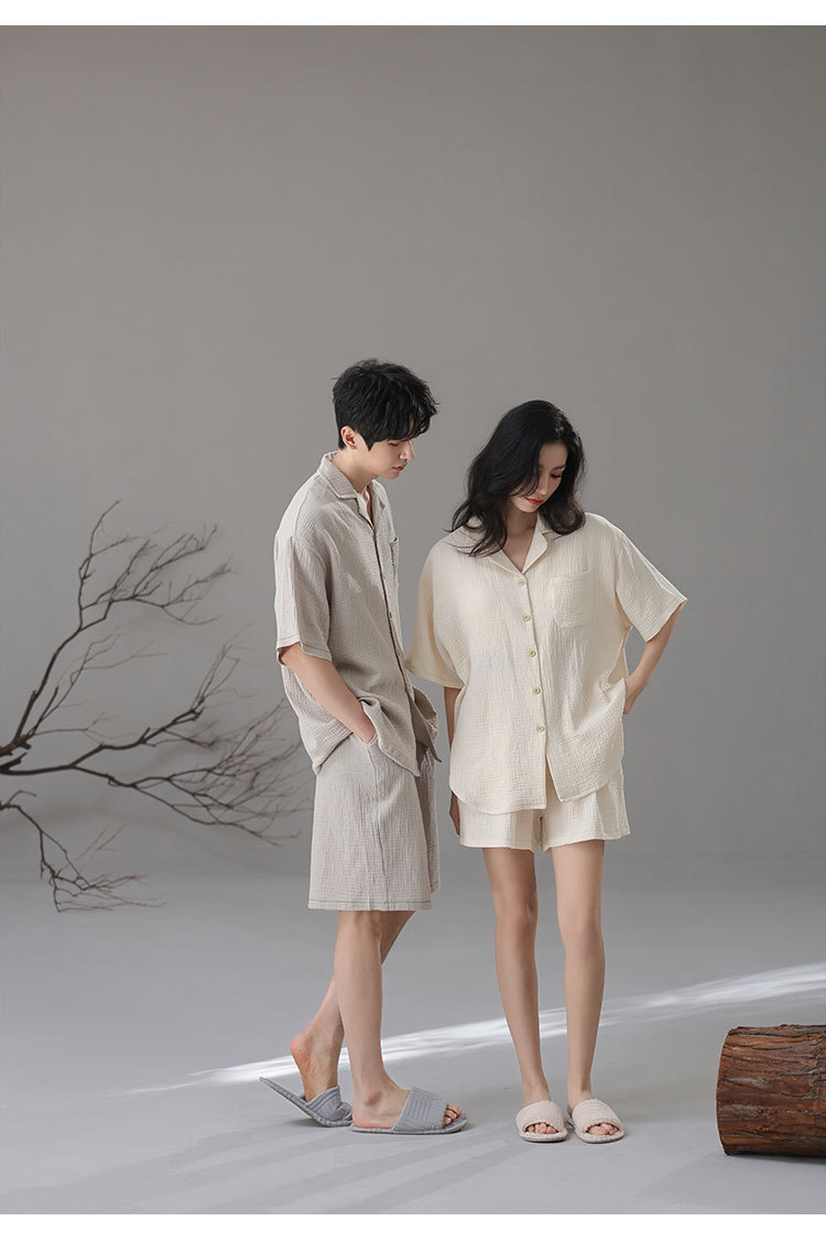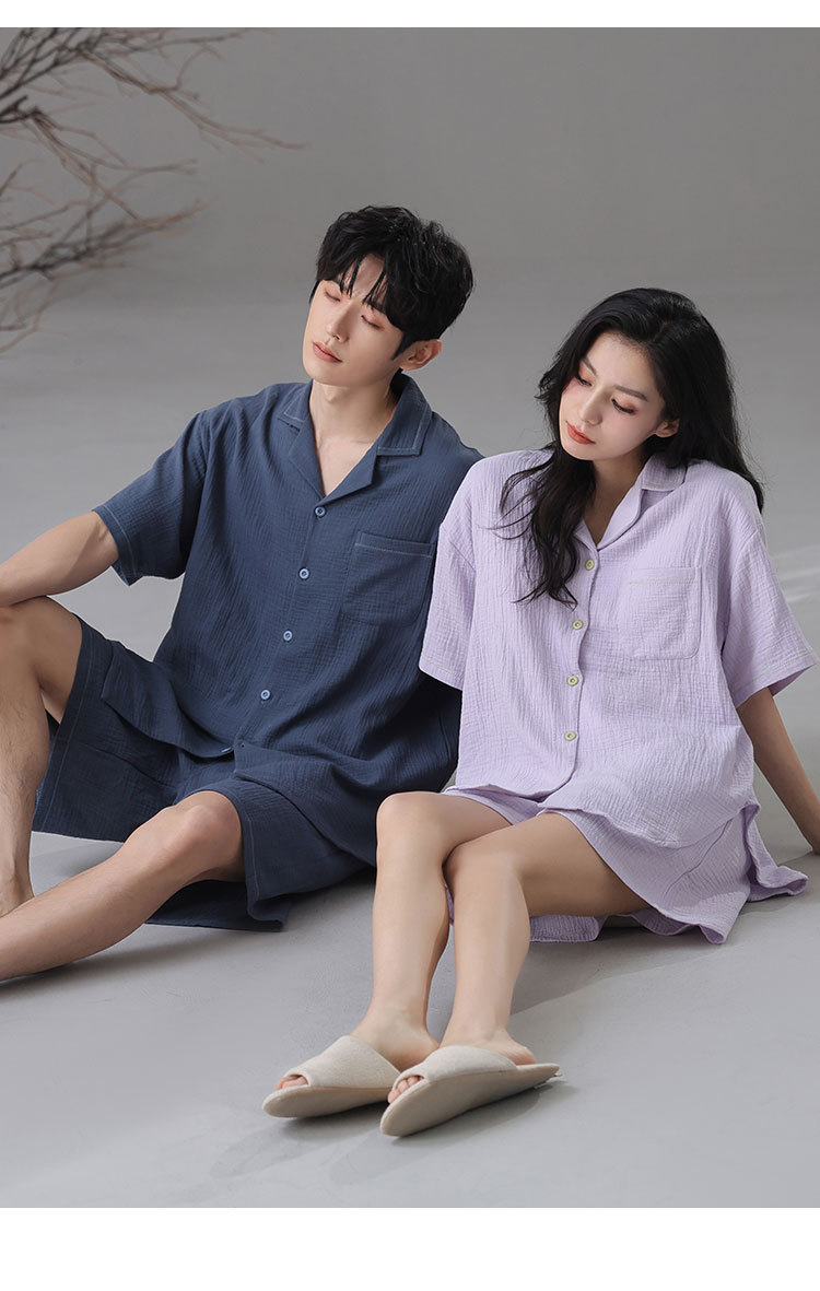 雀说【A类双层纱】婴儿棉春夏情侣睡衣棉纱短袖宽松款女胸垫家居服AL6300