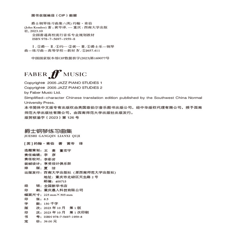 *书名:爵士钢琴练习曲集 | *ISBN:978-7-5697-1959-8 |