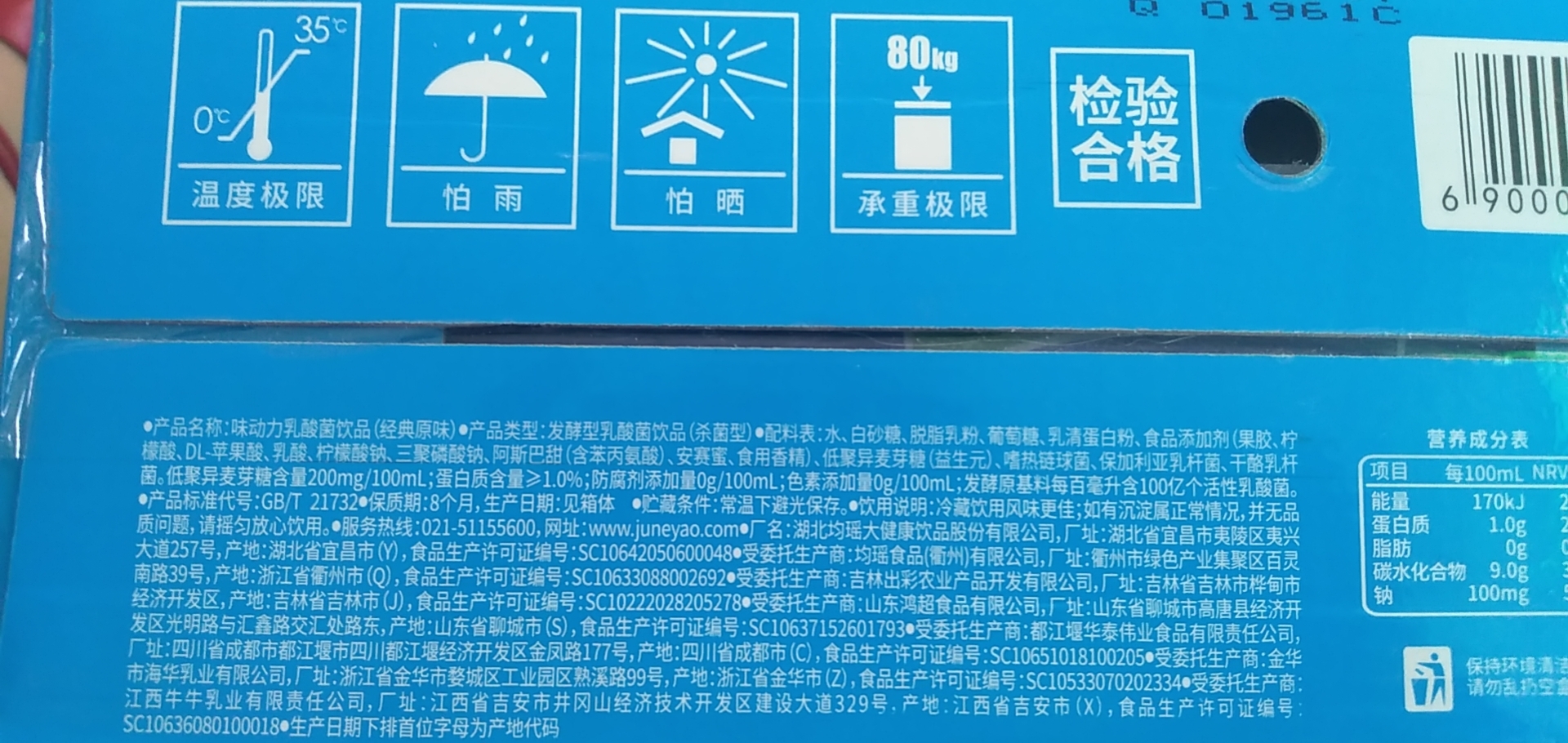 均瑶味动力乳酸菌饮品经典原味100ml*30瓶
