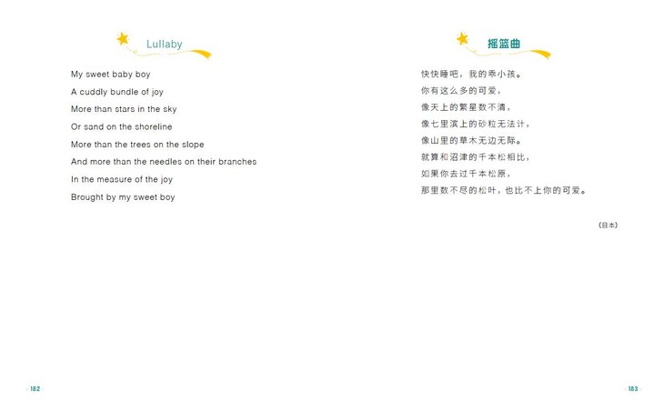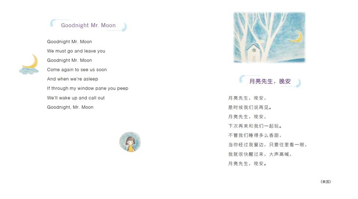 另外,我们还能从世界童谣中窥探各国的文化历史和风土人情,为孩子念一些简单的英语童谣,也能培养他们一些英语的语感。