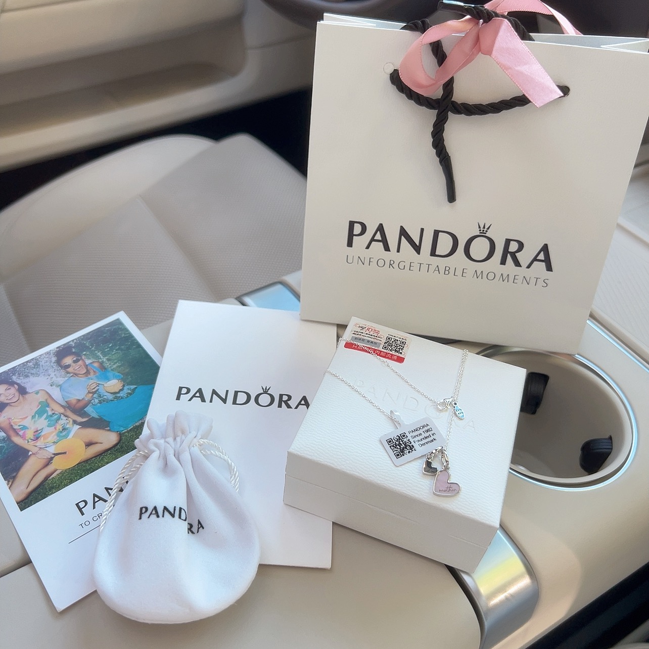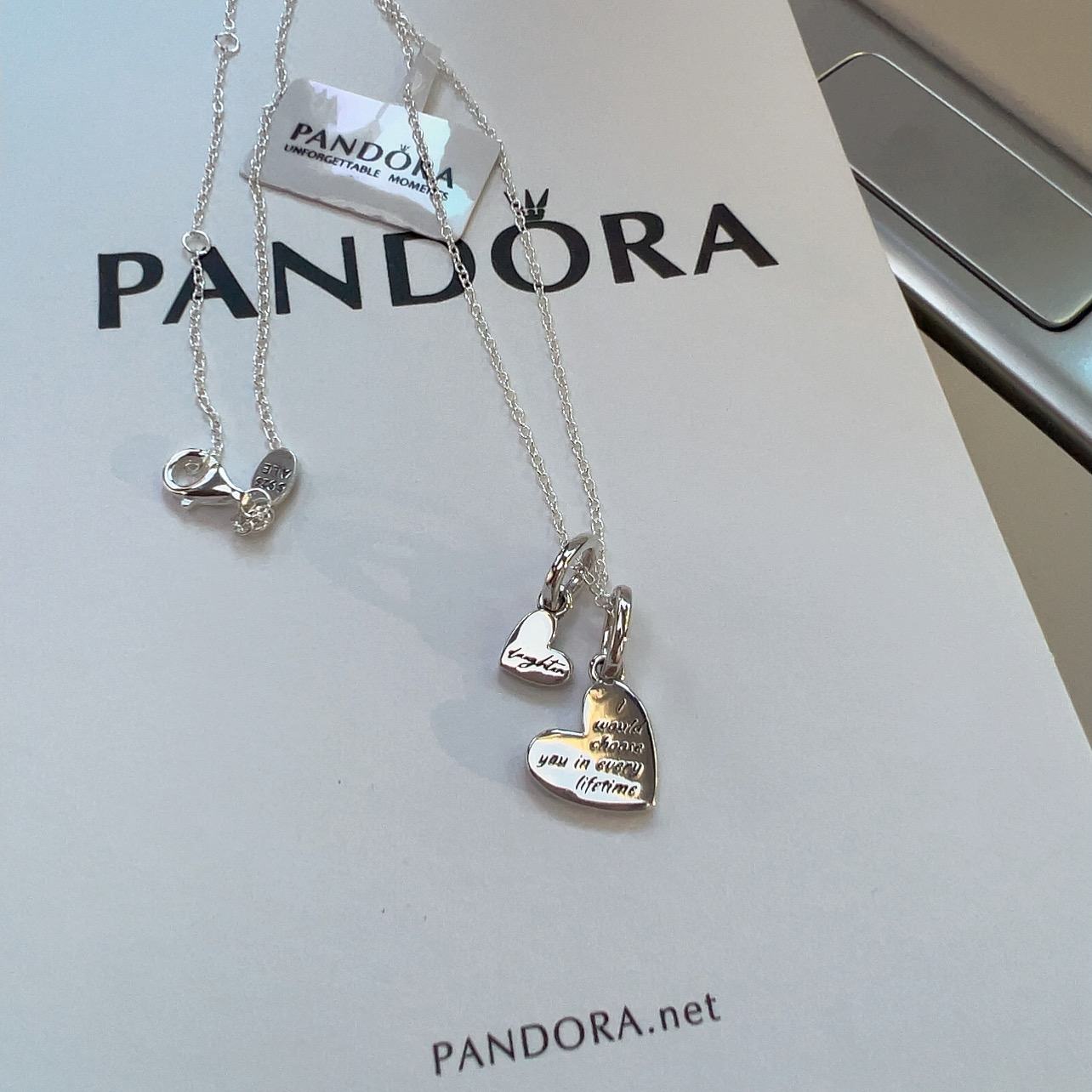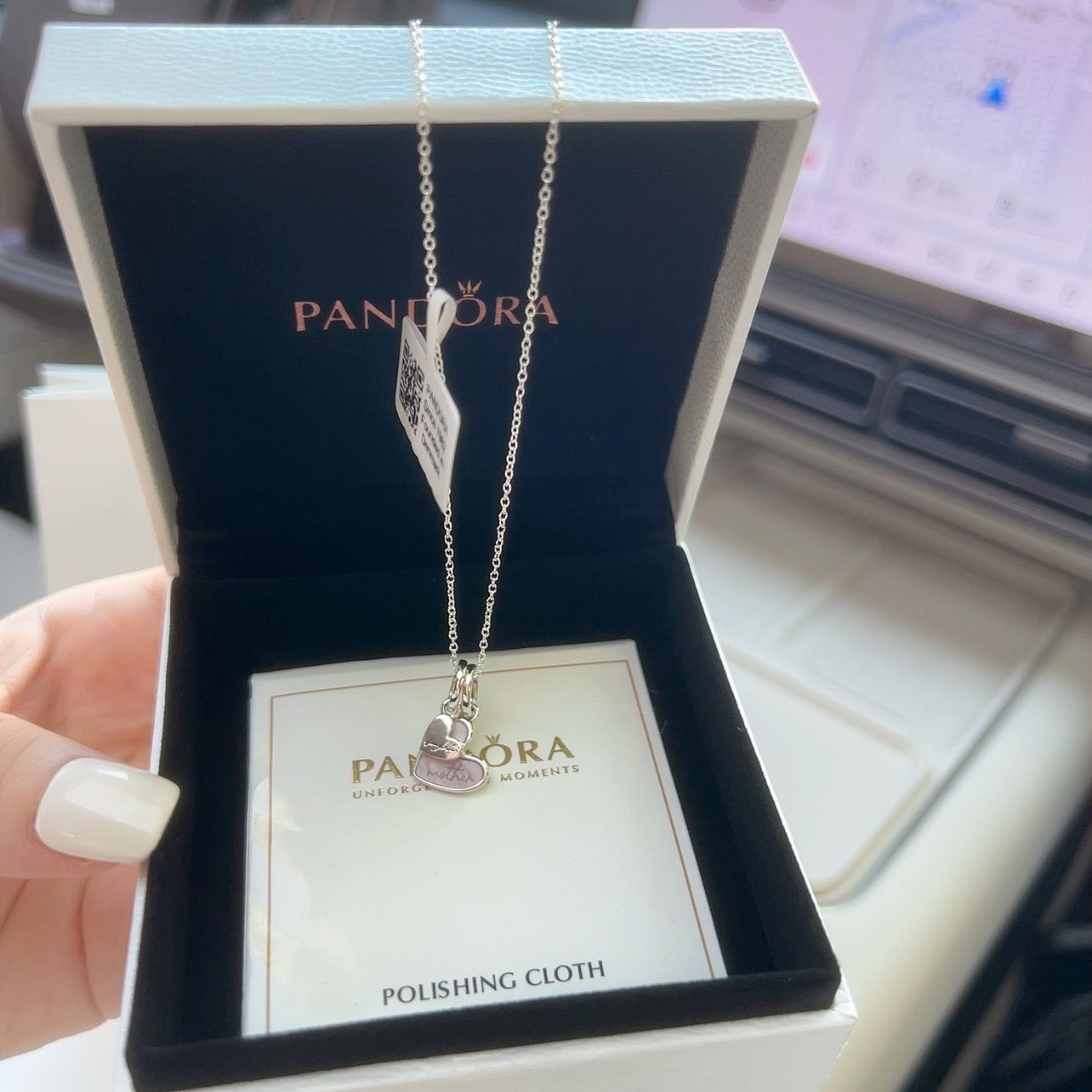 Pandora潘多拉母女组合吊饰爱心叠放粉色亲情七夕礼物