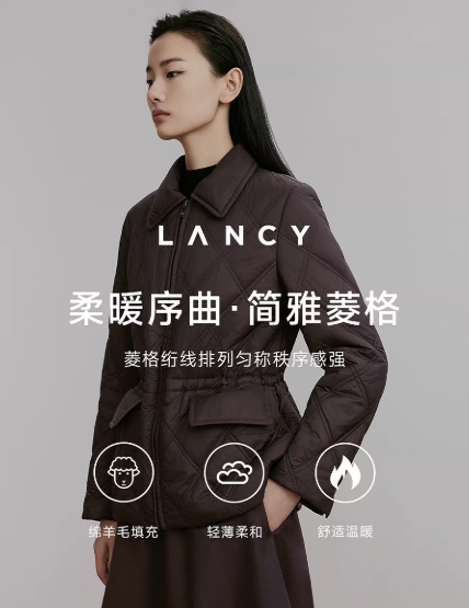 朗姿 【羊毛填充】轻薄款简约短款高端菱格棉服外套 LCFD98PJK942N4D