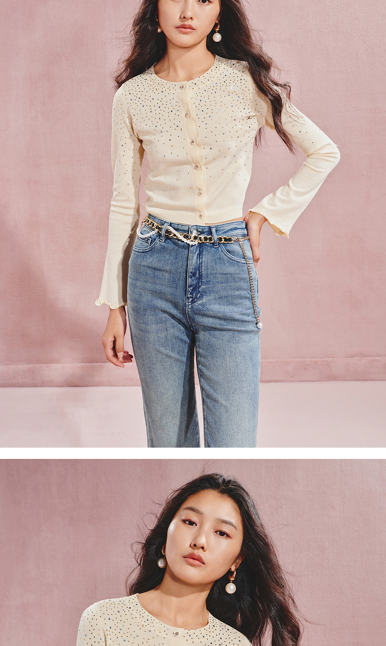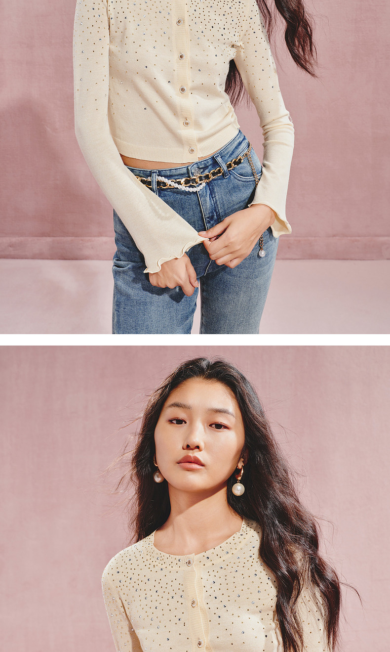 【秀场抢先款】MAXRIENY*休闲感渐变烫钻收腰毛衫2024秋冬新款(货号:MC85SW539)