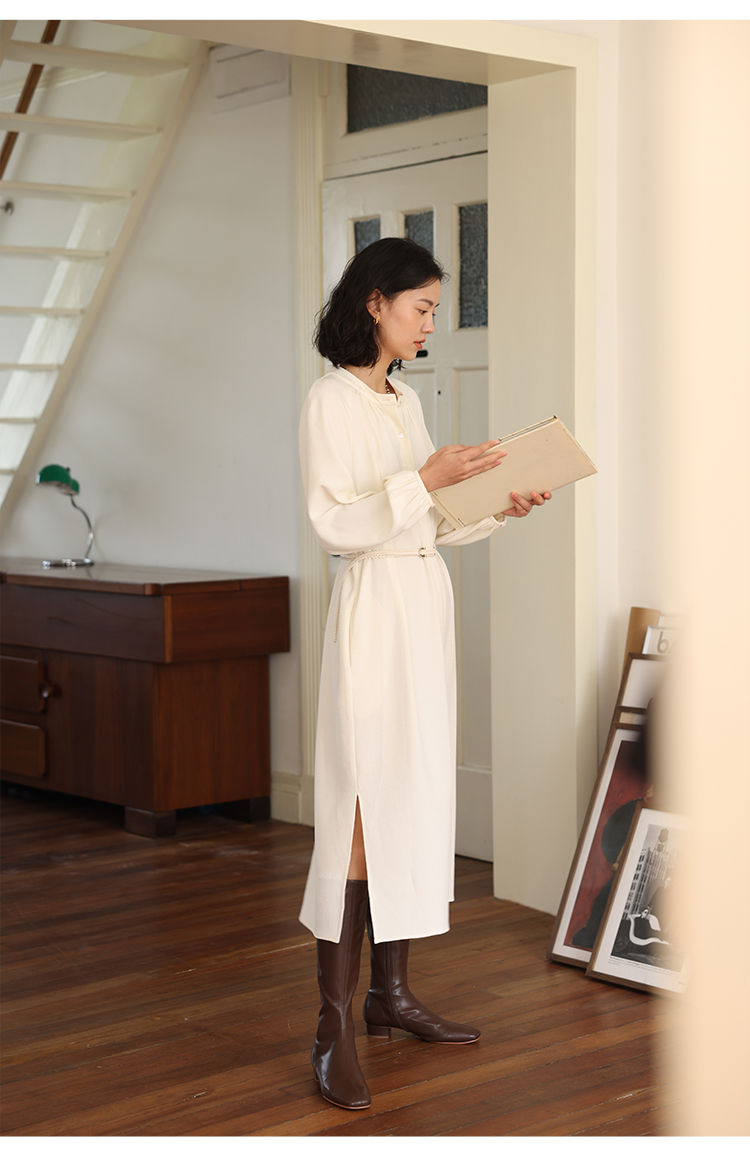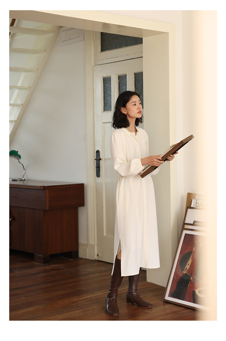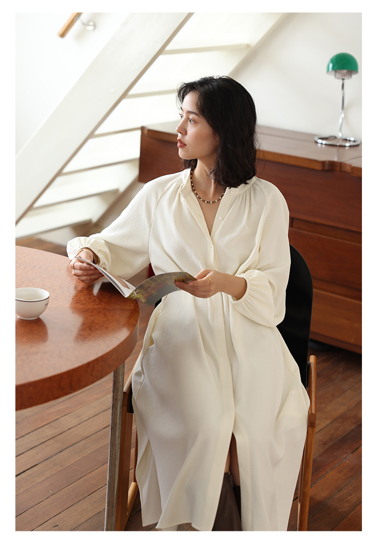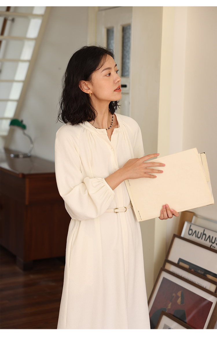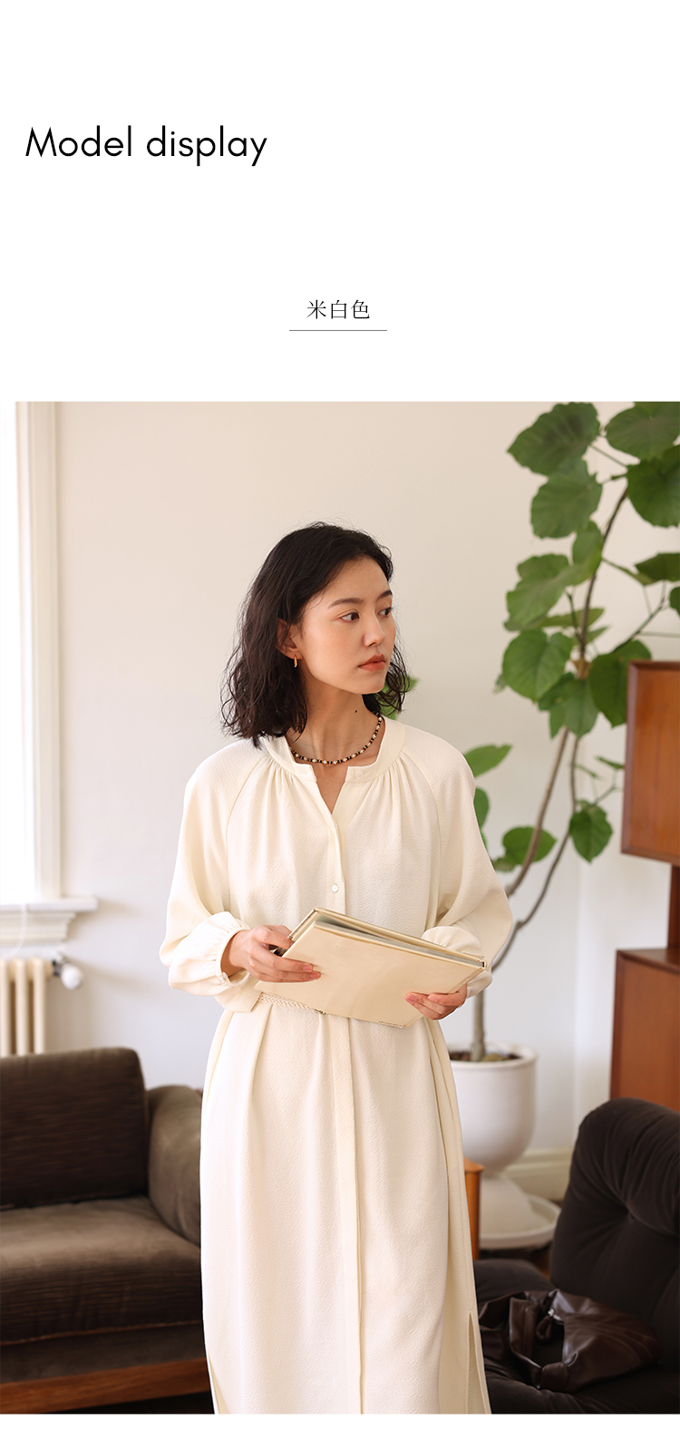 HeyDress法式连衣裙女秋季宽松V领收腰设计气质垂感长袖浪漫裙子