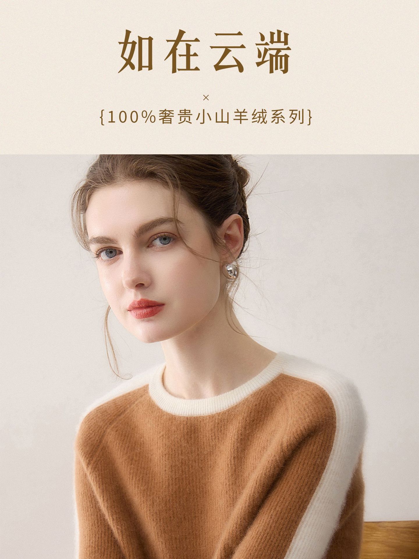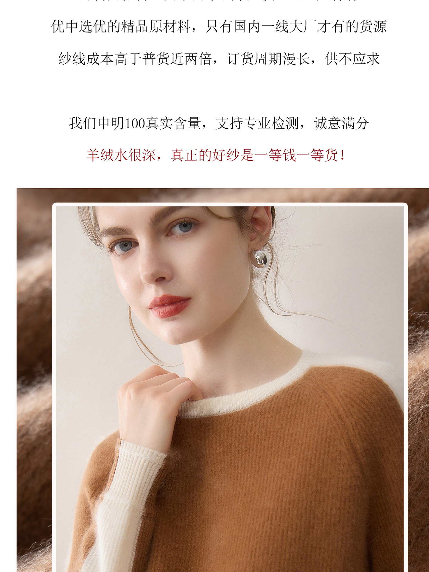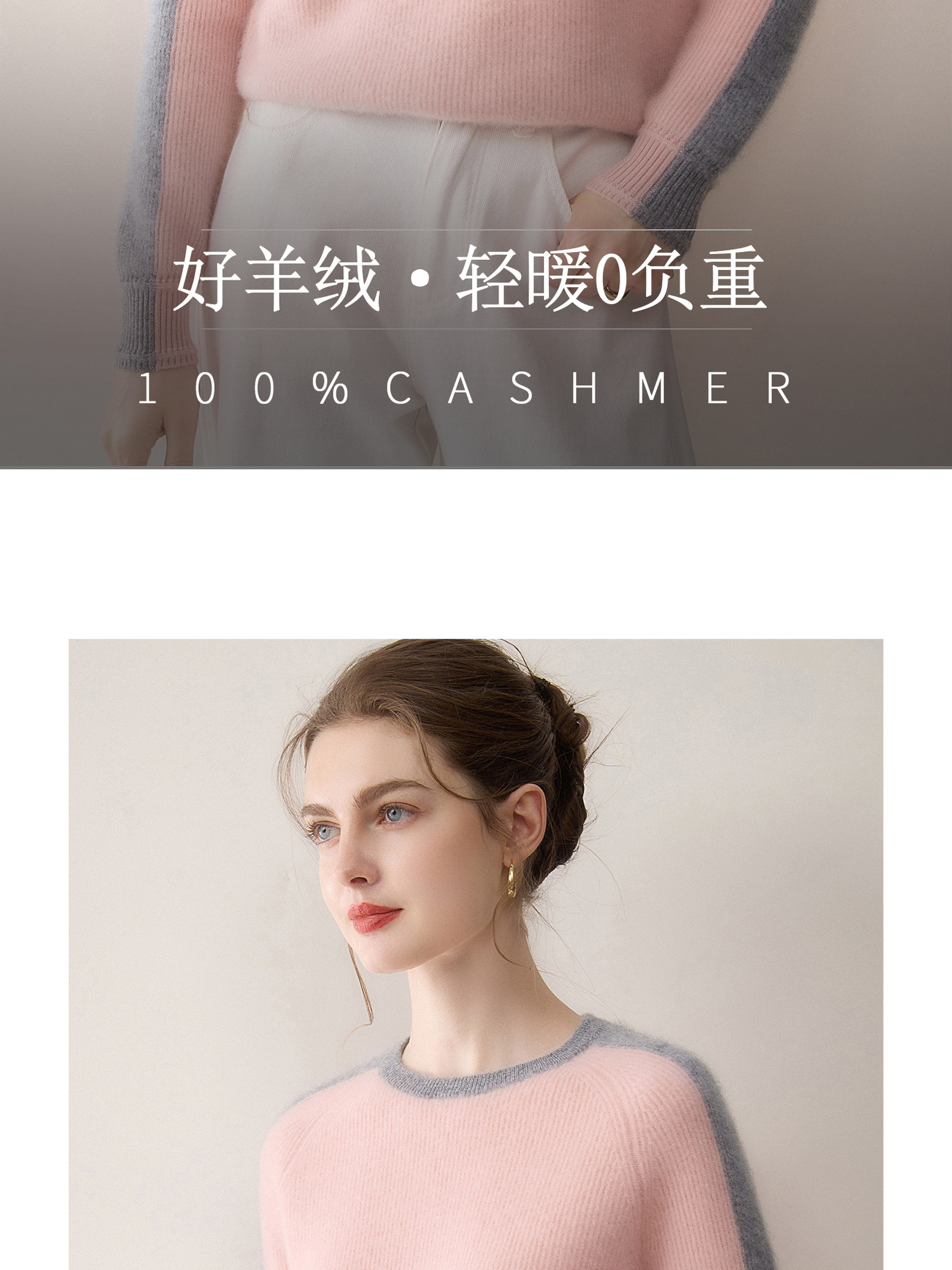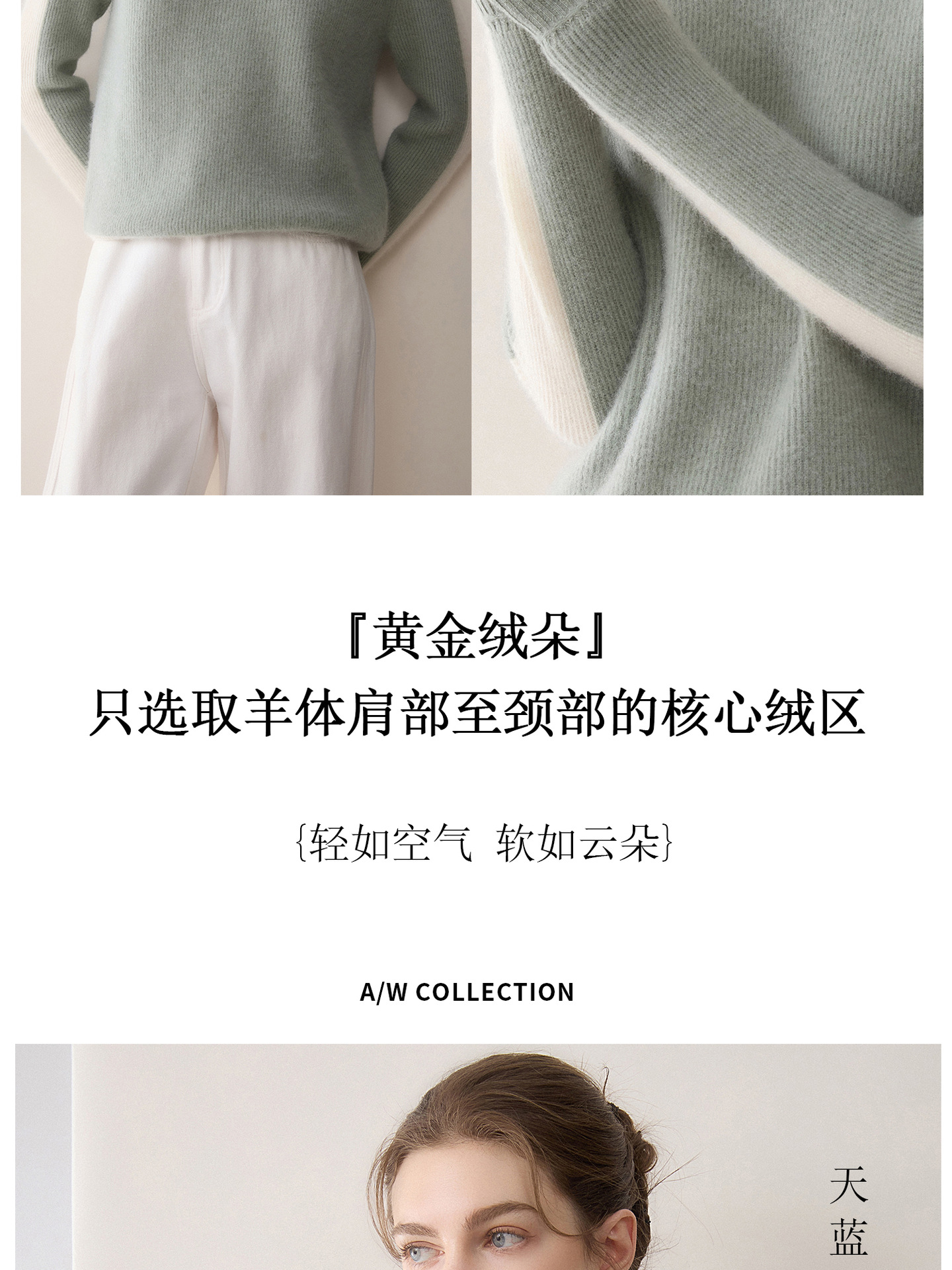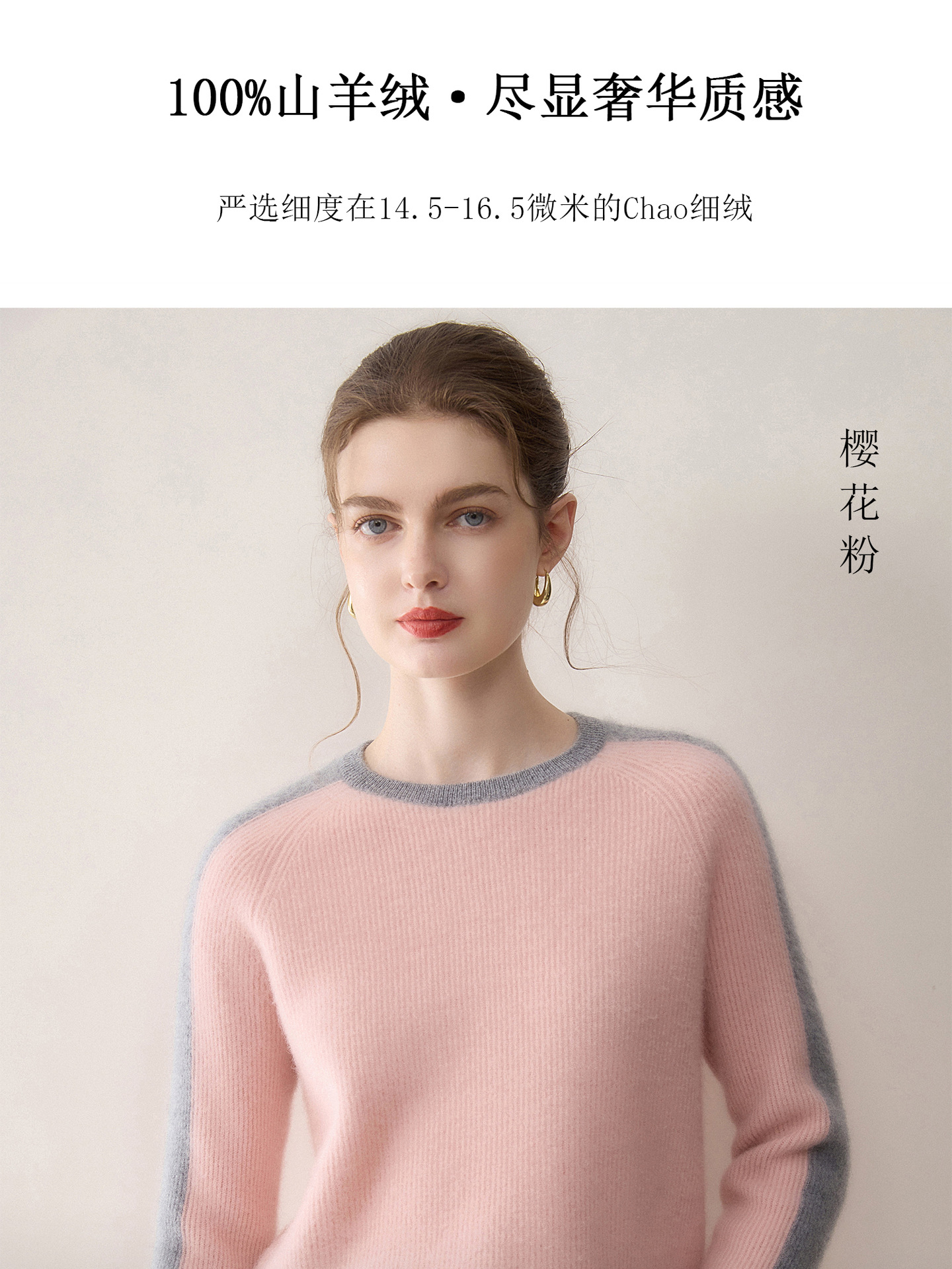 「高货rg」全新升级【铂金会员735/天猫999/差价264】(75012)洛诗琳气质100纯山羊绒衫2025冬季圆领元宝针加厚拼色毛衣