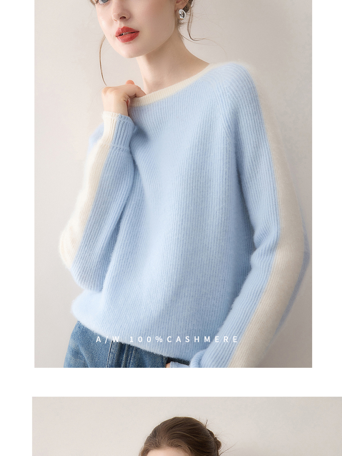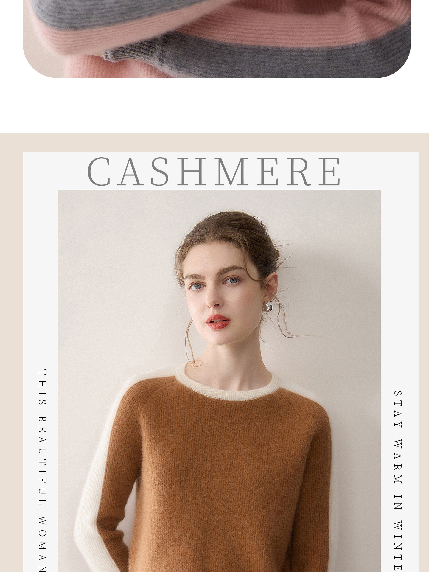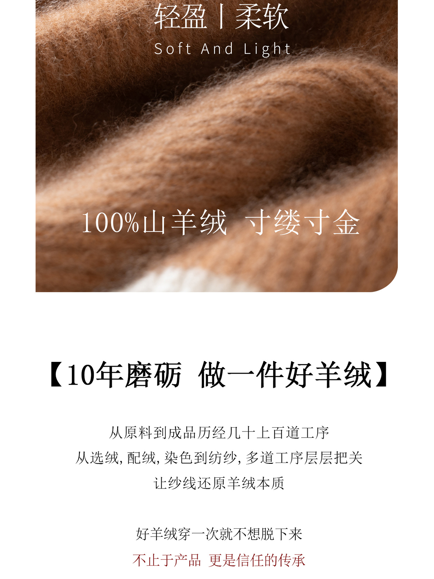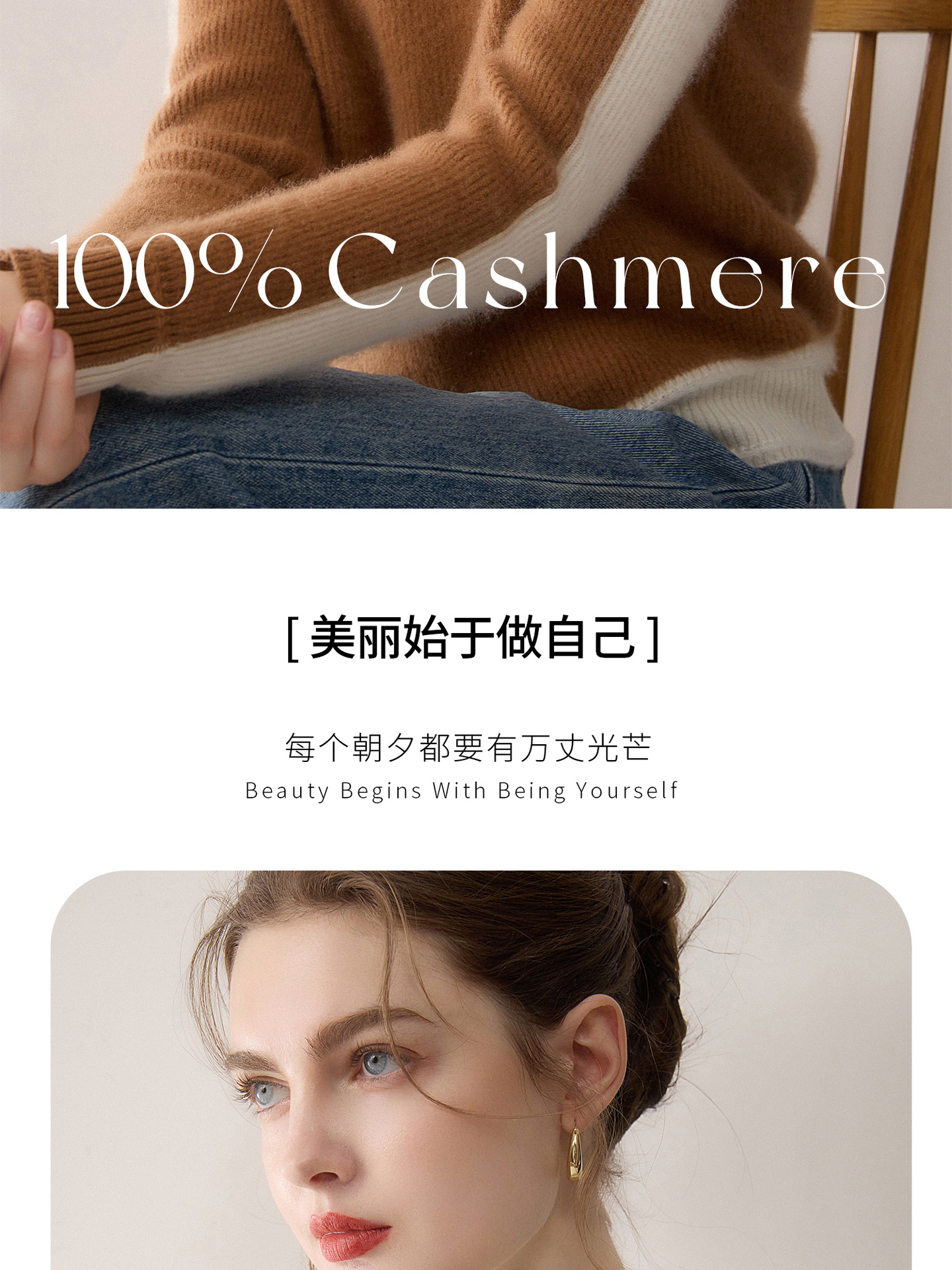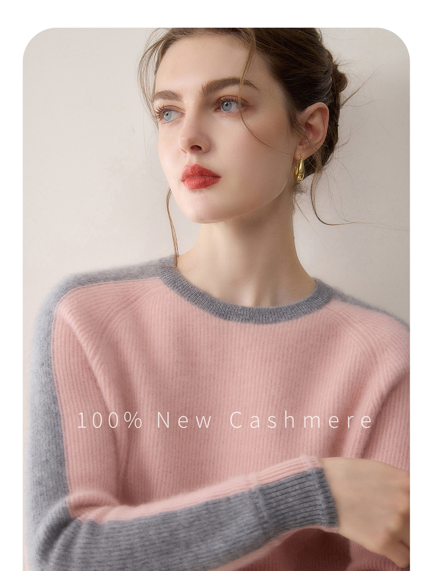 「高货rg」全新升级【铂金会员735/天猫999/差价264】(75012)洛诗琳气质100纯山羊绒衫2025冬季圆领元宝针加厚拼色毛衣