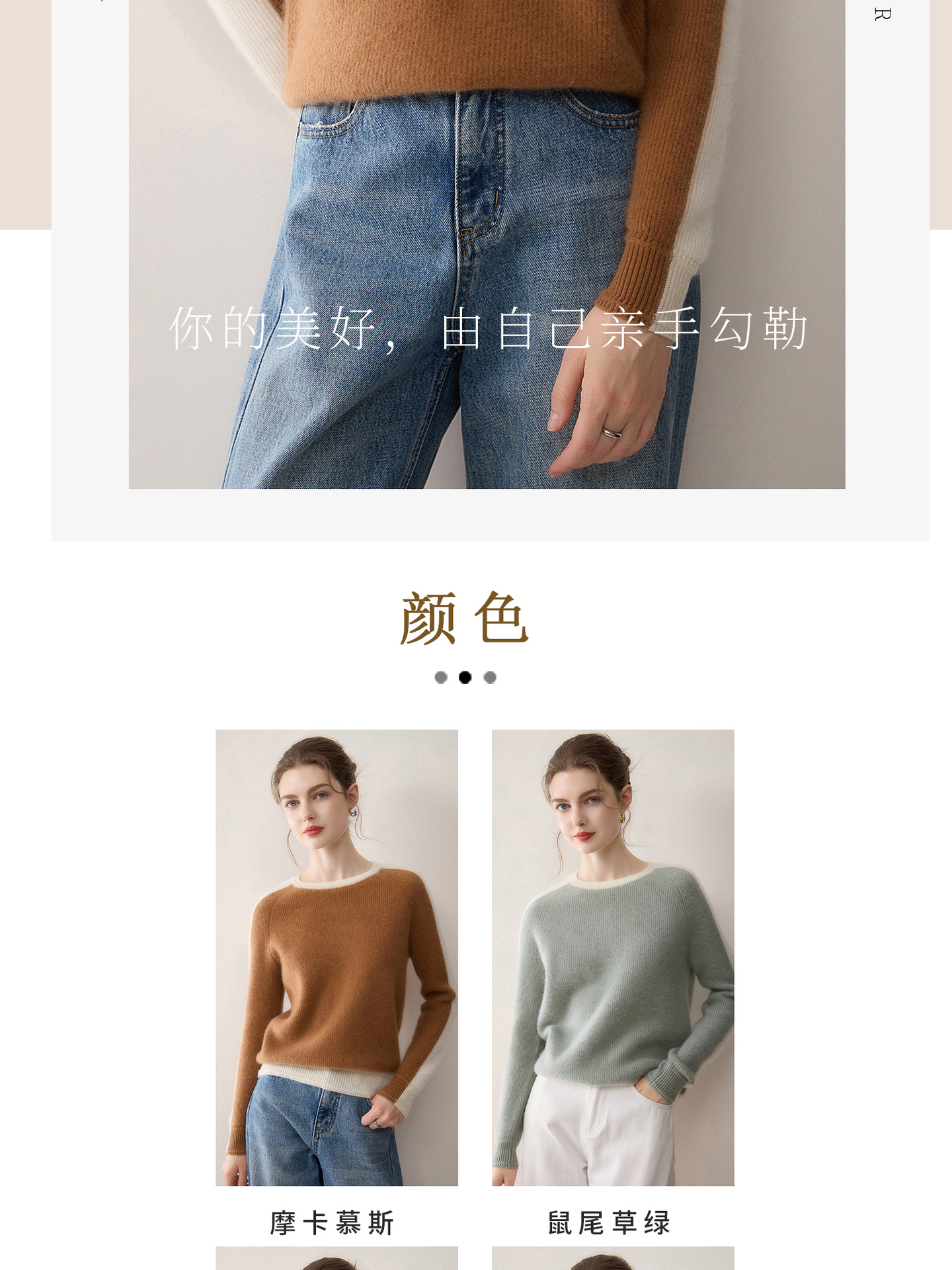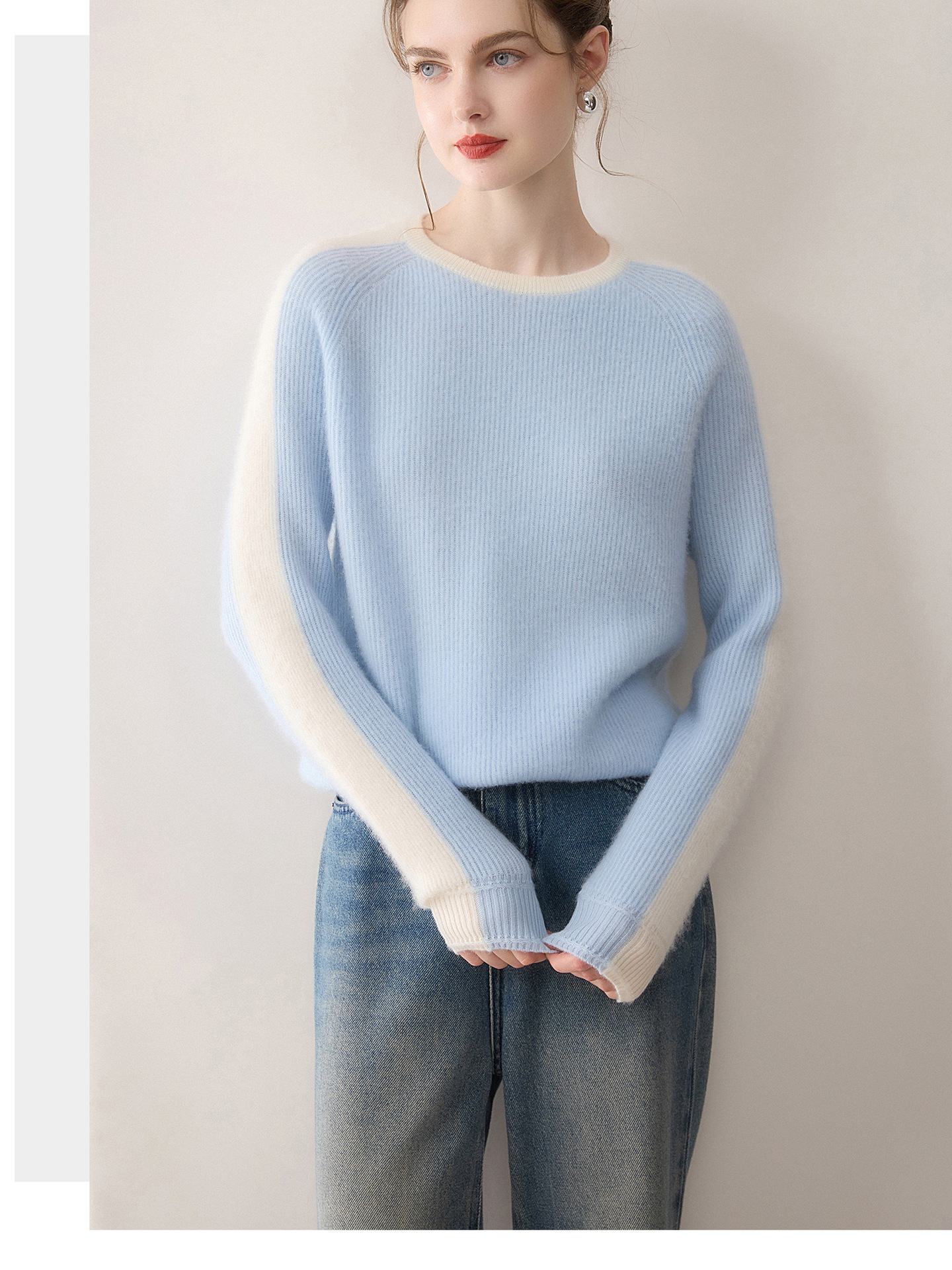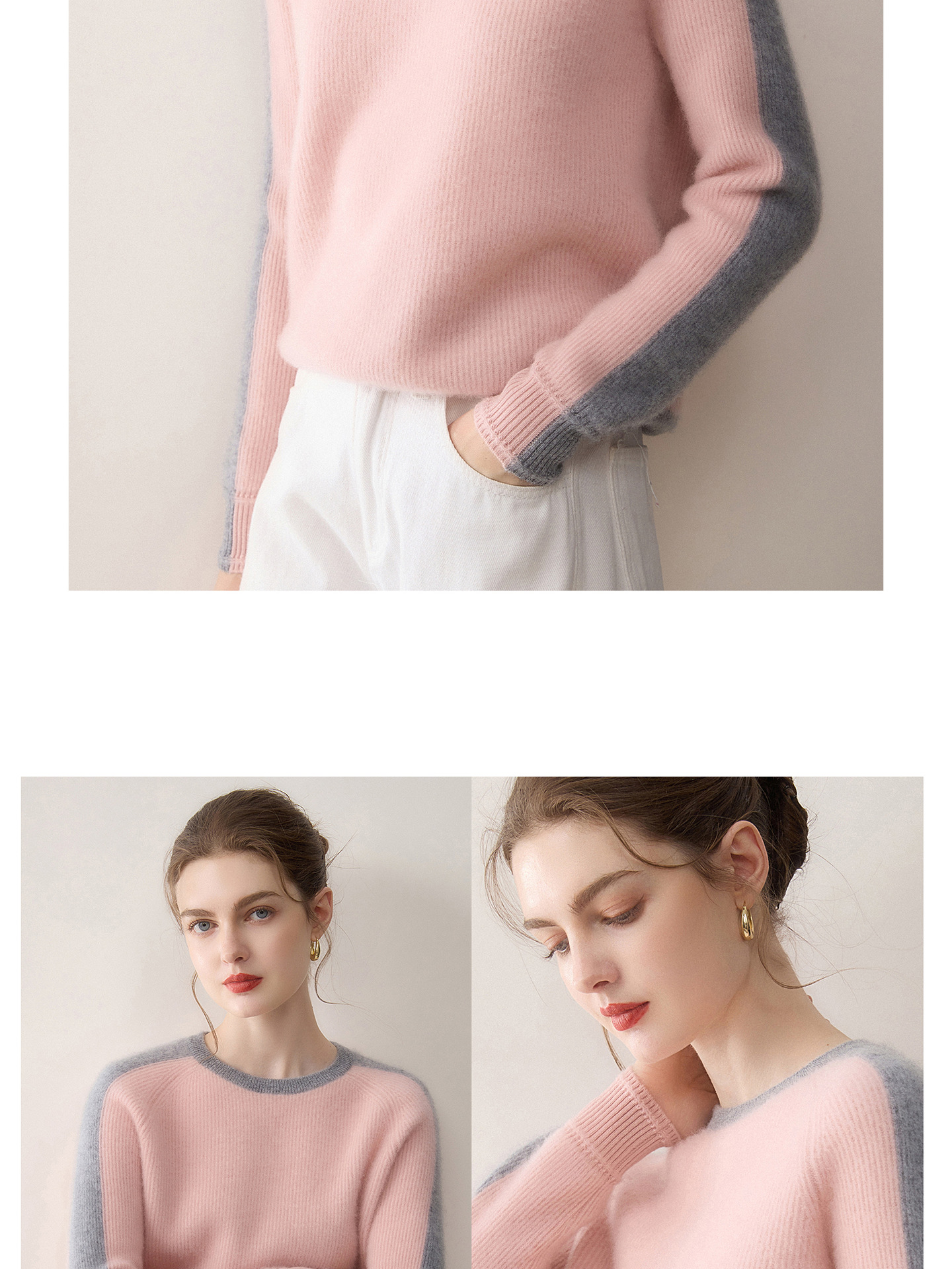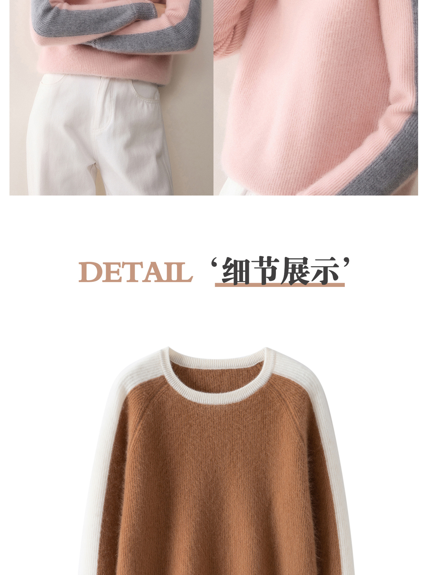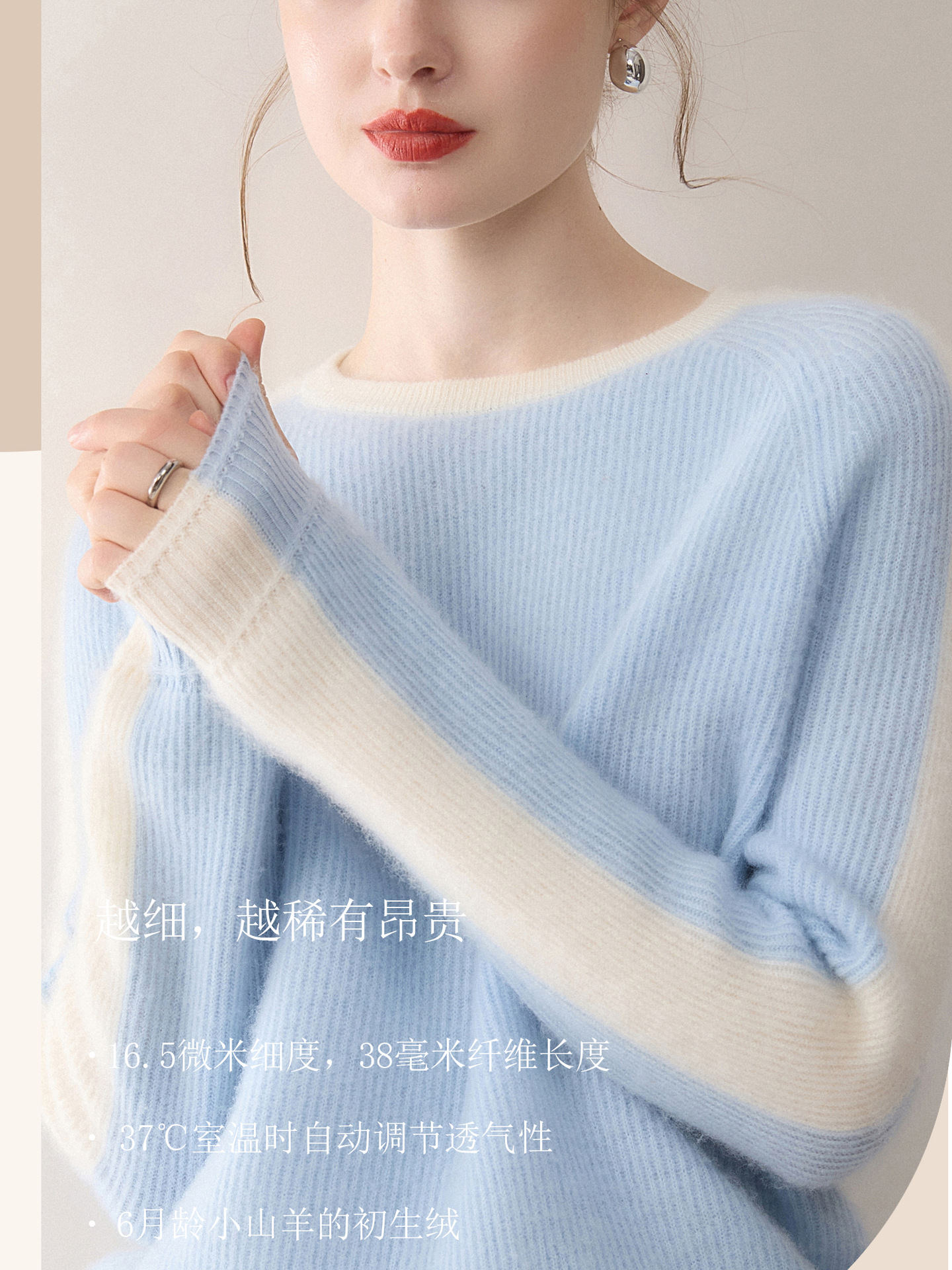 「高货rg」全新升级【铂金会员735/天猫999/差价264】(75012)洛诗琳气质100纯山羊绒衫2025冬季圆领元宝针加厚拼色毛衣