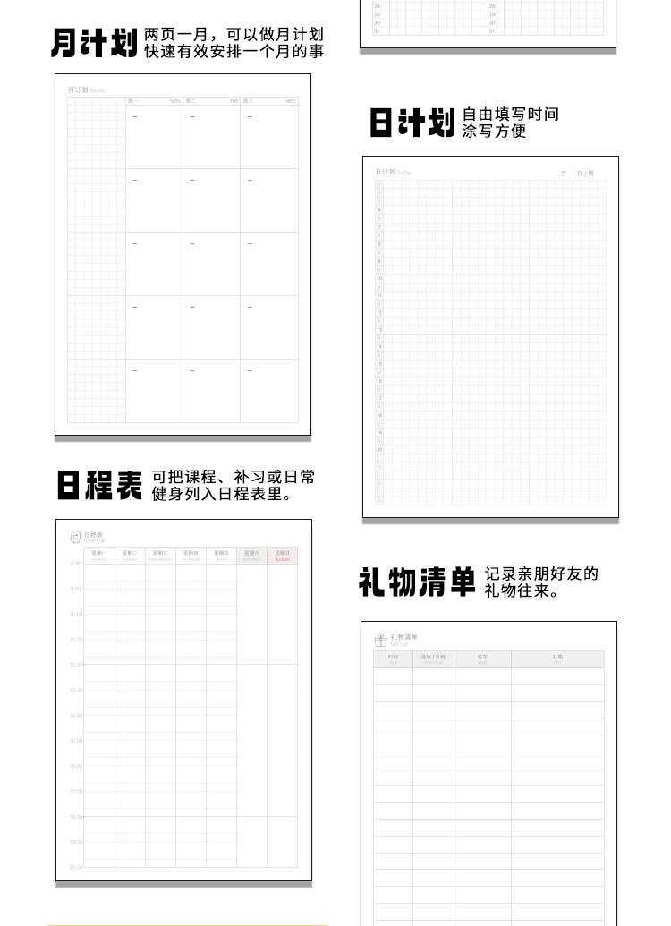 【广博】KINBOR熊猫方格本空白/方格手帐本女生可爱笔记本子高颜值