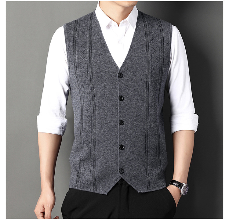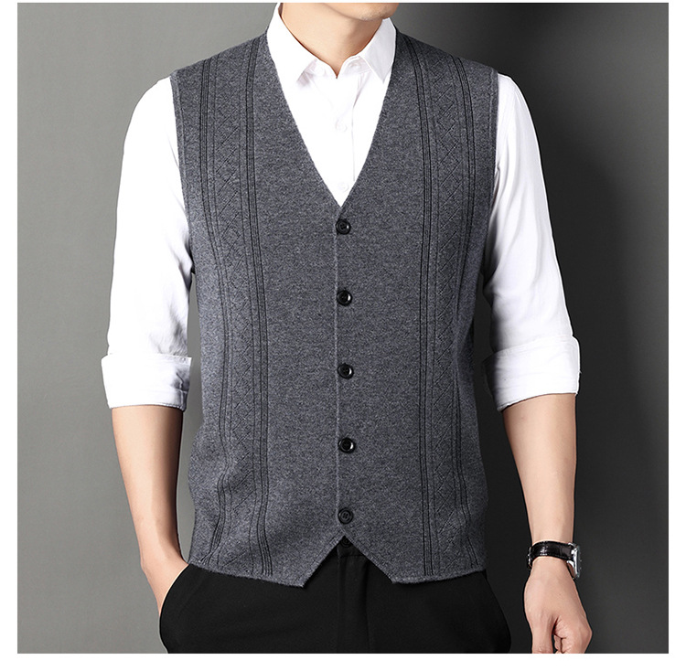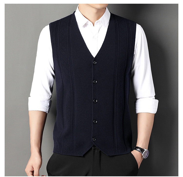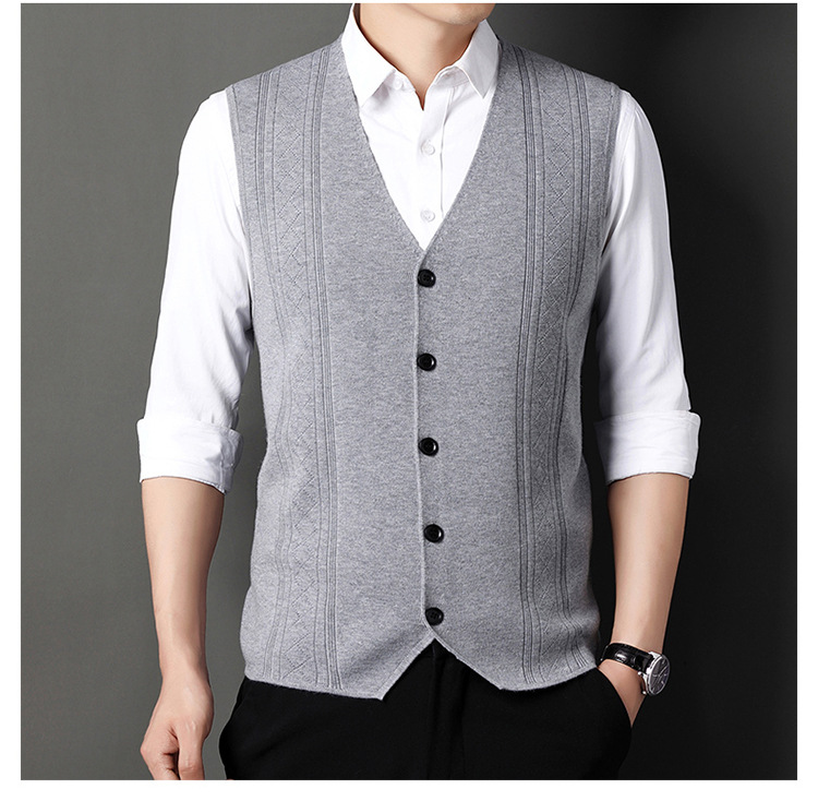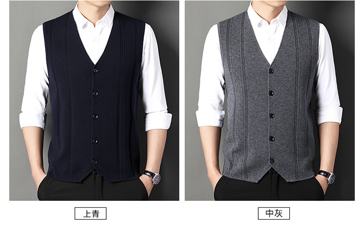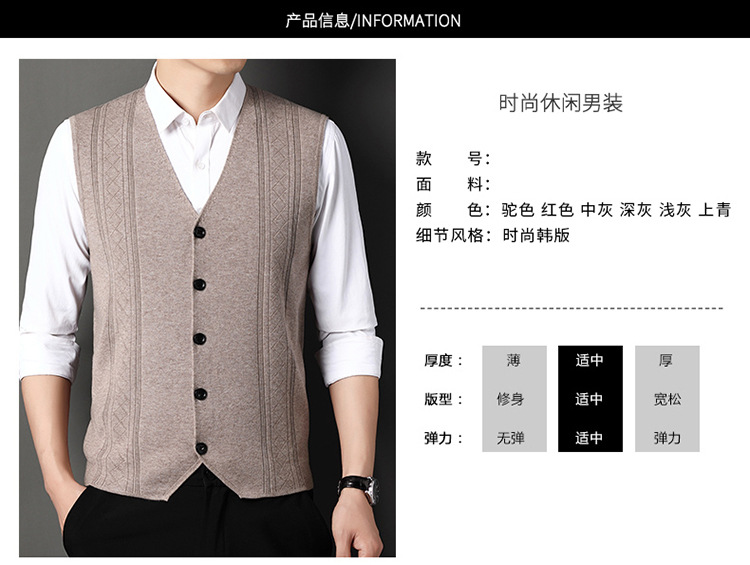 雀说V领背心带扣男士新款时尚针织毛衫马甲商务内搭上衣AL2119