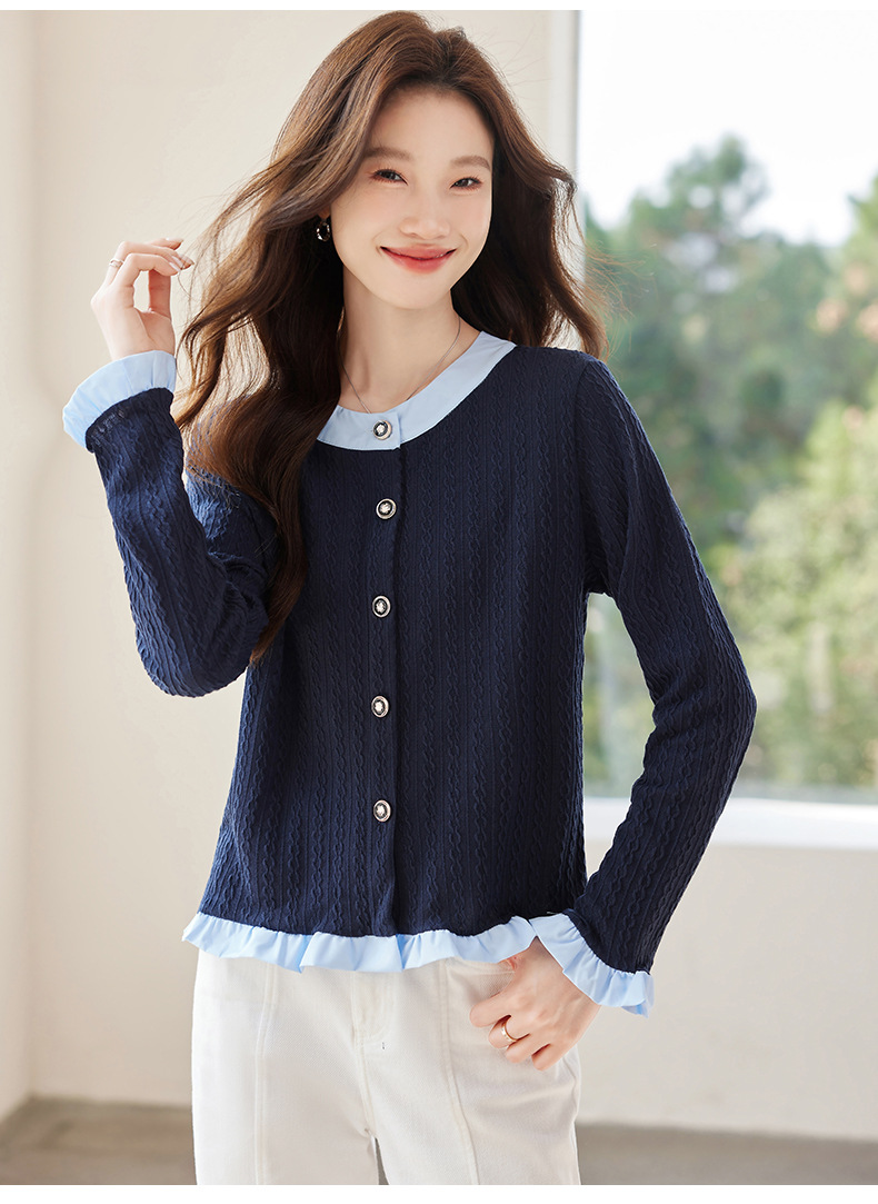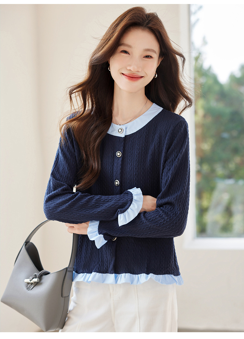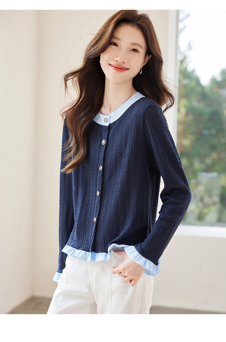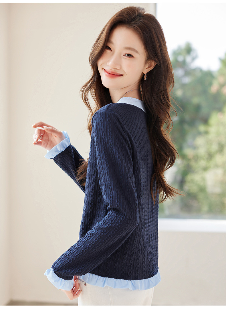 衬衫拼接假两件针织开衫外套,宽松短款休闲上衣外搭CC-XFY2526