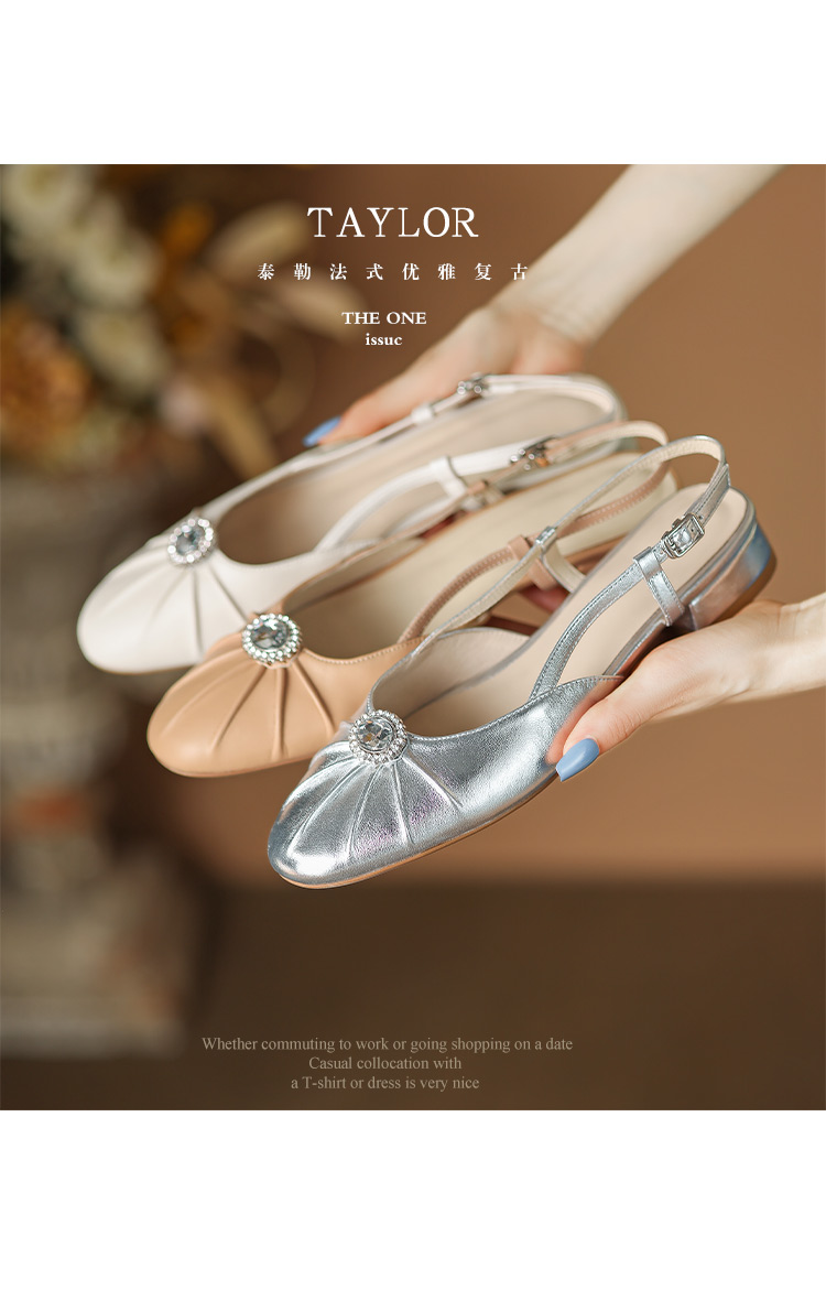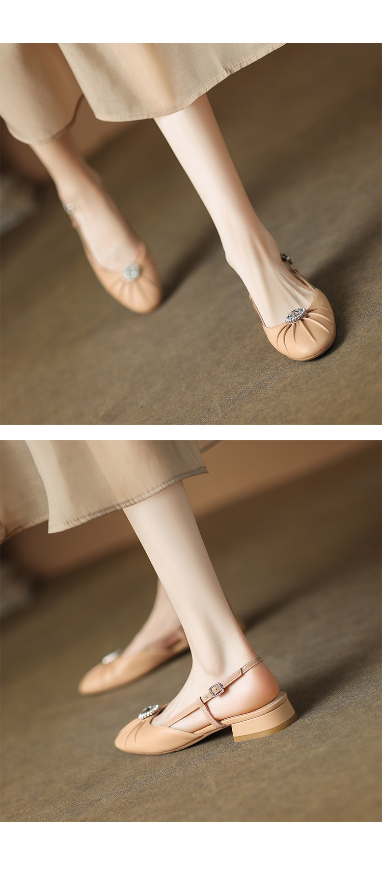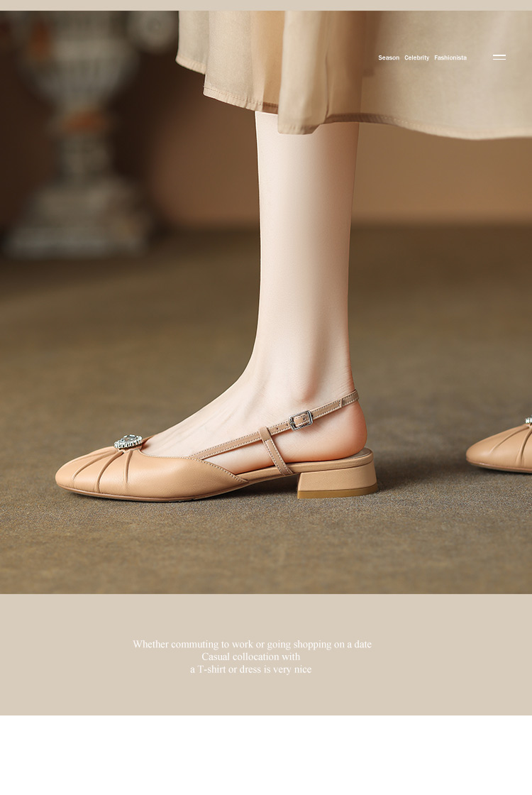 复古轻奢,轻便简约羊皮包头低跟凉鞋QQJ-JZ-788F