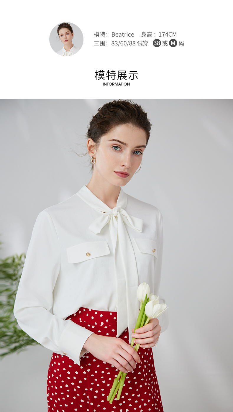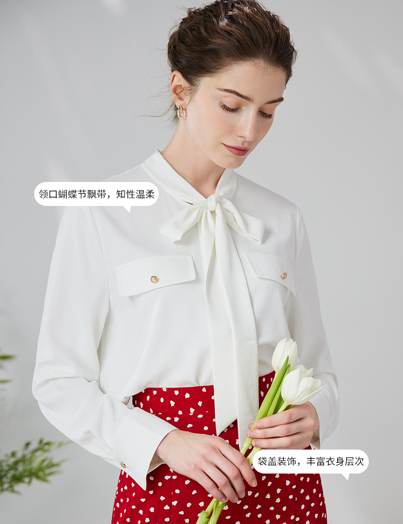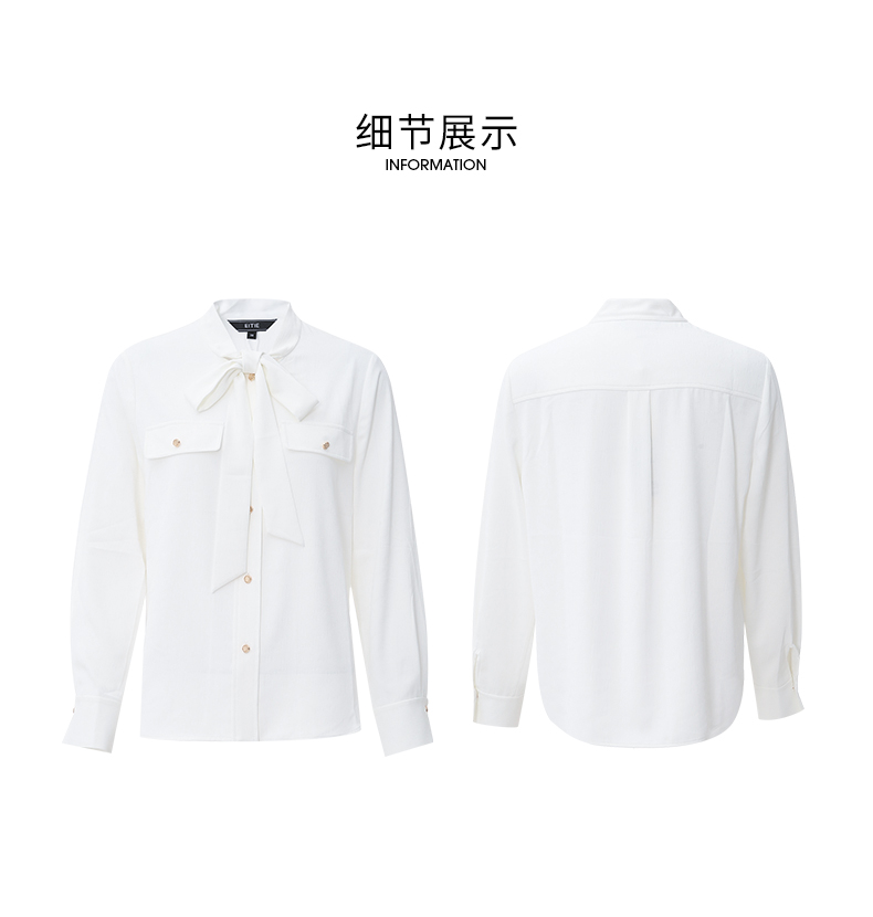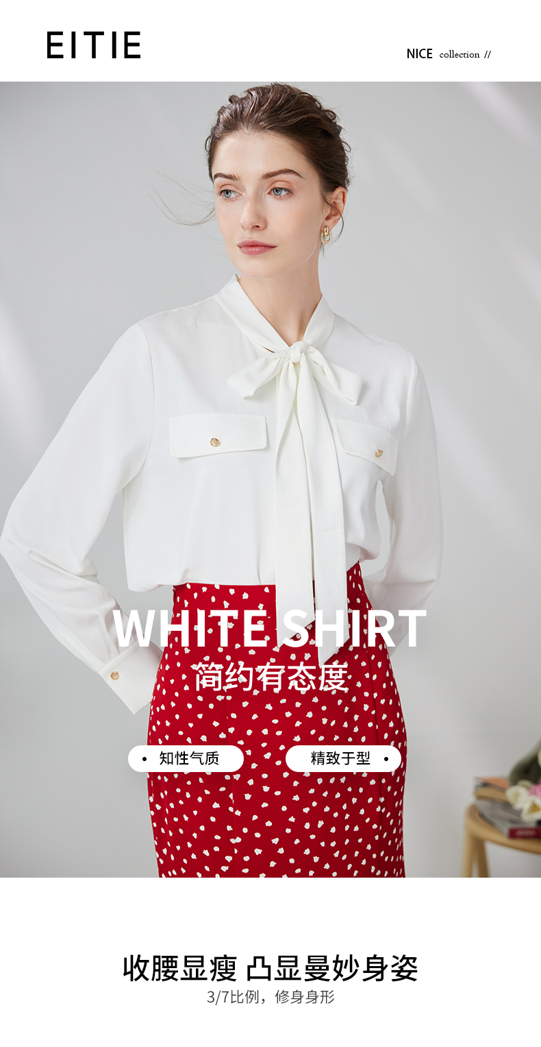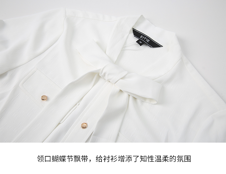 EITIE爱特爱复古气质通勤直筒显瘦飘带系带白色衬衫上衣24春新款A2409301