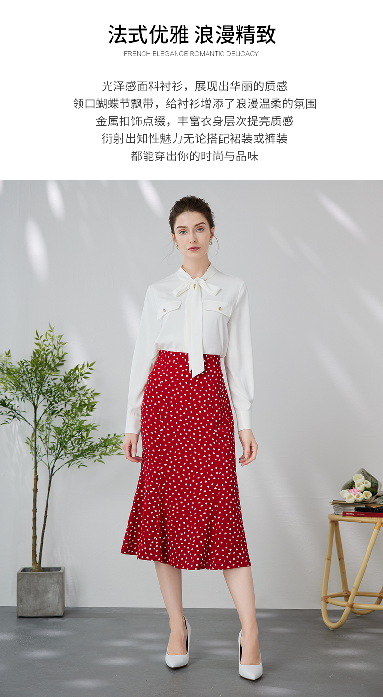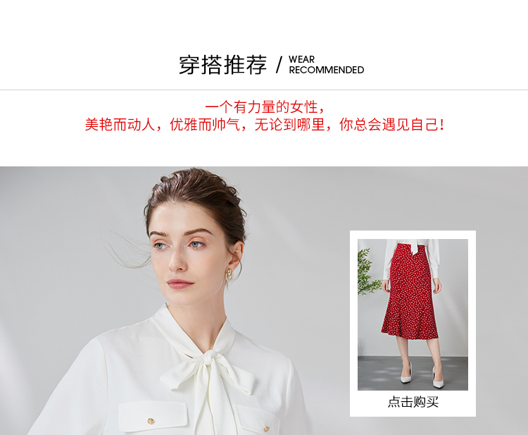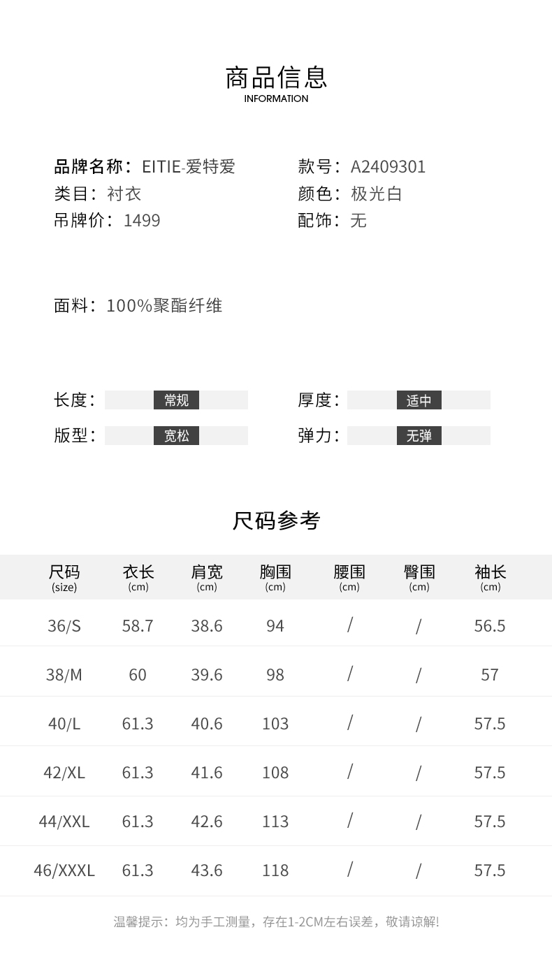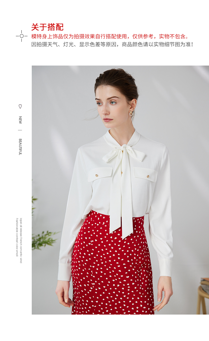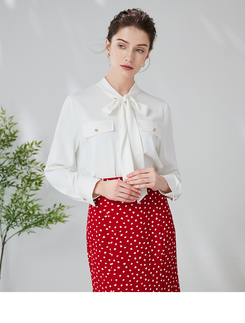 EITIE爱特爱复古气质通勤直筒显瘦飘带系带白色衬衫上衣24春新款A2409301