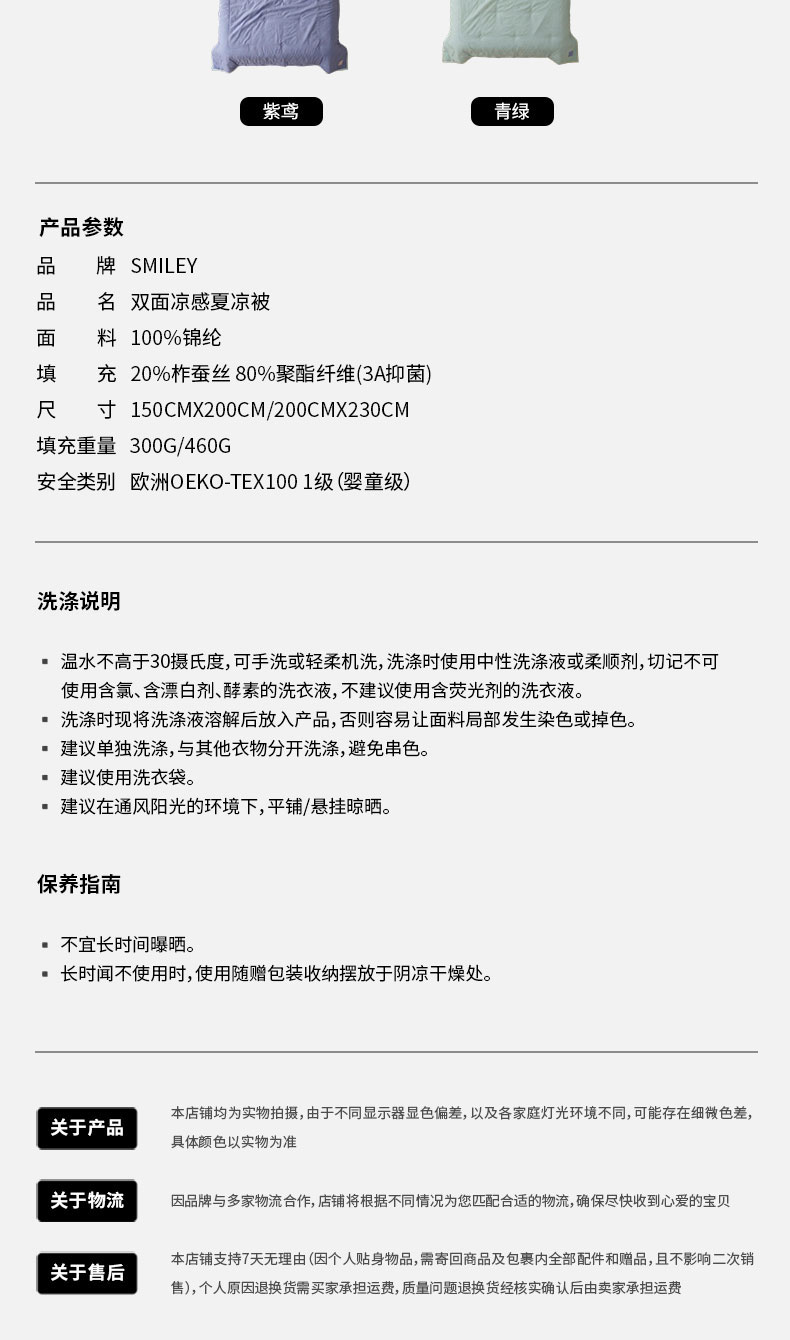 SMILEY 双面蚕丝凉冷感被含蚕丝夏日空调被凉爽【本商品不支持用券】