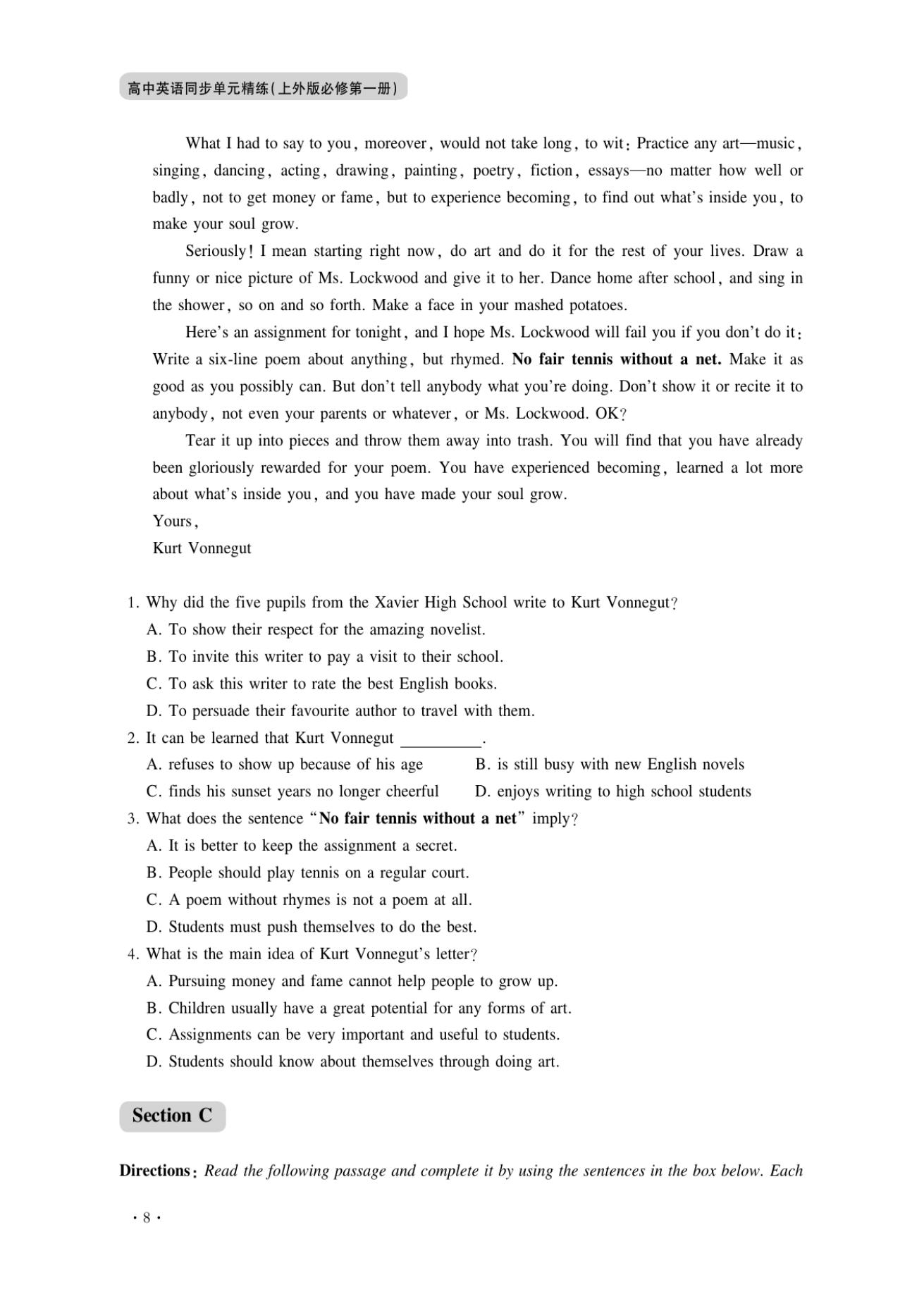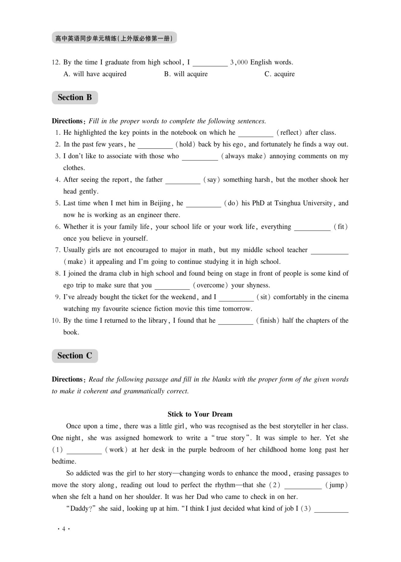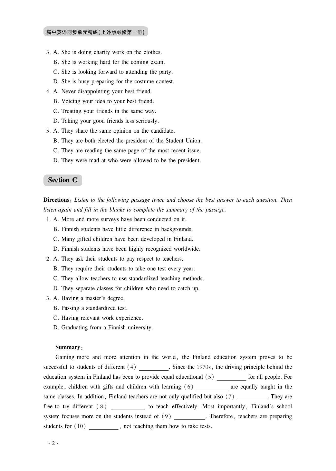 【上外版】高中英语同步单元精练(必修第一册)上外版 9787313252050