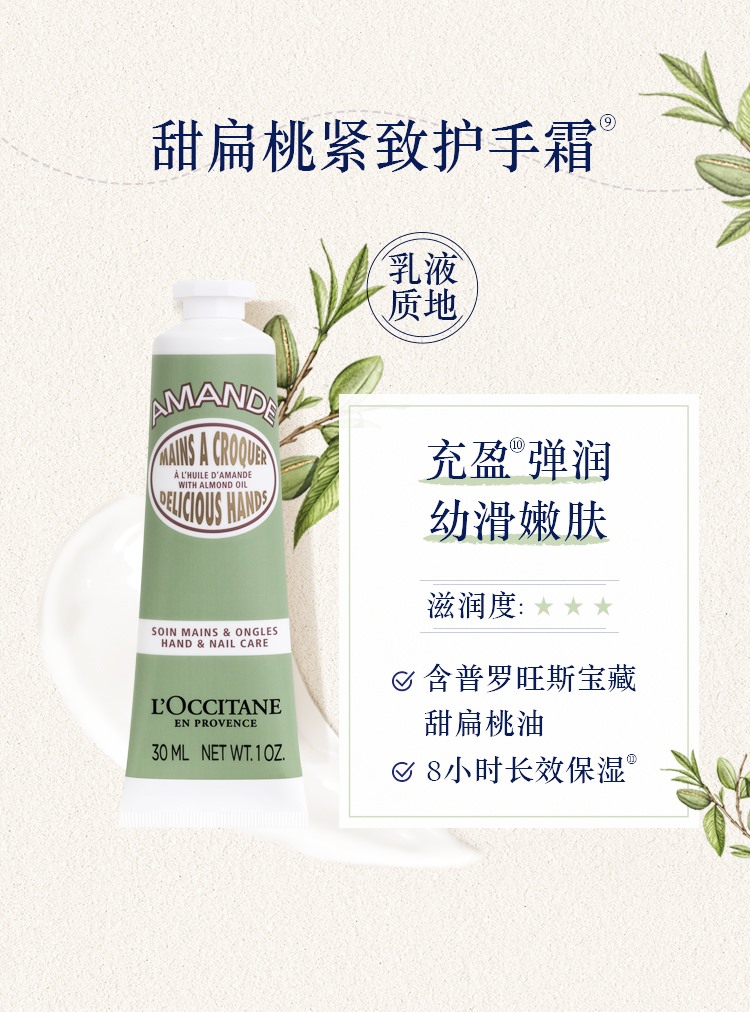 欧舒丹甜扁桃美肤乳200ml+沐浴油250ml+护手霜75ml