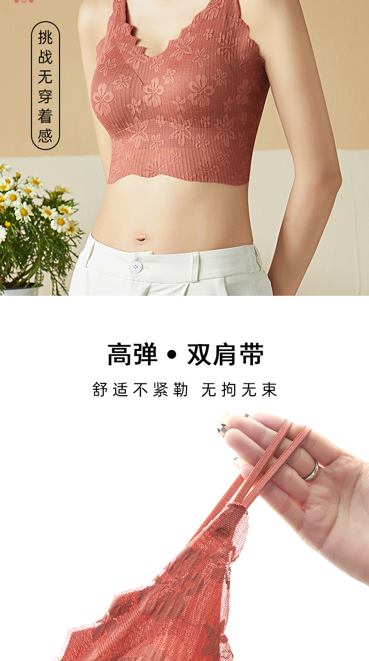 辣妹吊带蕾丝美背内衣,抹胸内搭长款打底小背心免穿文胸 FXZ1762