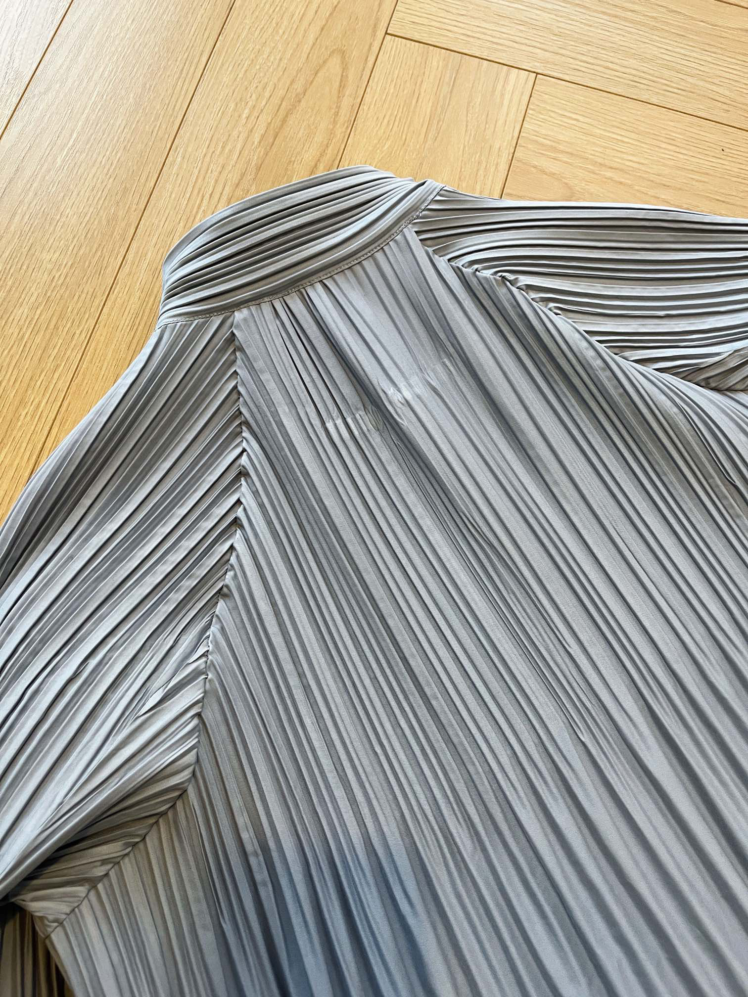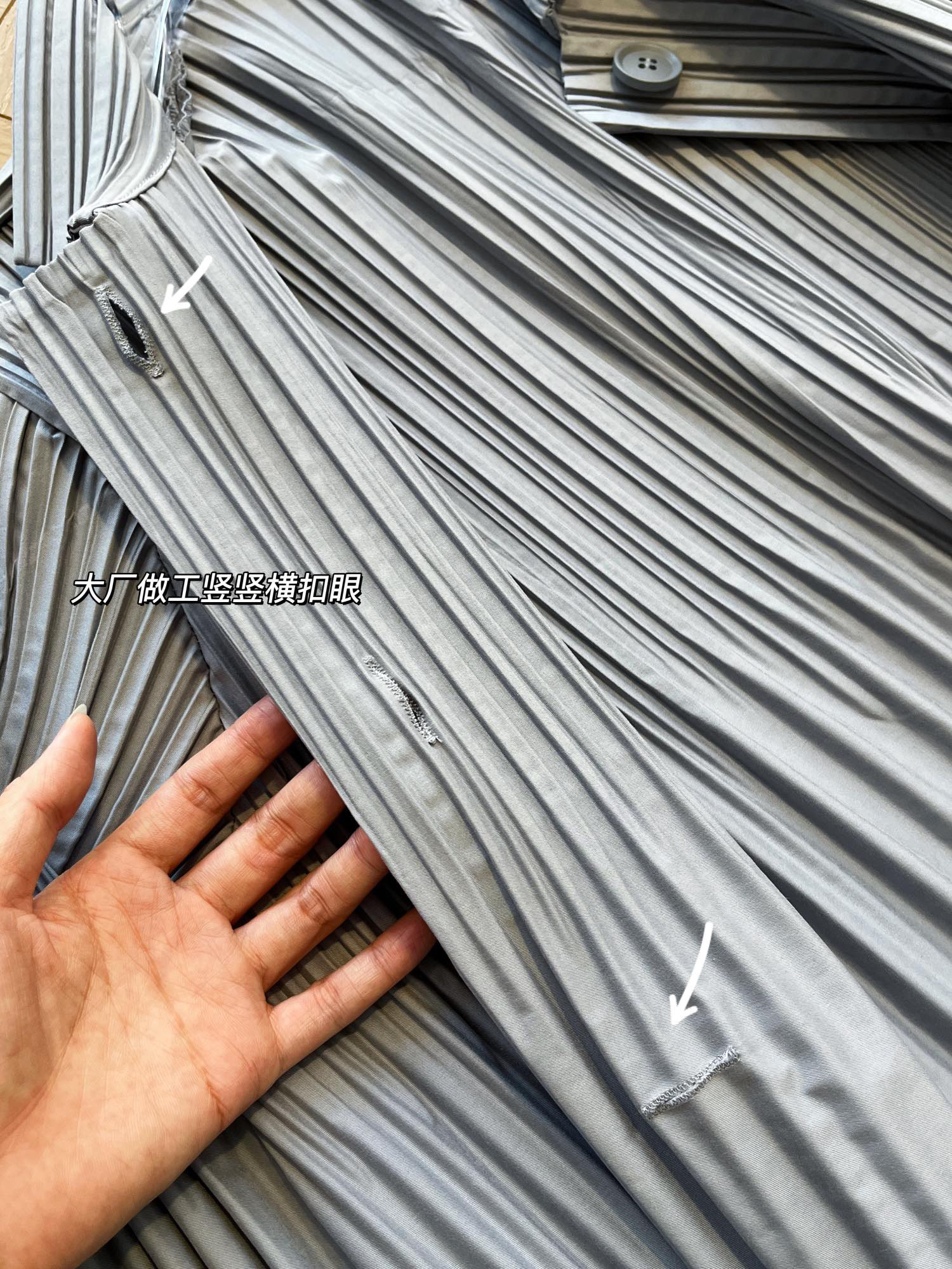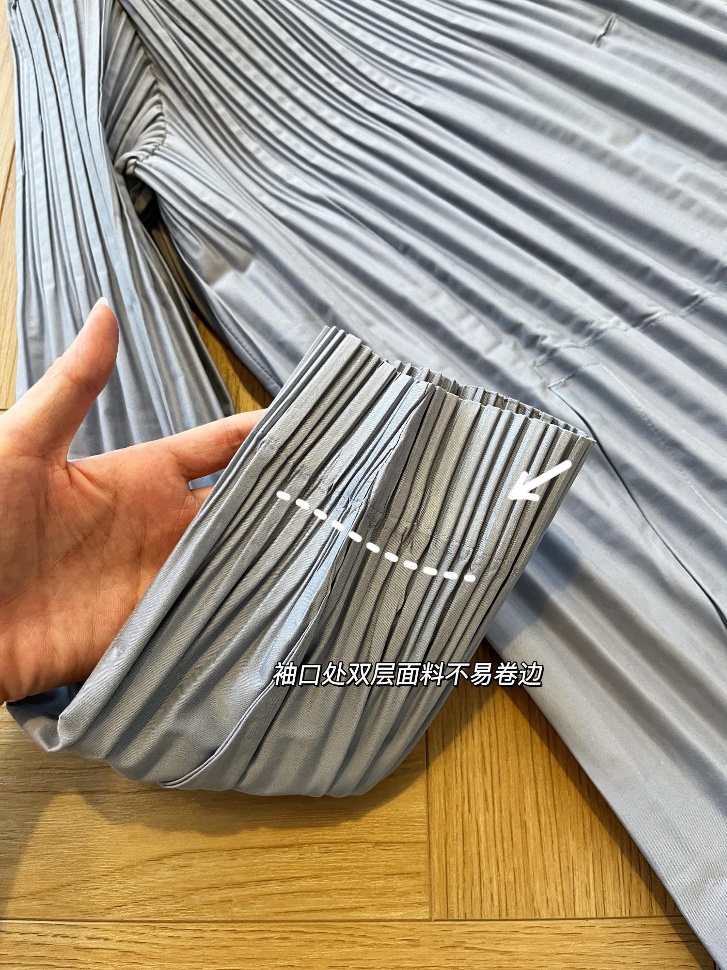 这个款是先做纸膜,再进行高温成衣压褶!