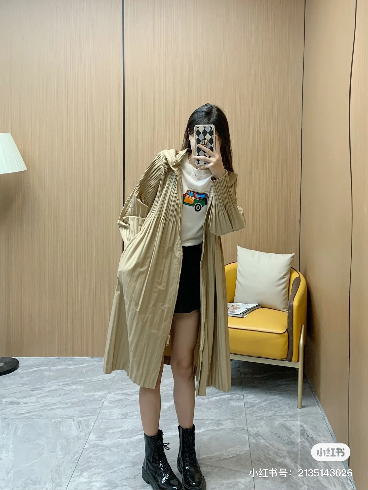 100%聚酯纤维是日本进口风衣面料,双面定制不规则压褶设计,全进口的面料纱线品质跟市面上绝对的是不同!都是用日本原厂进口面料品质超强,是他家的最新系列!触感上绵密紧实,挺括!本身就兼具很好的防风和透气效果!大大增加了整体的质感!