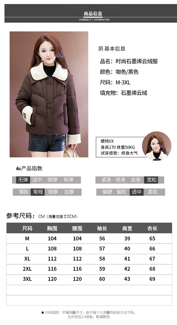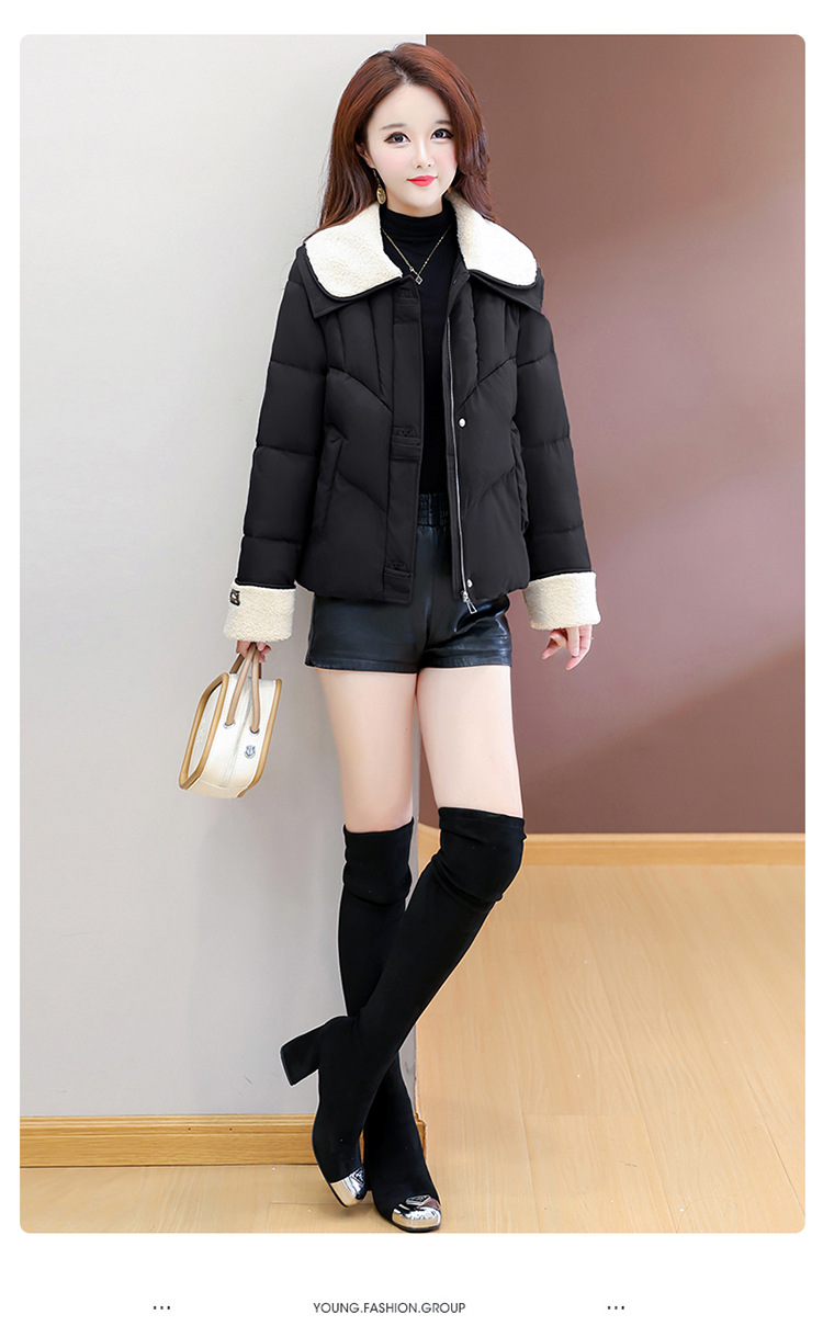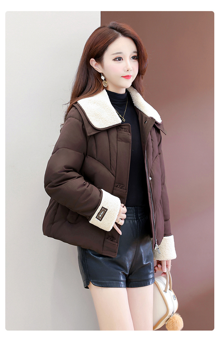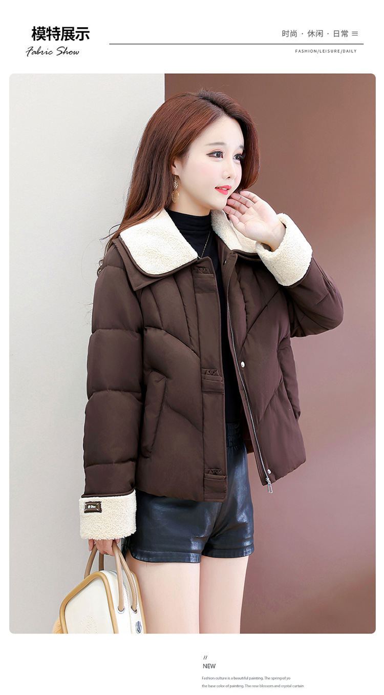 QYM  B9802-Y小个子翻领毛领棉衣宽松休闲加厚加绒云绒服宽松休闲棉袄 商品图2