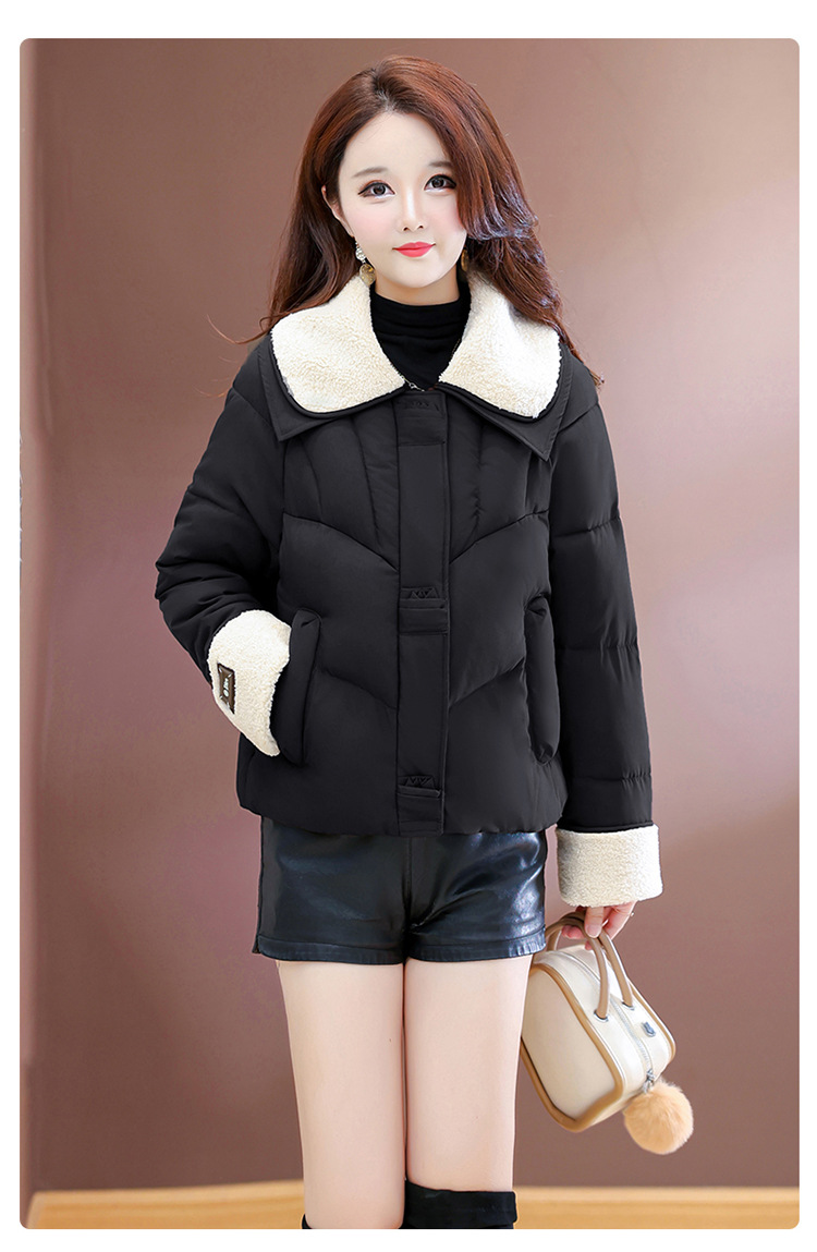 QYM  B9802-Y小个子翻领毛领棉衣宽松休闲加厚加绒云绒服宽松休闲棉袄 商品图0