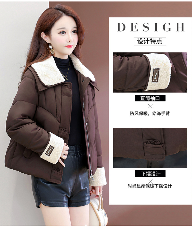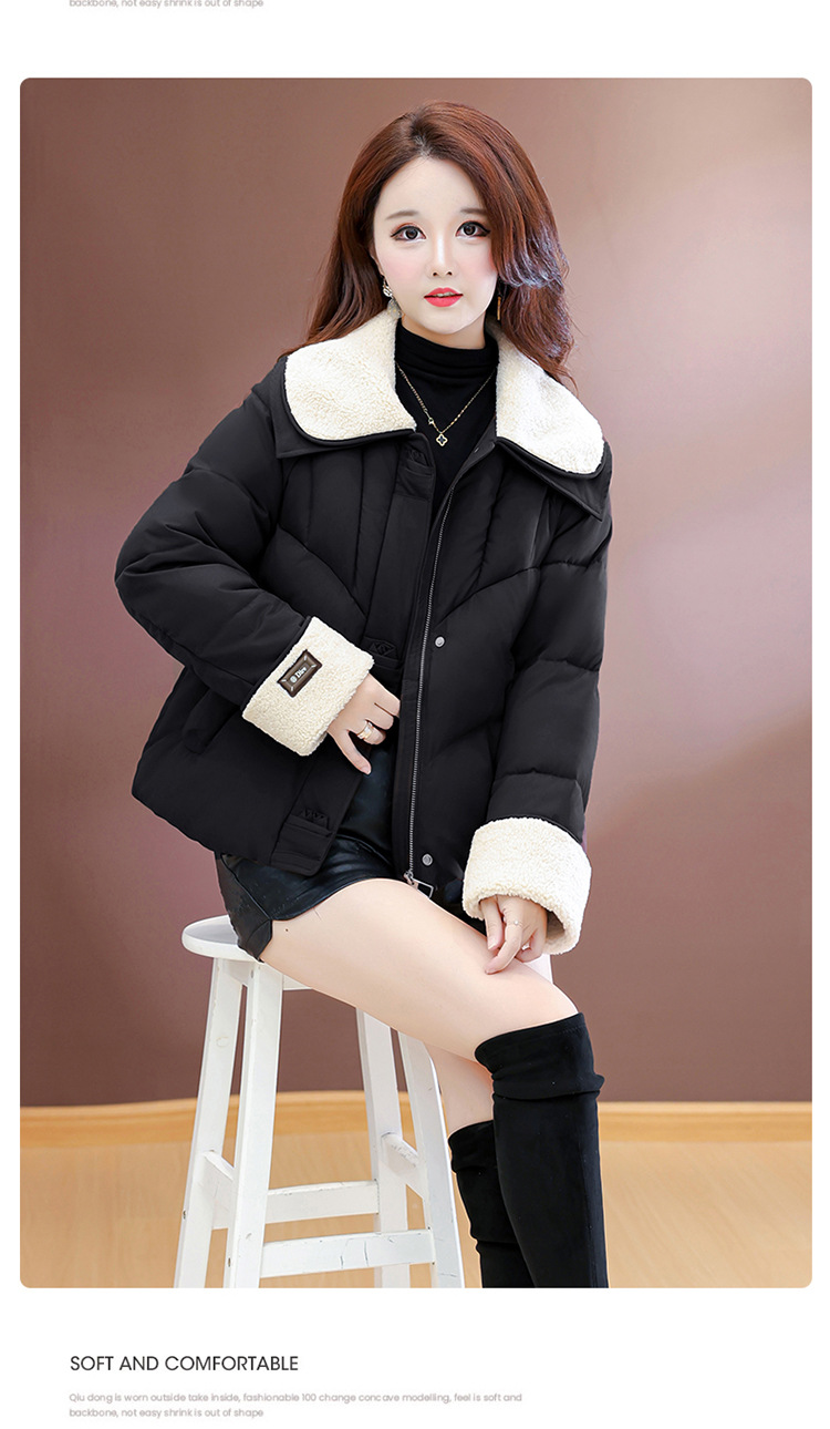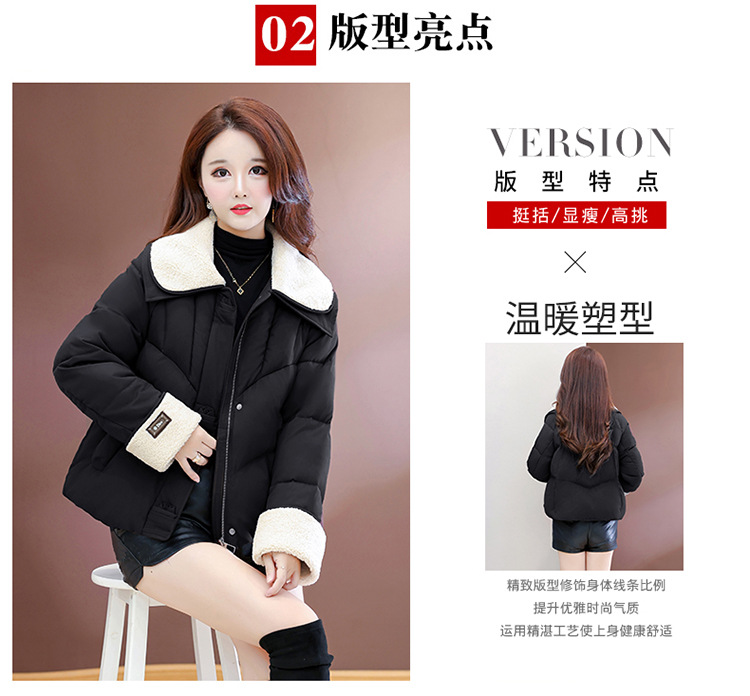 QYM  B9802-Y小个子翻领毛领棉衣宽松休闲加厚加绒云绒服宽松休闲棉袄 商品图3