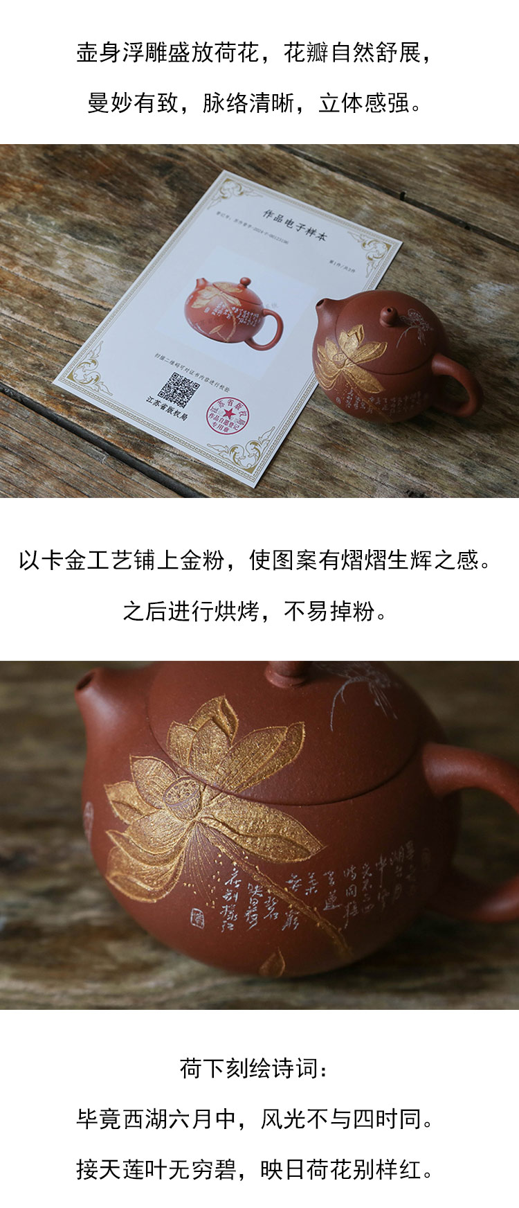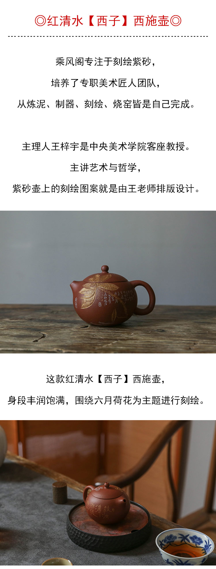 茶香记 乘风阁 红清水【西子】西施壶 茶壶 浮雕荷花 诗情画意