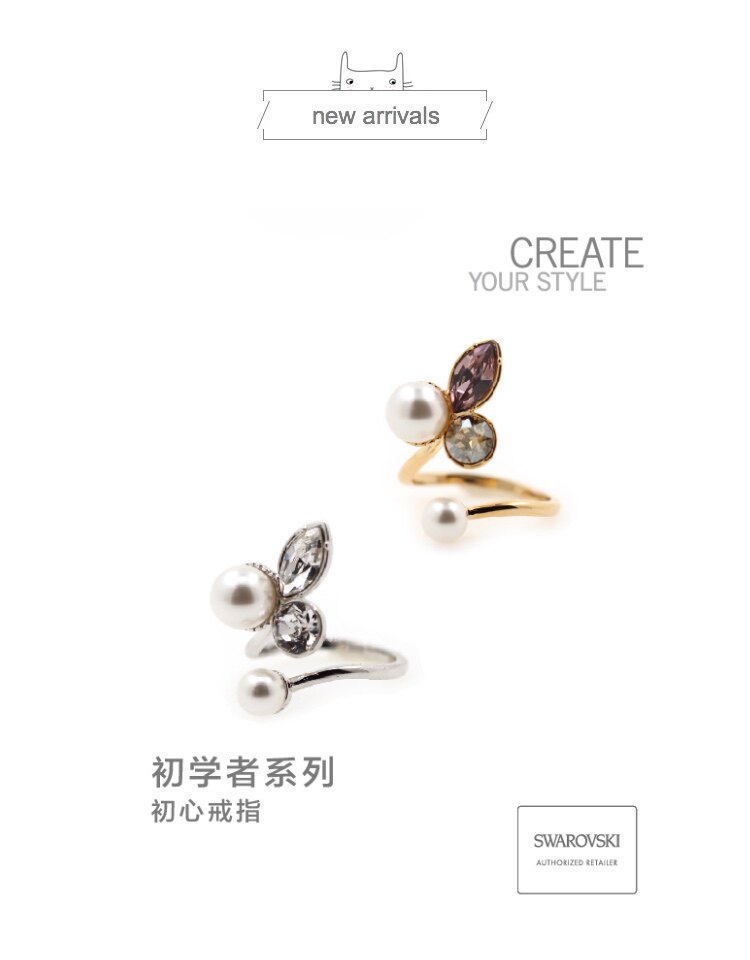 Somate初心者系列 水晶珍珠开口戒指 施华洛世奇元素 DIY课件包