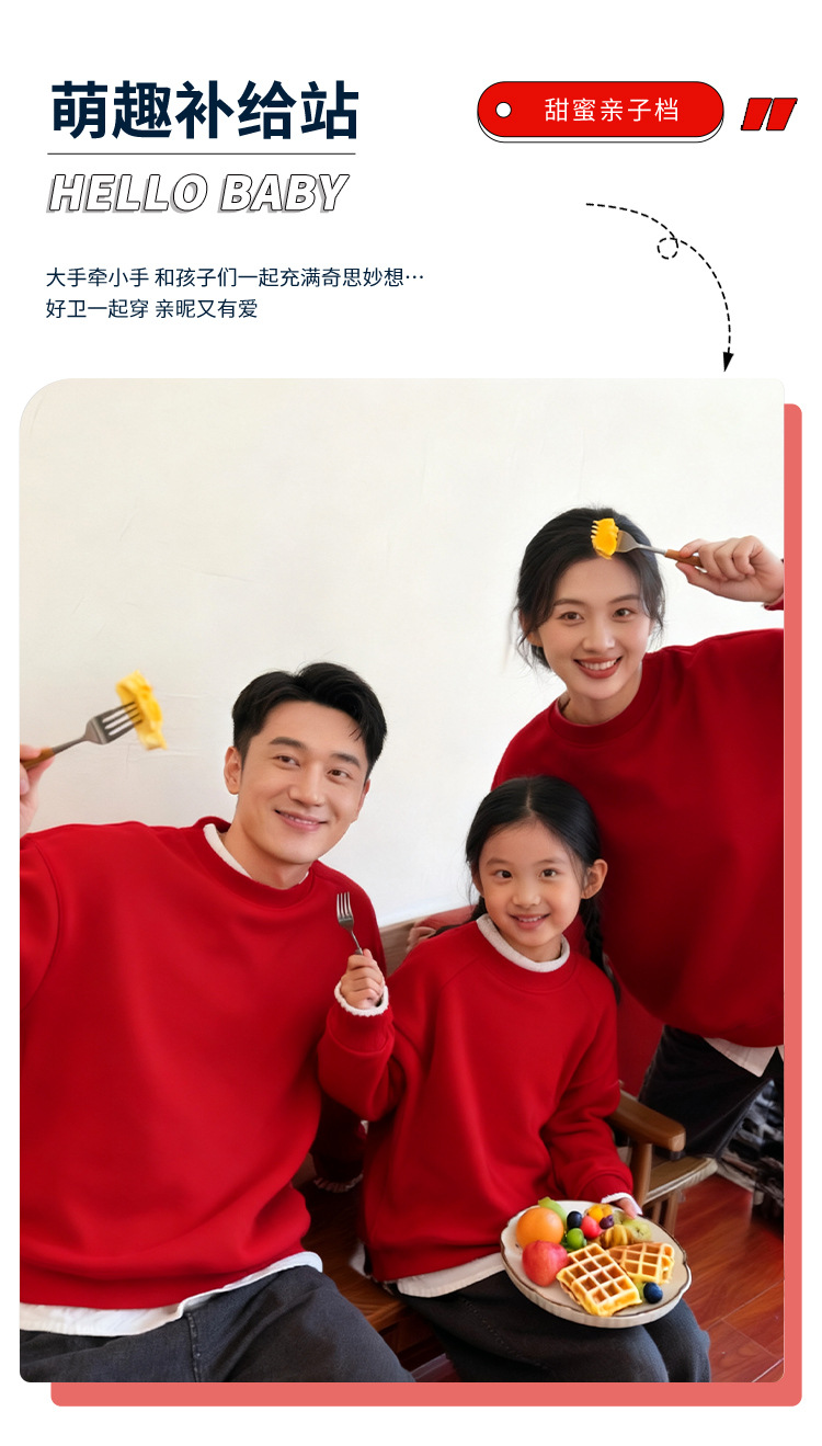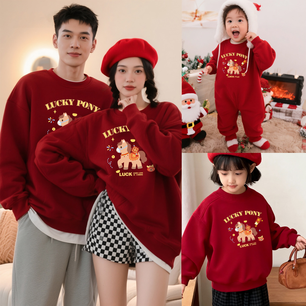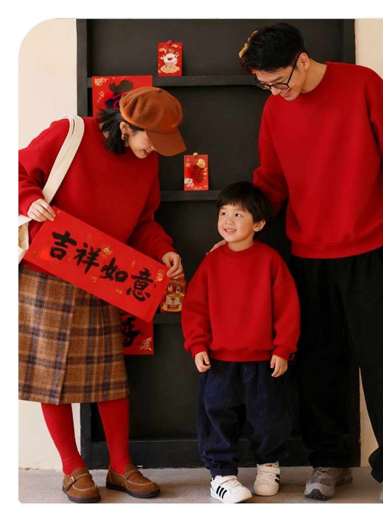 【蓄热保暖舒适柔软❗️满满新年氛围感】2026马年新年春节拜年服亲子加绒红色卫衣2026马年元旦喜庆过年上衣母女装本命年服。jb