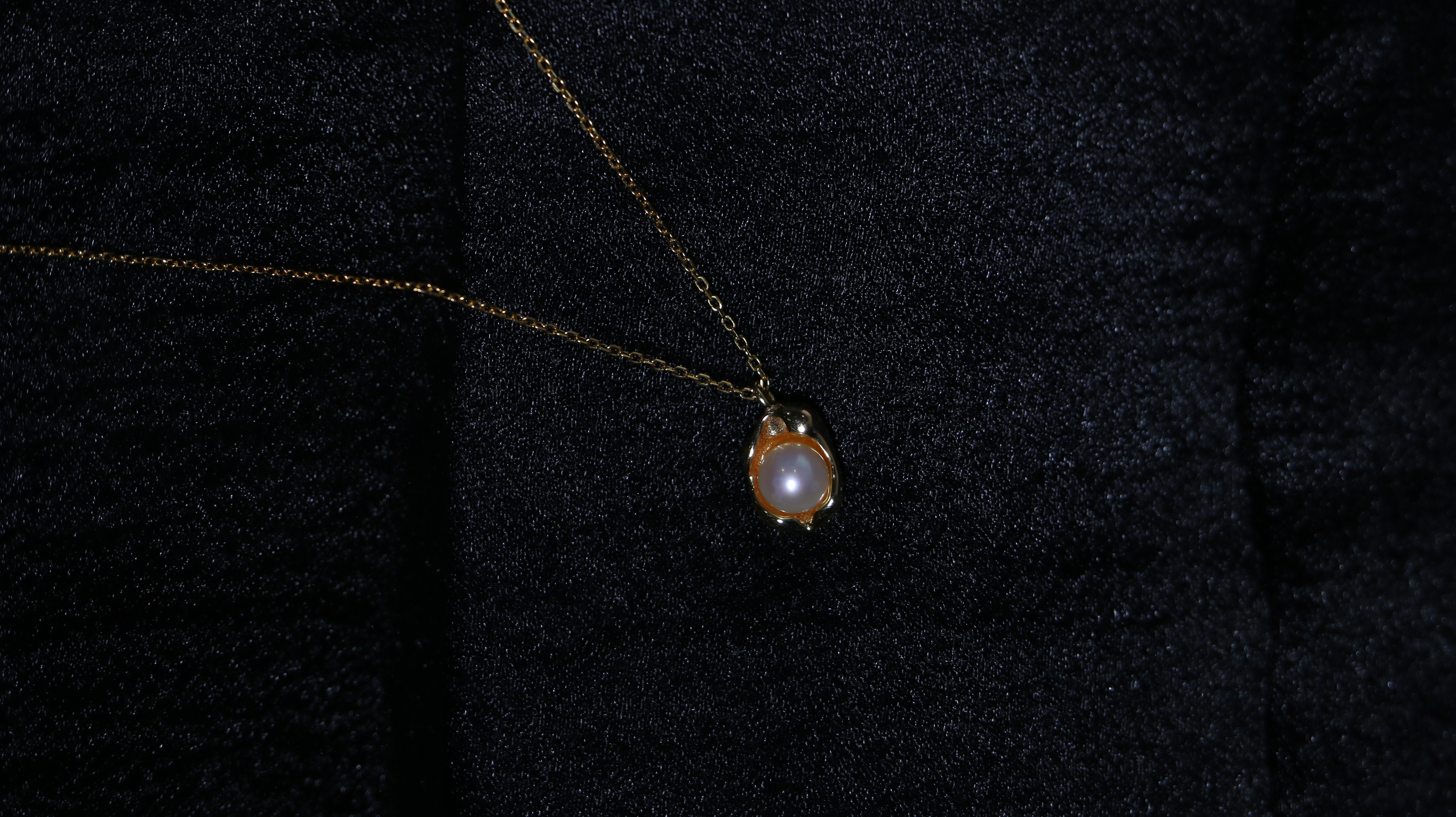 甄珠贝 淡水爱心小黄冠和荷包蛋 珍珠吊坠 正圆无暇 925银配件