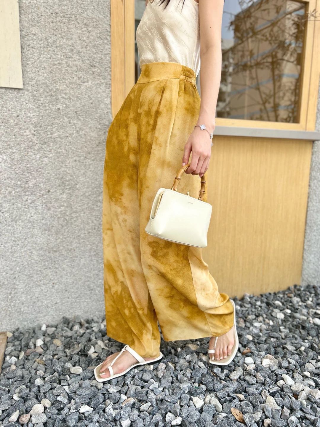 桑蚕丝的光泽就像珍珠般柔和,让整条裤子看起来高贵又典雅。