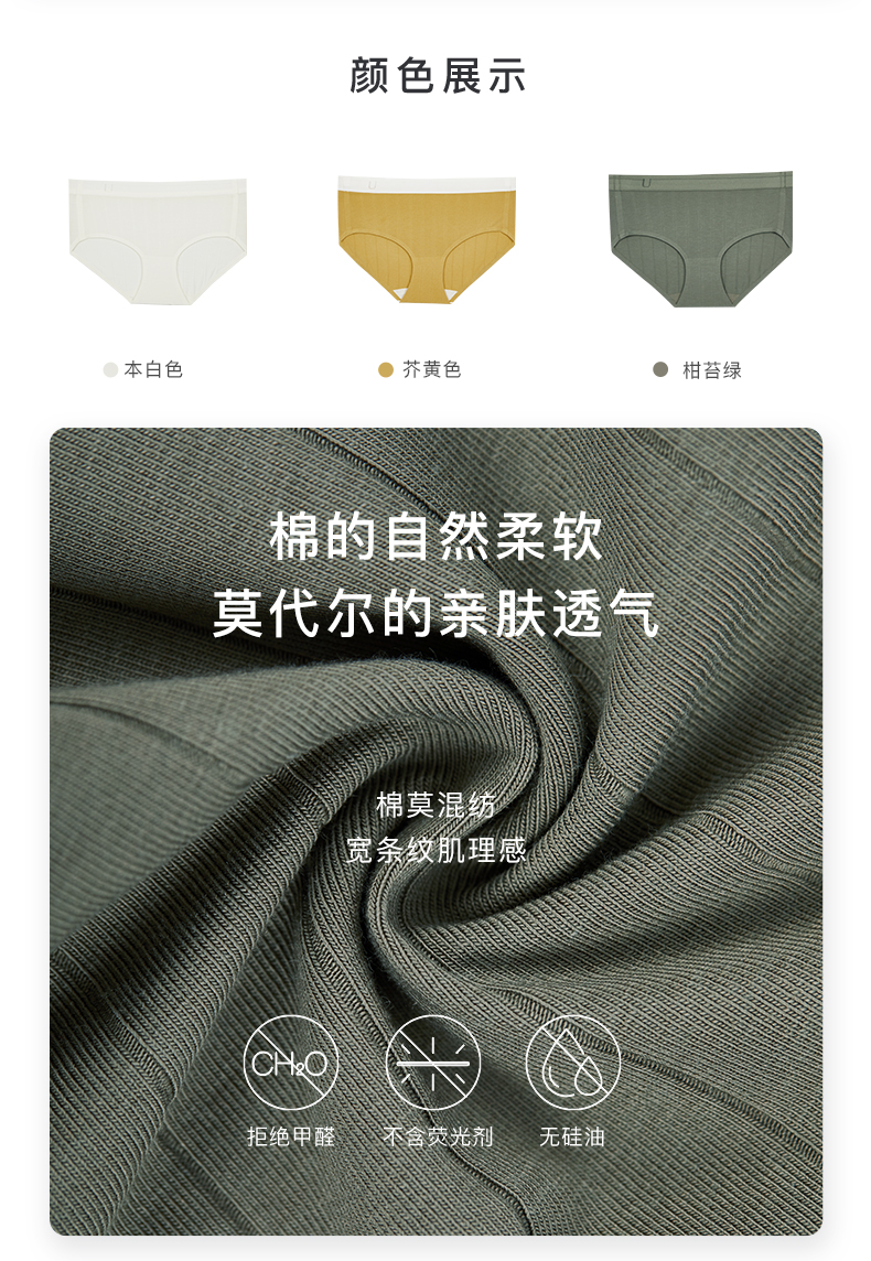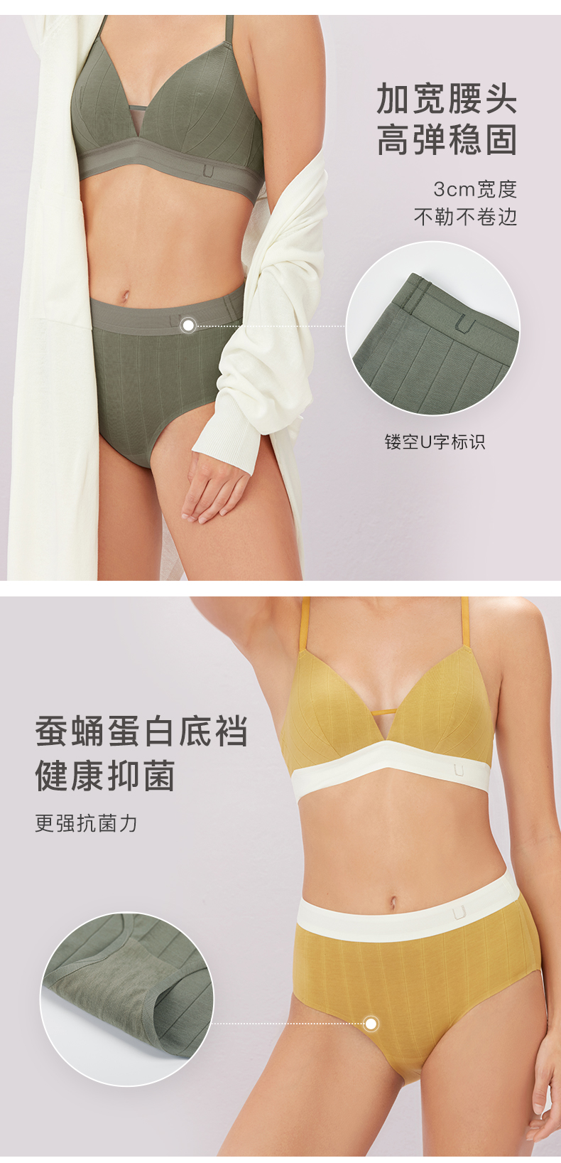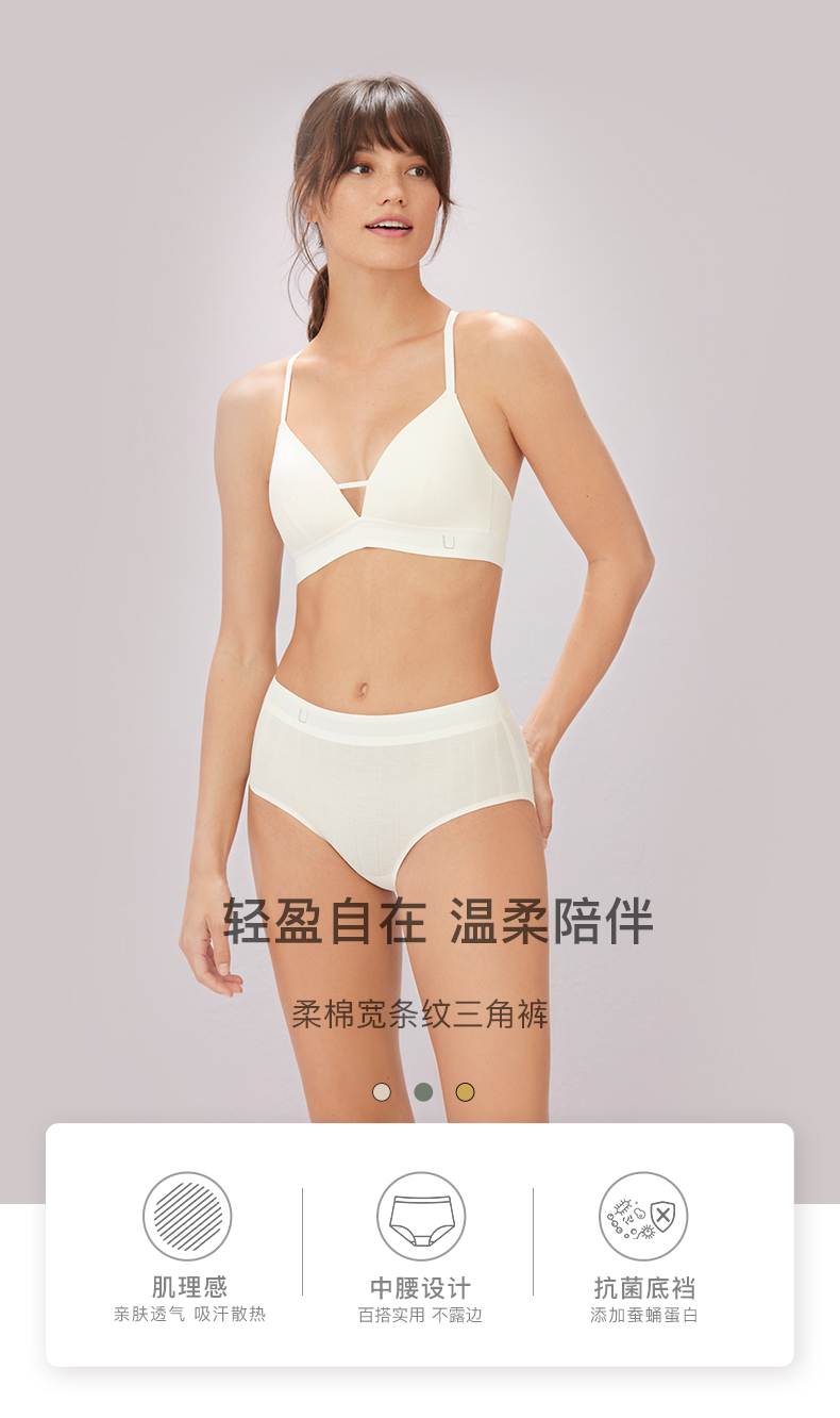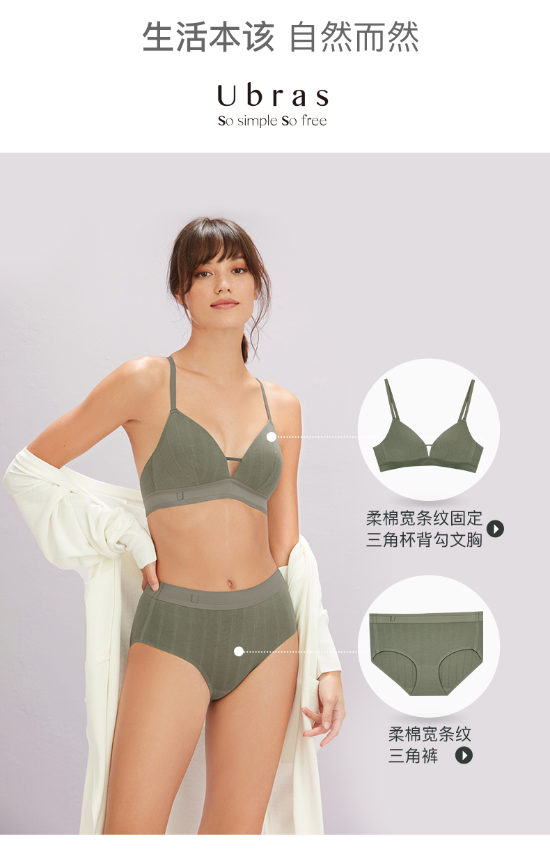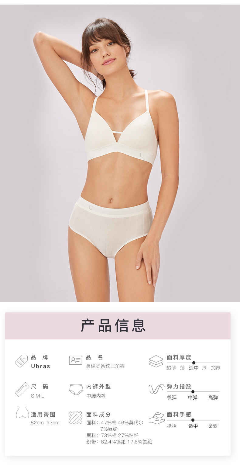 Ubras柔棉宽条纹三角裤内裤 女抗菌底裆舒适透气女士内裤
