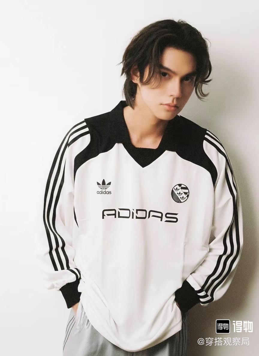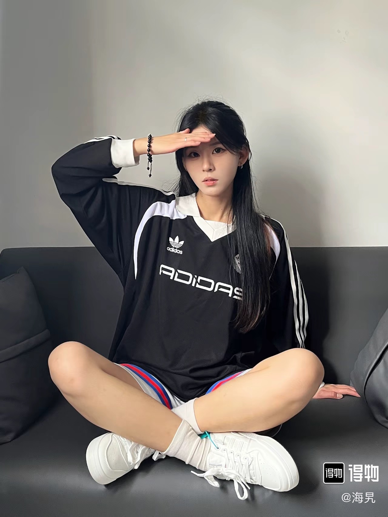 就是一个足球长袖T,拼接的设计也是很多人穿来搞搭配