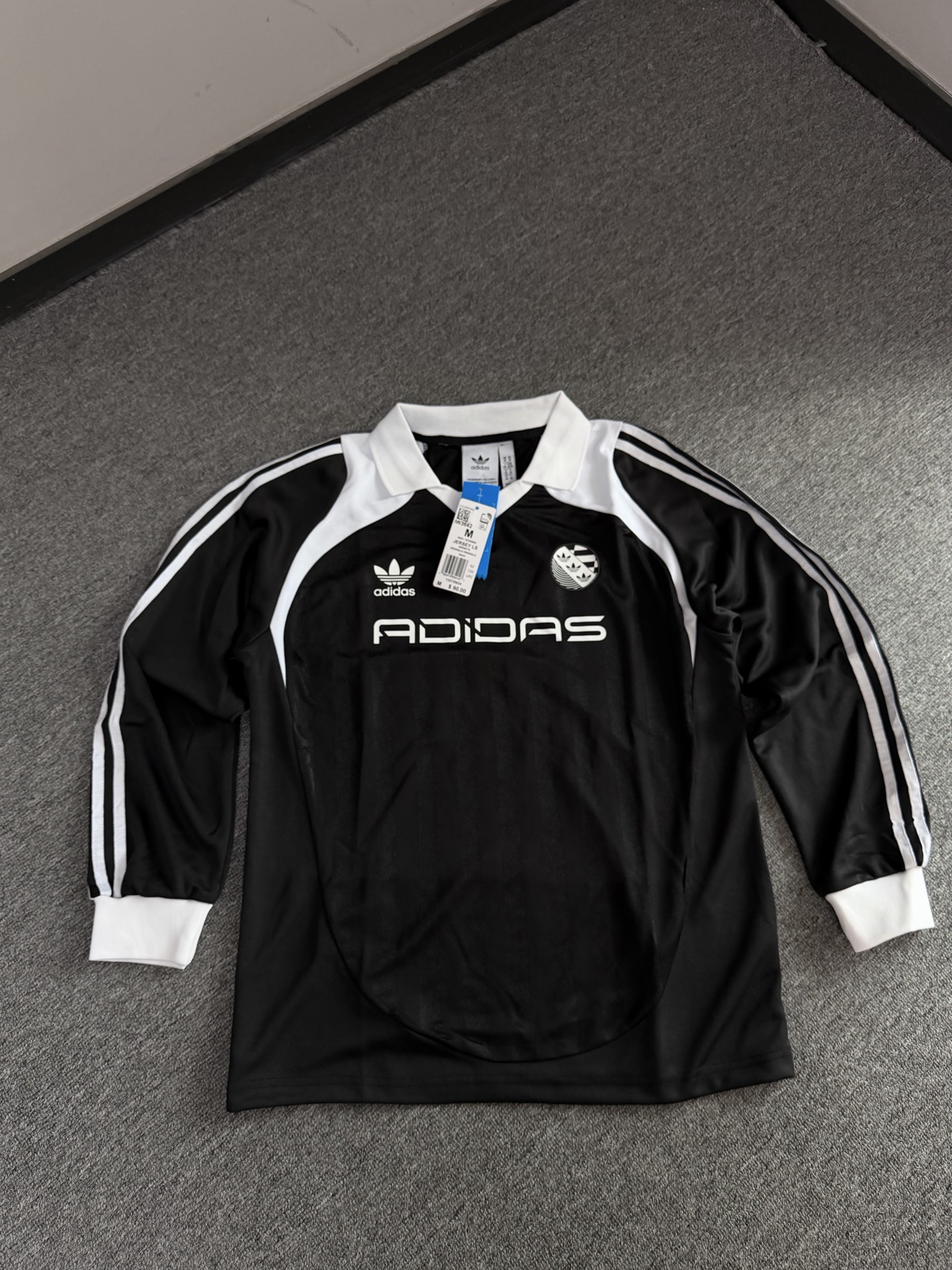 前天上了两个三条杠的外套,没想到大家都挺感兴趣的,今天就把这个长袖运动衫也上架卖卖