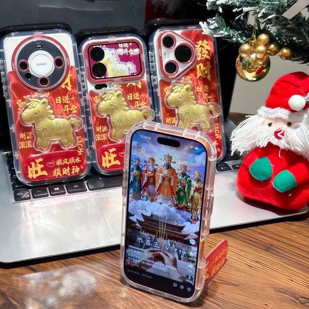 【可爱精致小马❗️满满新年氛围感】适用苹果iphone华为OPPO小米VIVO红米新年发财小马贴件手机壳保护套。jc