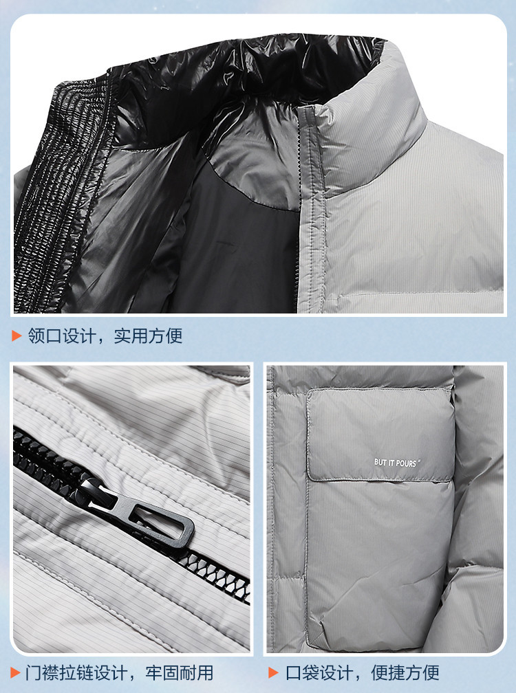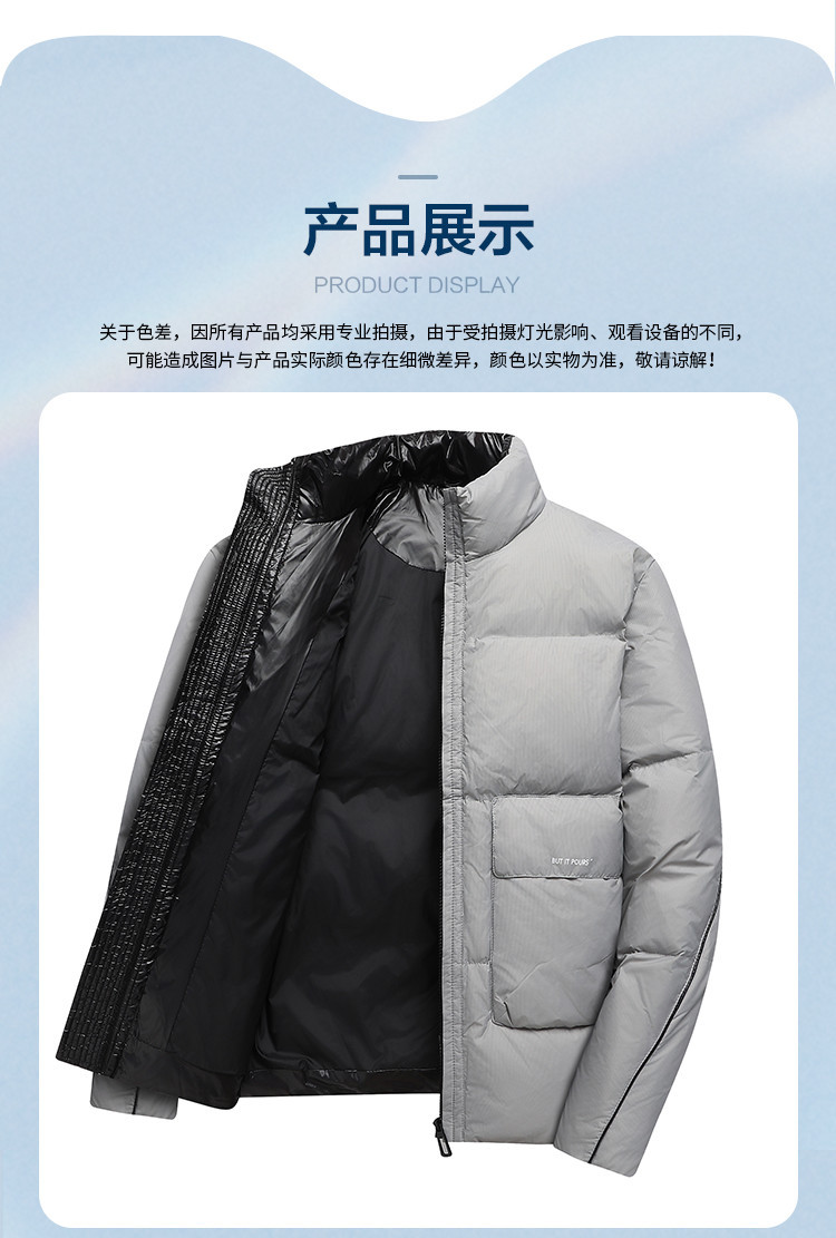 【90白鸭绒】罗蒙冬季款男士立领羽绒服保暖灰色时尚百搭潮男潮搭休闲羽绒外套