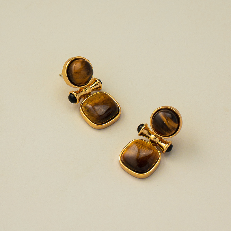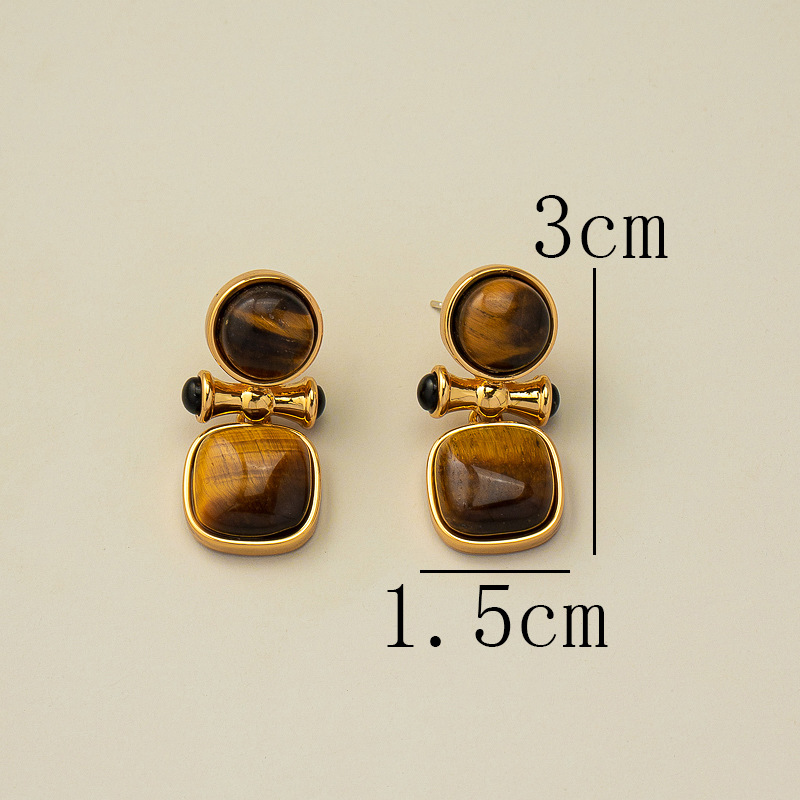 丁摩 S925银针中古镶天然虎眼石耳坠法式复古轻奢高级感耳环5ZF-A058